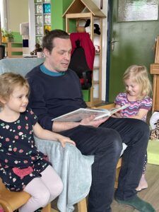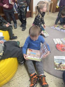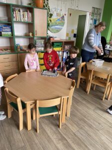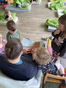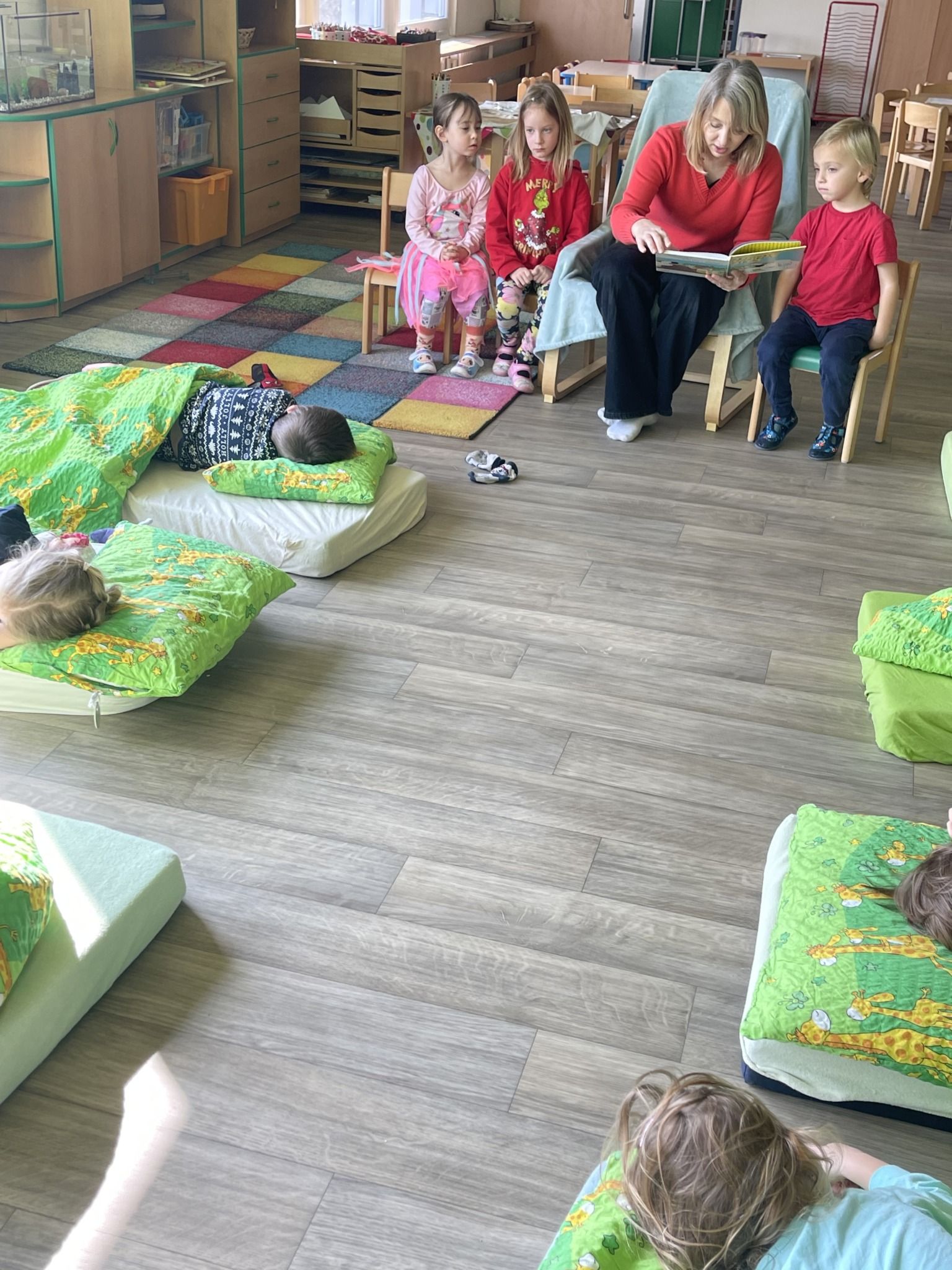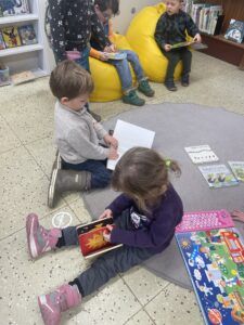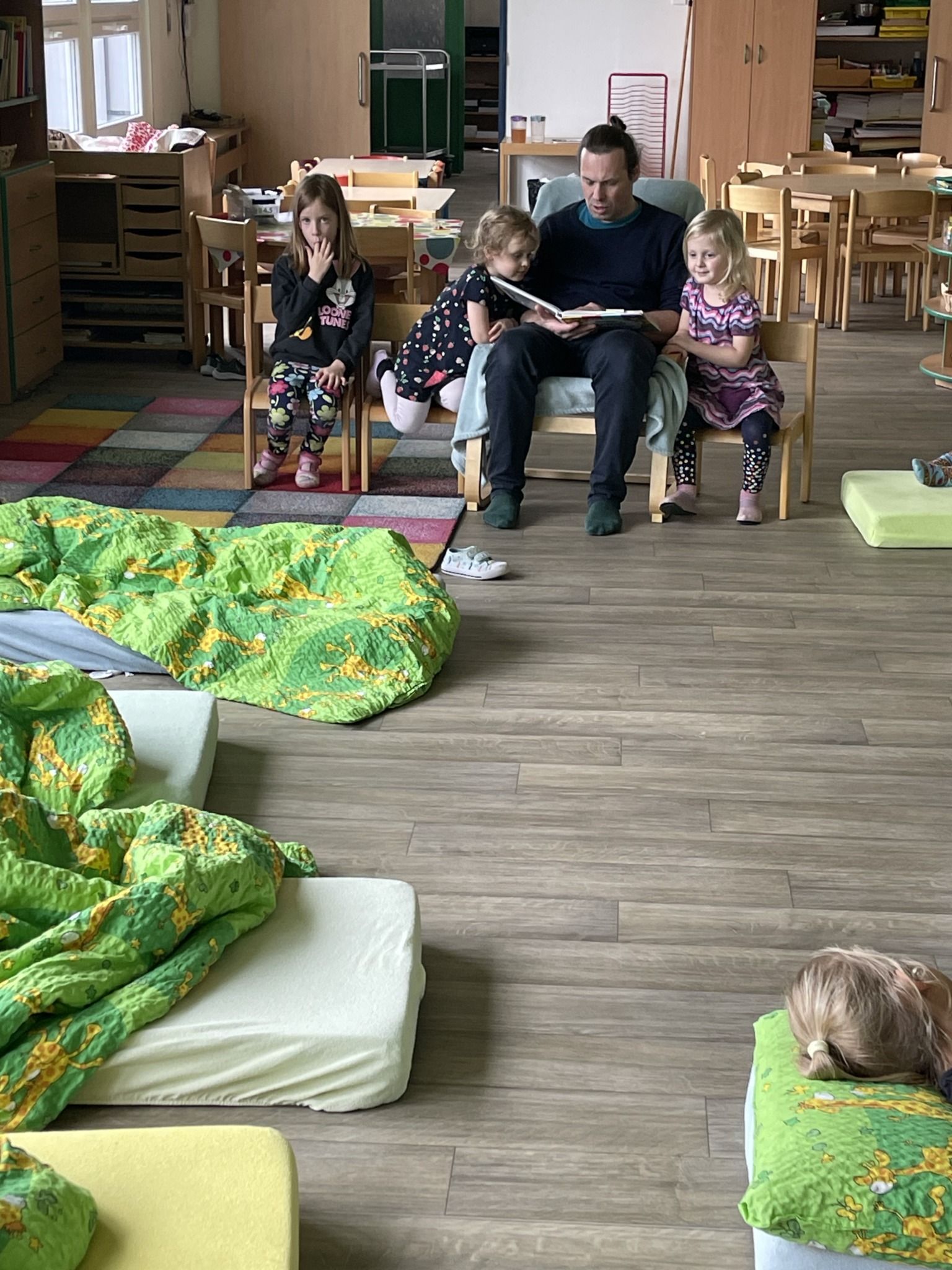 Celý týden byl věnován knížkám, které máme všichni moc rády. Navštívili jsme společně knihovnu ve Vysočanech, kde jsme měli možnost si prohlédnout spoustu jiných knížek, které ve školce ani doma nemám a, že bylo z čeho vybírat. Vyrobili jsme si společně barevnou knížku a každý navrhl knížku, kterou by rád napsal. Vyzkoušeli jsme si výrobu papíru a pověděli si o tom jak vzniklo písmo. Také jsme přivítali na čtení před odpočinkem první rodiče.