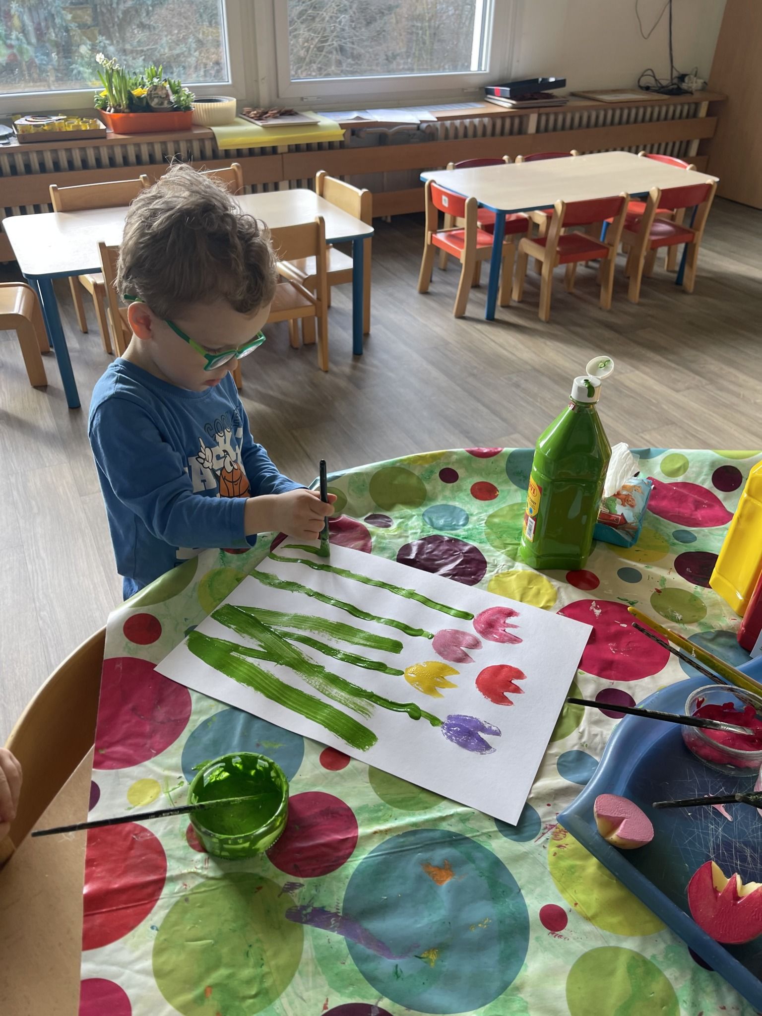 Týden věnovaný přicházejícímu jaru. Pozorování přírody, která se začala probouzet. Jarní květiny se objevily i v naší třídě, kde to hýřilo barvami a vůněmi. Naše tulipány, které jsou tištěné obyčejnými bramborami nám rozkvetly v šatně