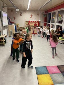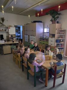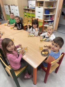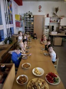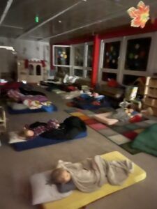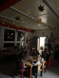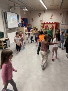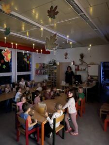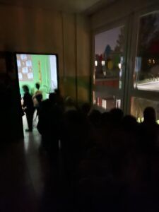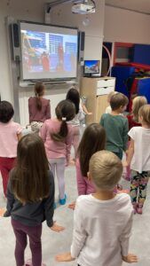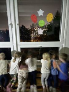 Celý večer byl proložen zábavou spojenou s pohádkami a ukončenou čtením “Zelené Karkulky před spaním. Hrály se různé hry – skládání děje pohádek podle obrázků, hádání pohádkové postavy podle popisu, skládání obrázků pohádkových postav a také písničkami z pohádek. Cesta pro poklad byla pro odvážné, ale zvládly to všechny děti. Děti také ohromila osvětlená Praha a samozřejmě večerní pizza. Noc byla klidná.