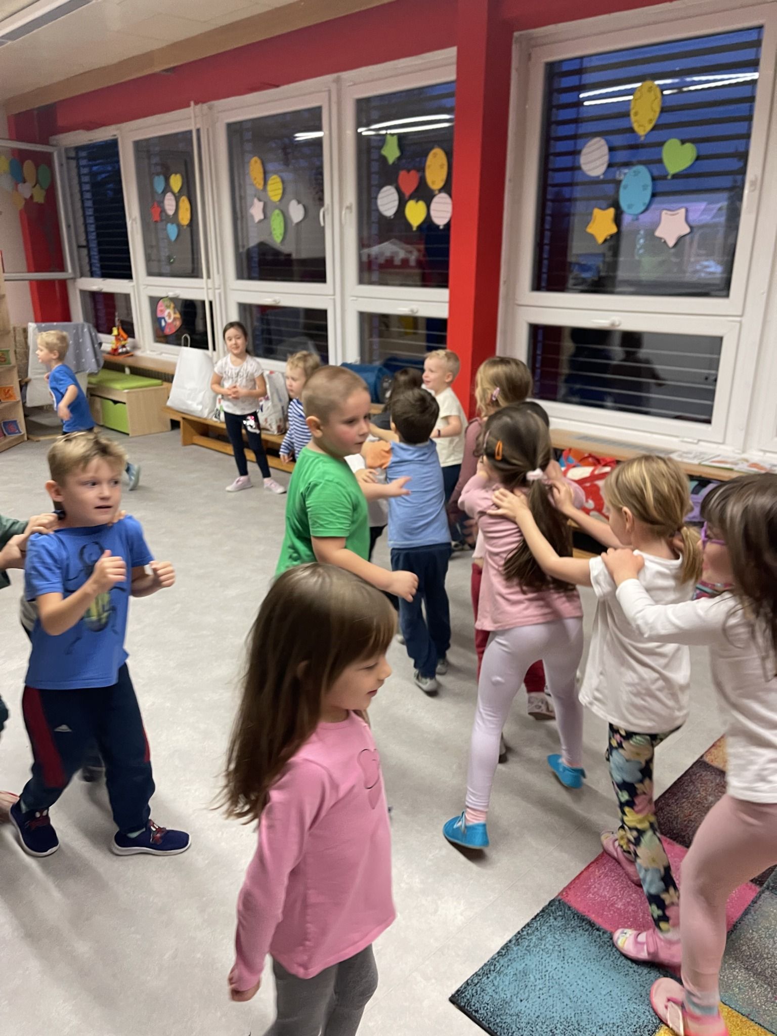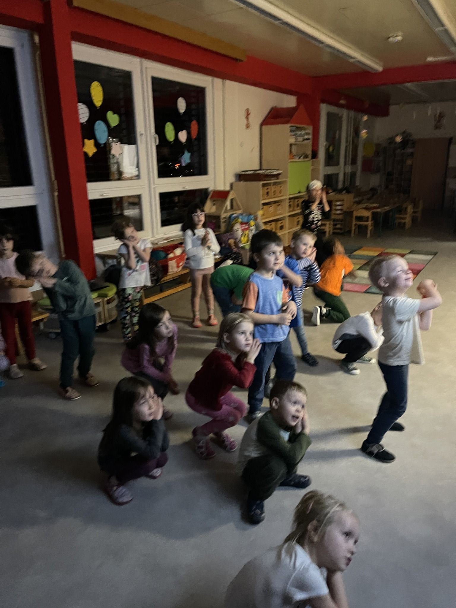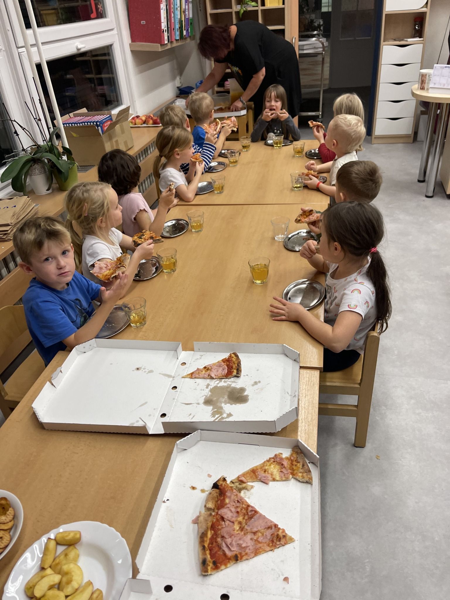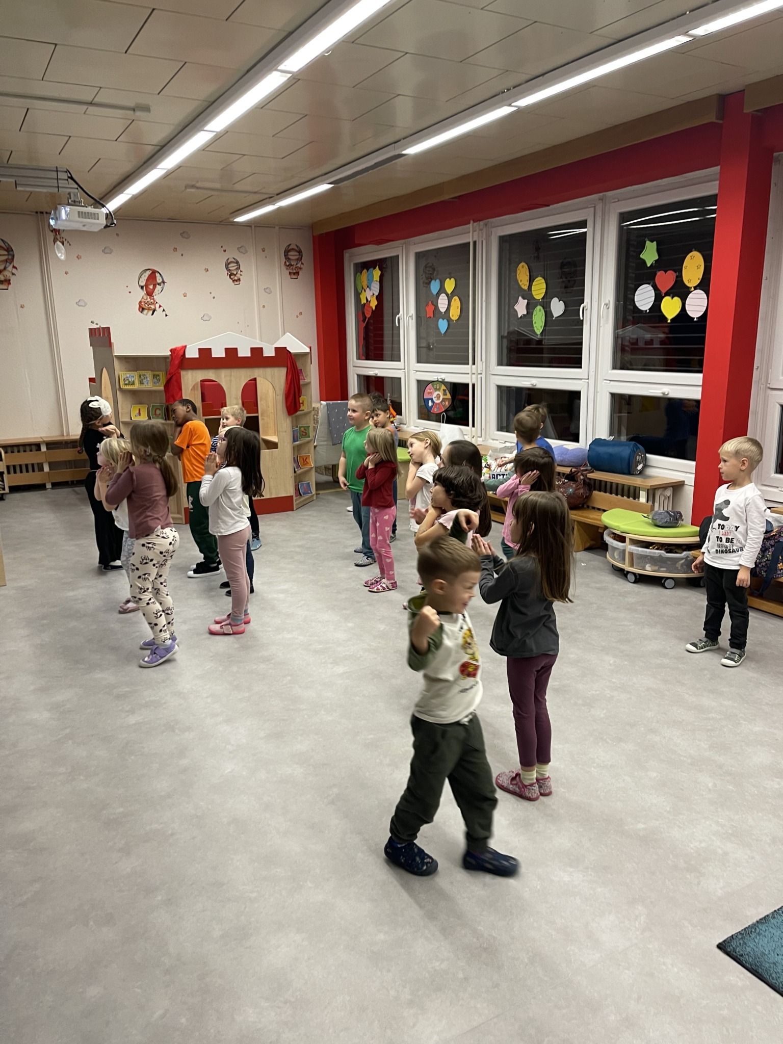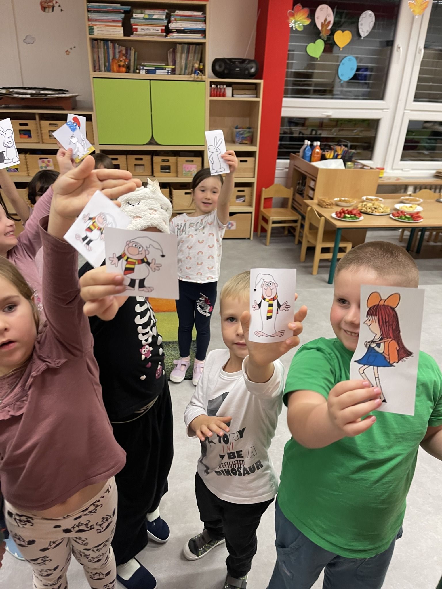 Celý večer byl proložen zábavou spojenou s pohádkami a ukončenou čtením “Zelené Karkulky před spaním. Hrály se různé hry – skládání děje pohádek podle obrázků, hádání pohádkové postavy podle popisu, skládání obrázků pohádkových postav a také písničkami z pohádek. Cesta pro poklad byla pro odvážné, ale zvládly to všechny děti. Děti také ohromila osvětlená Praha a samozřejmě večerní pizza. Noc byla klidná.