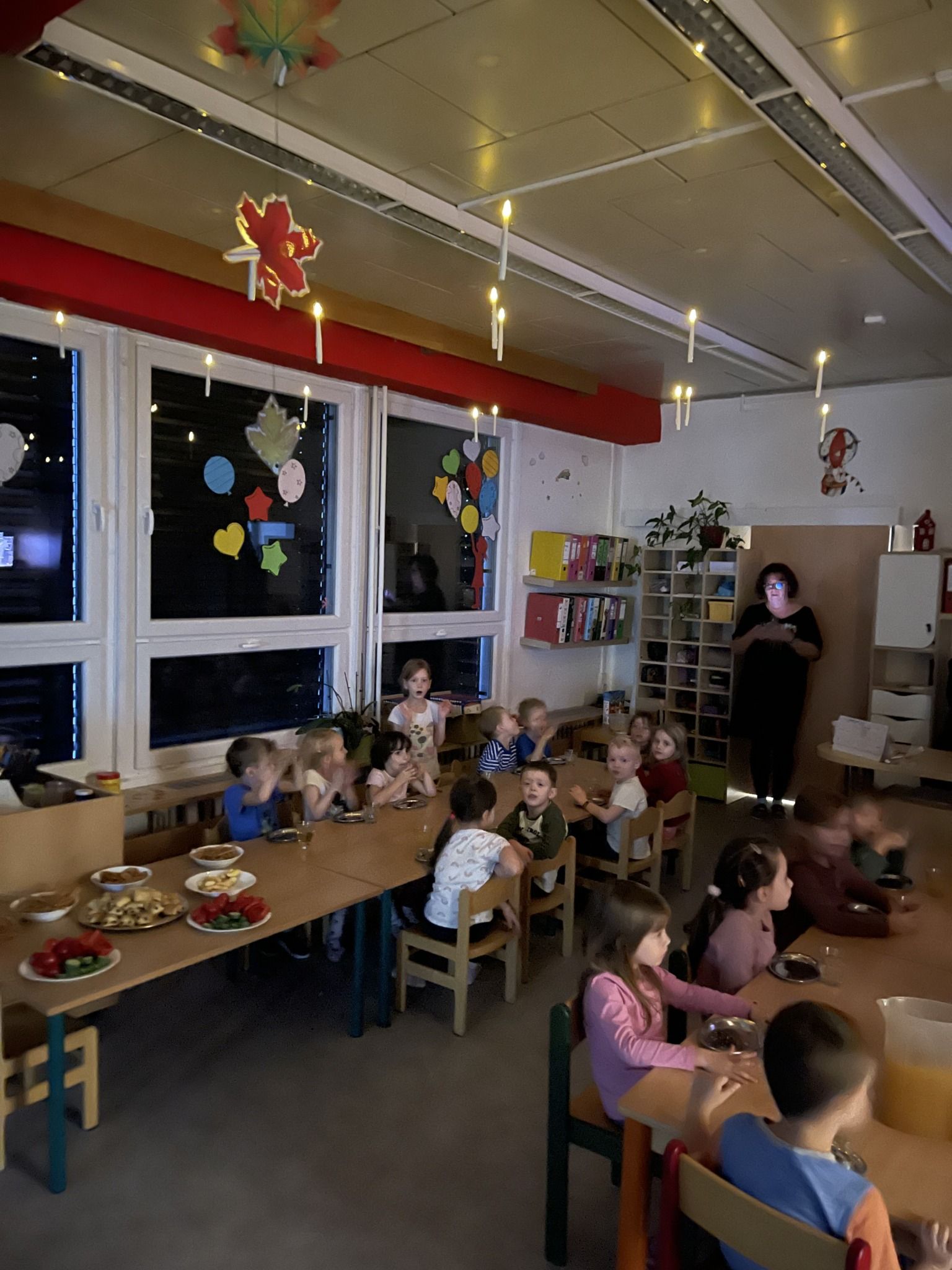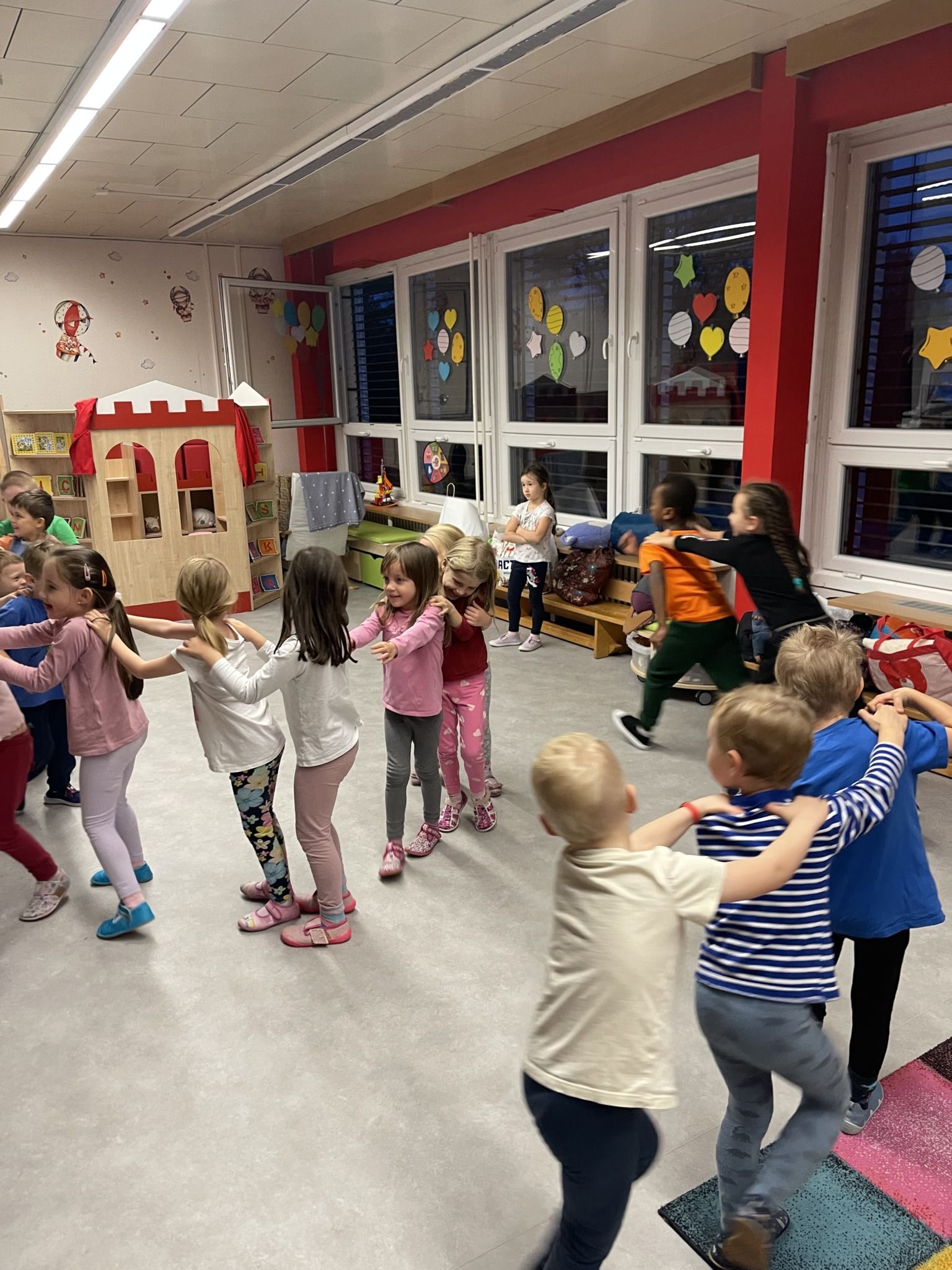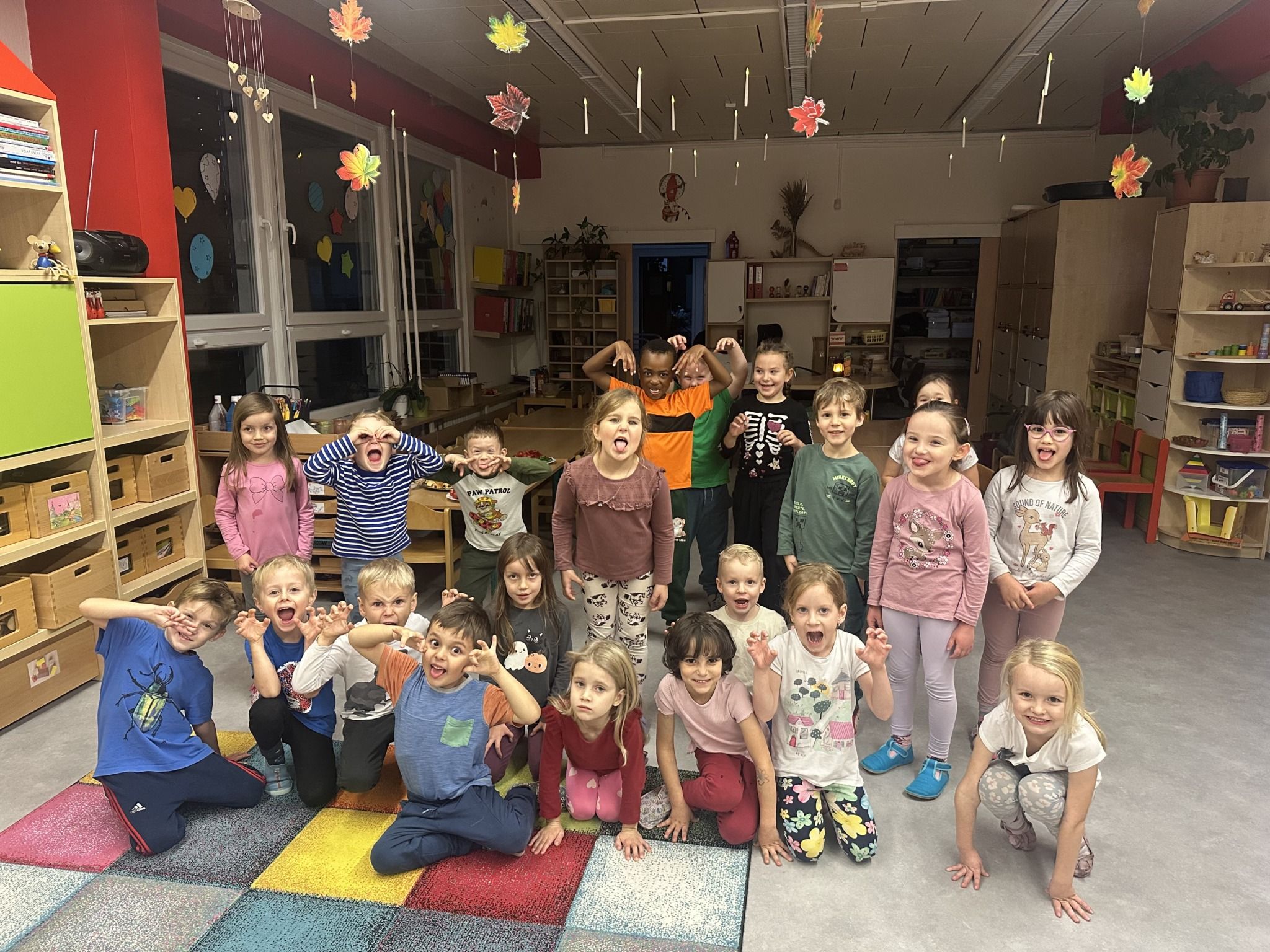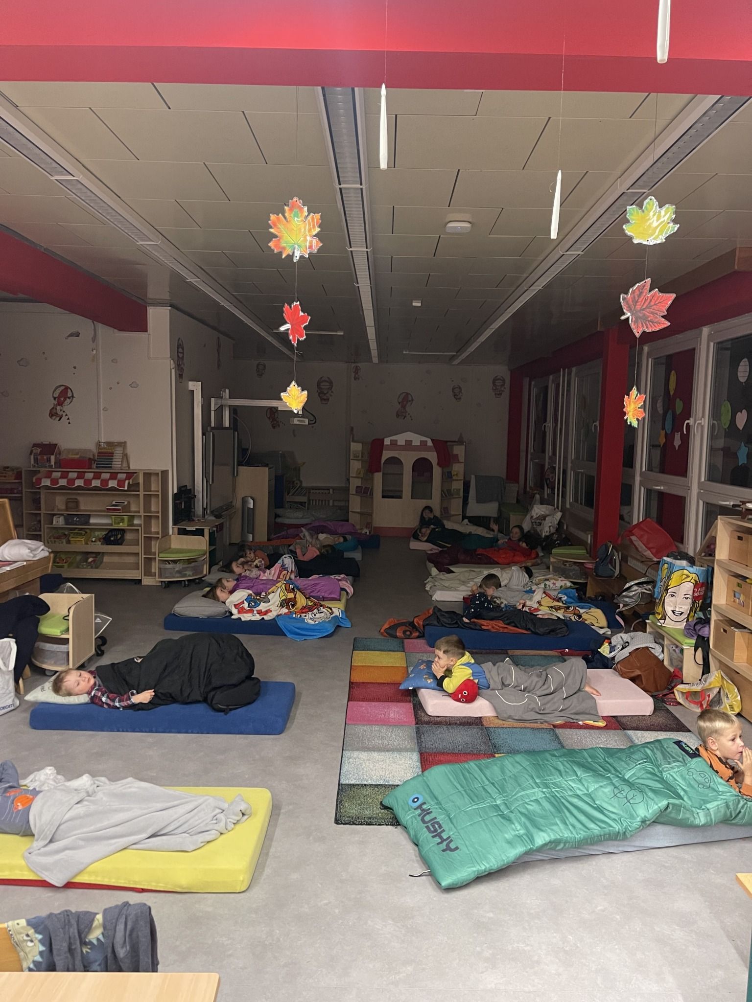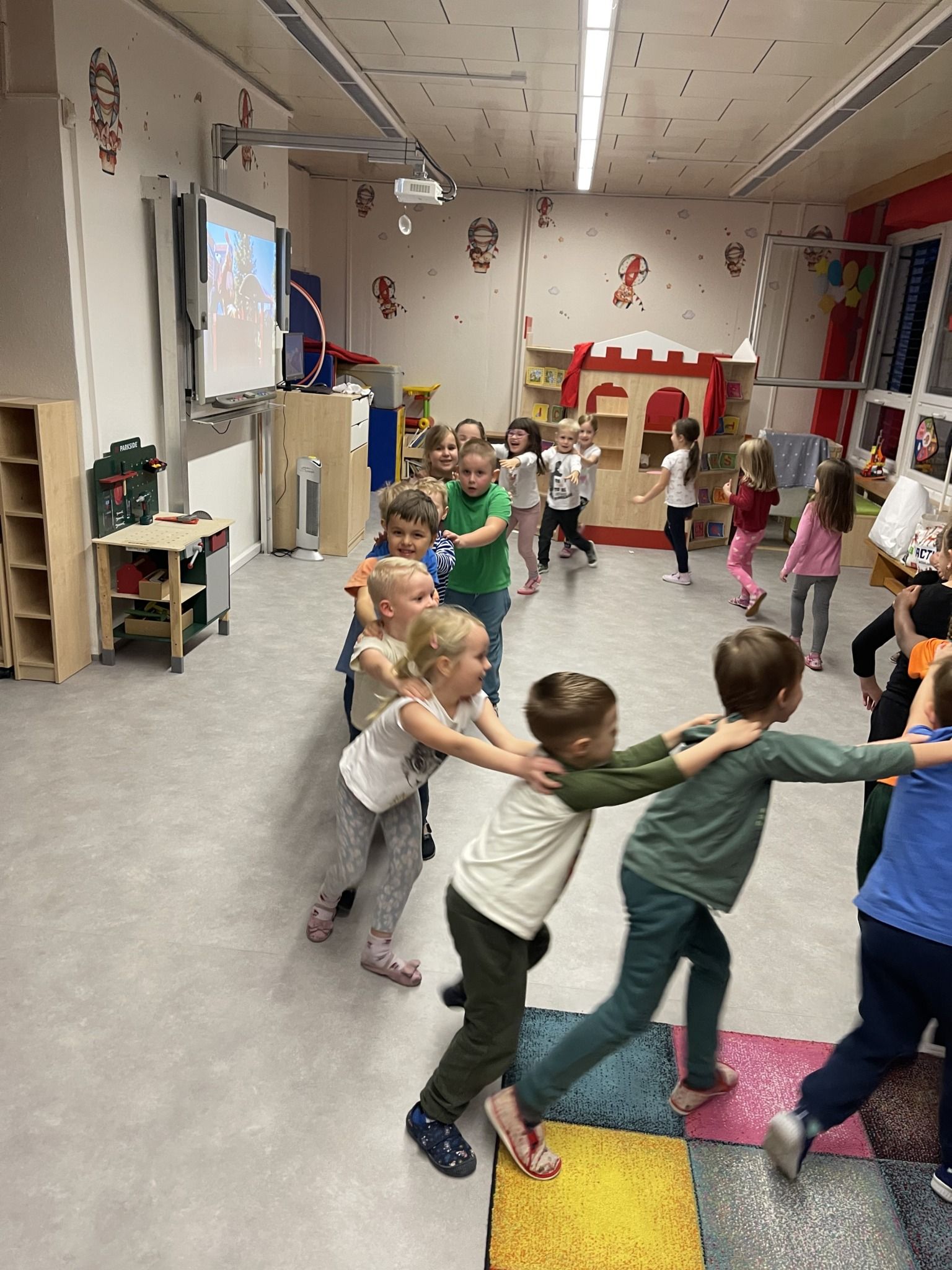 Celý večer byl proložen zábavou spojenou s pohádkami a ukončenou čtením “Zelené Karkulky před spaním. Hrály se různé hry – skládání děje pohádek podle obrázků, hádání pohádkové postavy podle popisu, skládání obrázků pohádkových postav a také písničkami z pohádek. Cesta pro poklad byla pro odvážné, ale zvládly to všechny děti. Děti také ohromila osvětlená Praha a samozřejmě večerní pizza. Noc byla klidná.