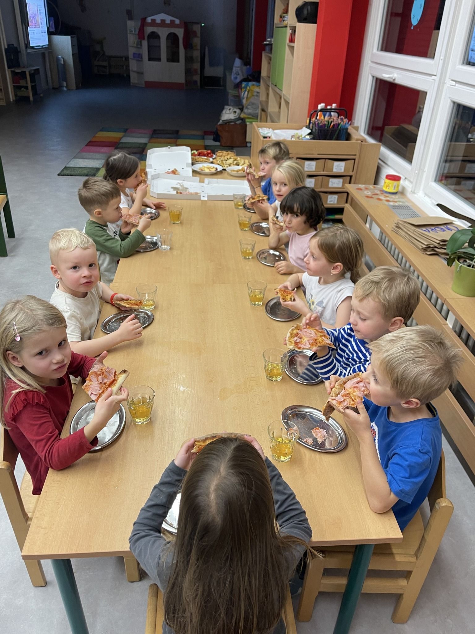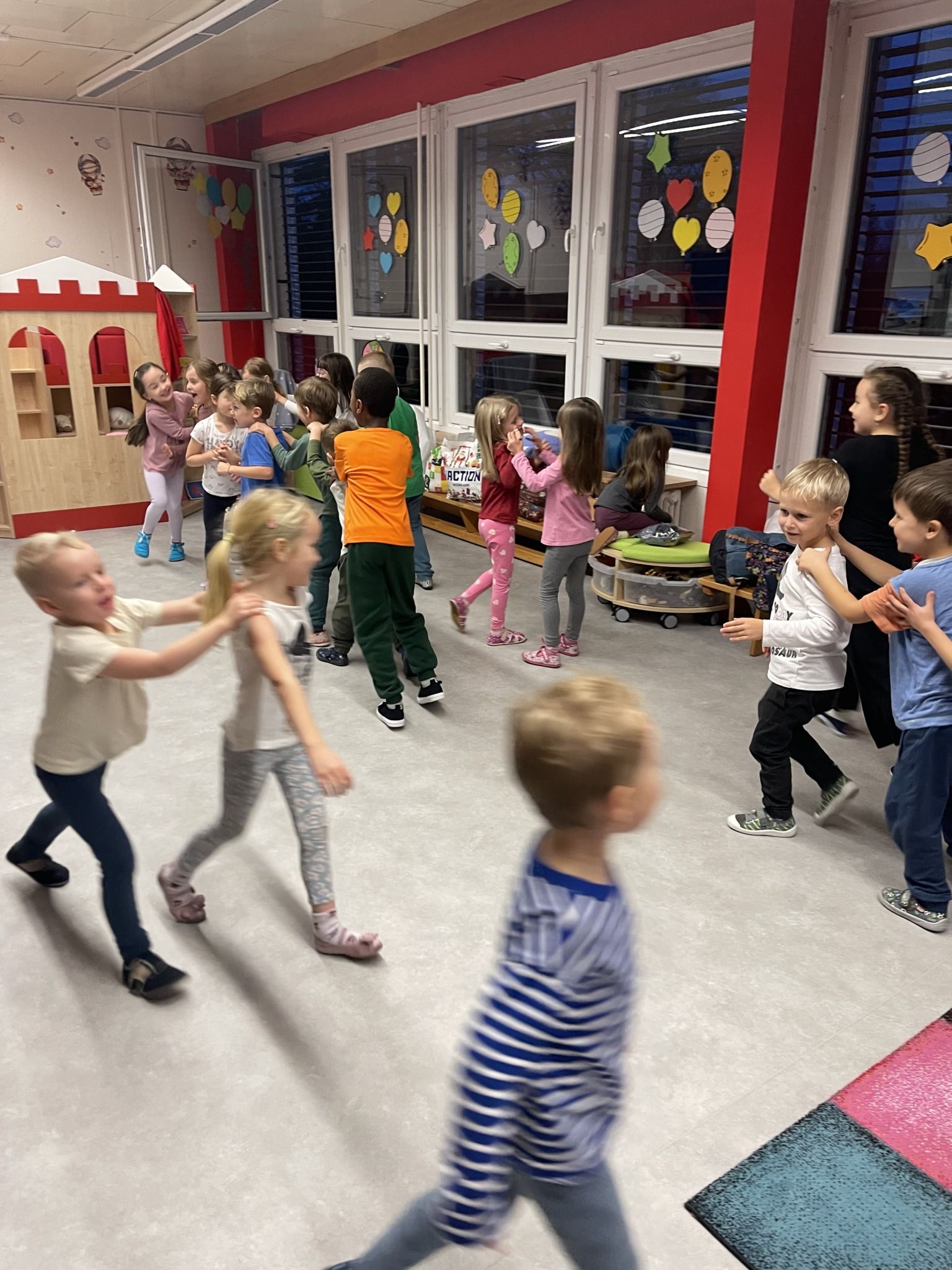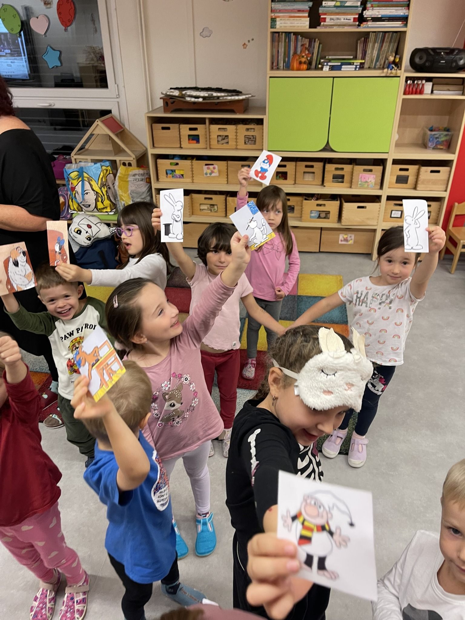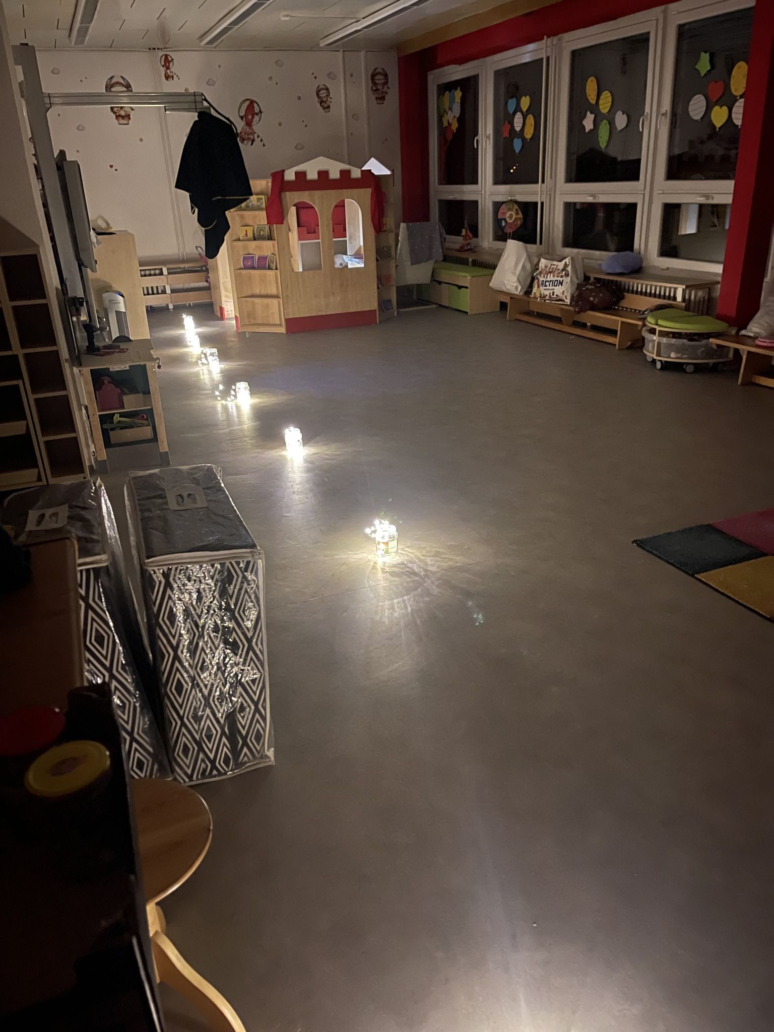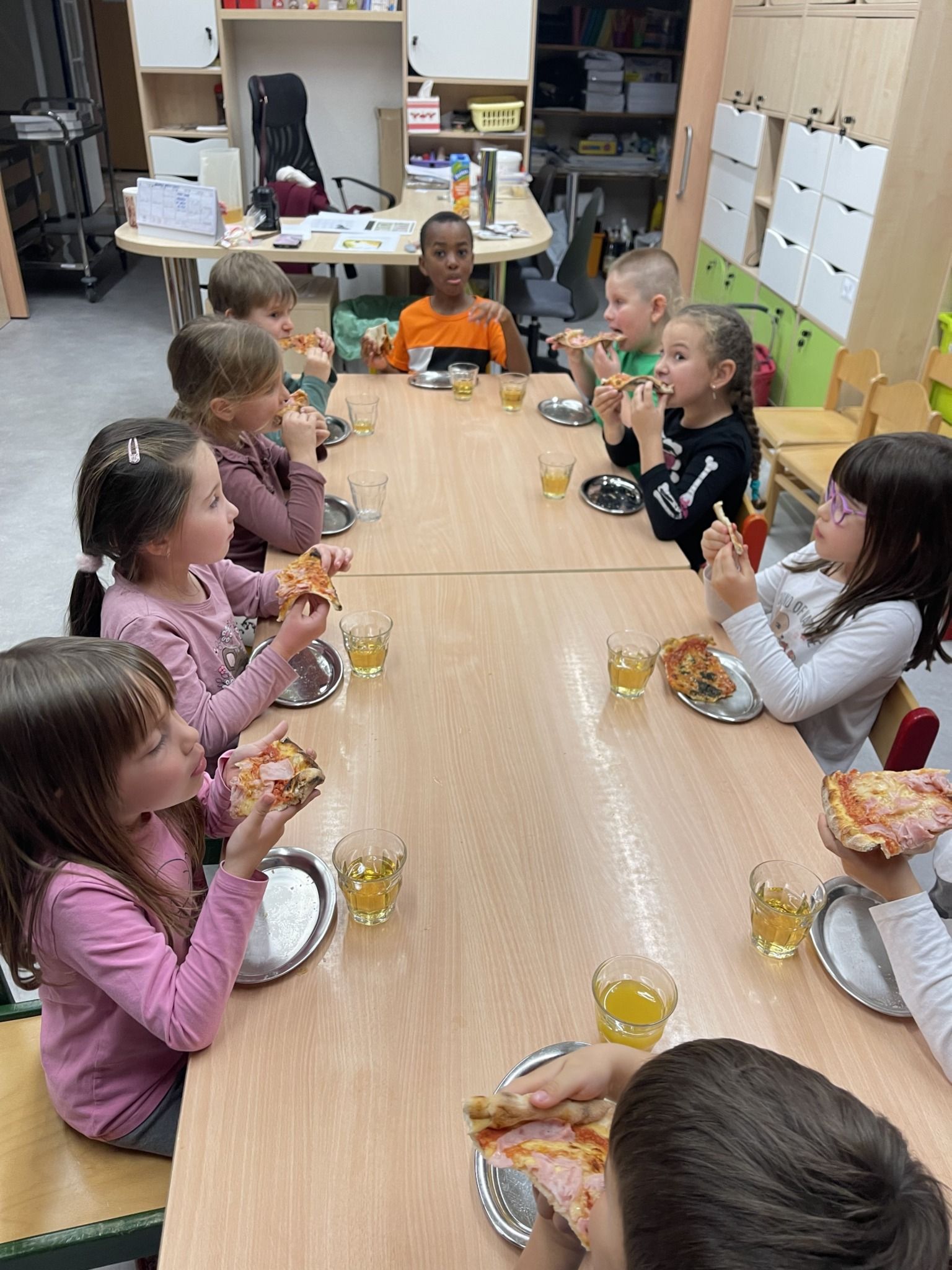 Celý večer byl proložen zábavou spojenou s pohádkami a ukončenou čtením “Zelené Karkulky před spaním. Hrály se různé hry – skládání děje pohádek podle obrázků, hádání pohádkové postavy podle popisu, skládání obrázků pohádkových postav a také písničkami z pohádek. Cesta pro poklad byla pro odvážné, ale zvládly to všechny děti. Děti také ohromila osvětlená Praha a samozřejmě večerní pizza. Noc byla klidná.