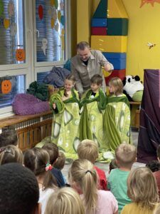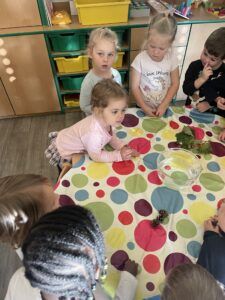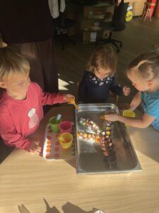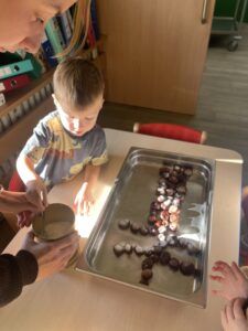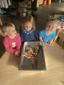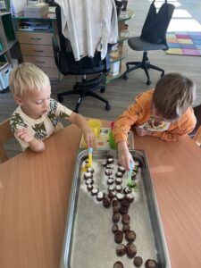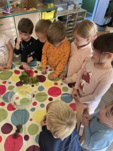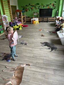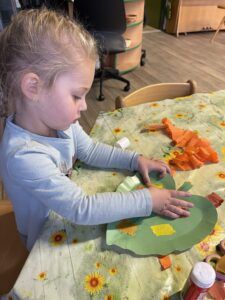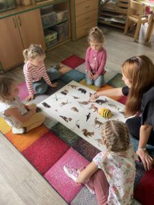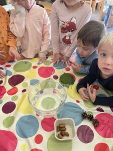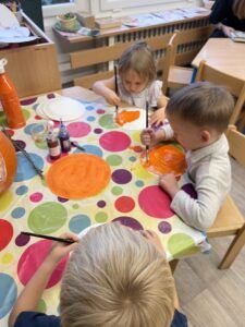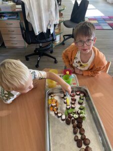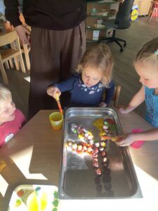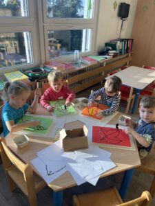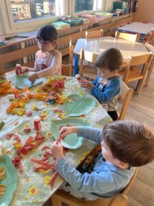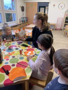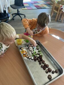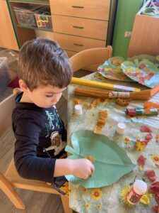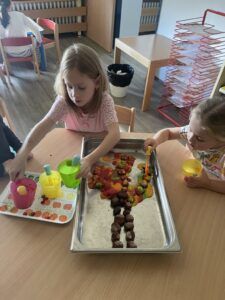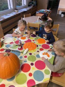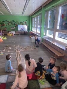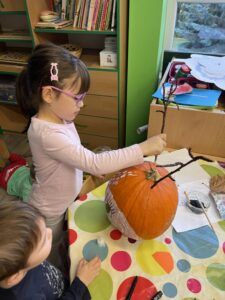 Celý týden jsme se věnovali přírodě, která je právě na podzim rozmanitá a barevná. Listí jsme tvořili různými technikami. Nezapomněli jsme ani na obyvatele, kteří žijí v lese. Oslavili jsme “Den stromů” pozorováním, pokusy a ve třídě nám na pár dní vyrostl krásný strom z dřevěné vláčkodráhy. Společně jsme zasadili několik žaludů, které když na jaře vyrostou zasadíme v lesoparku. Na výstavu dýni předškolní děti namalovaly dýni. V pátek jsme si užili pohádku ve školce.