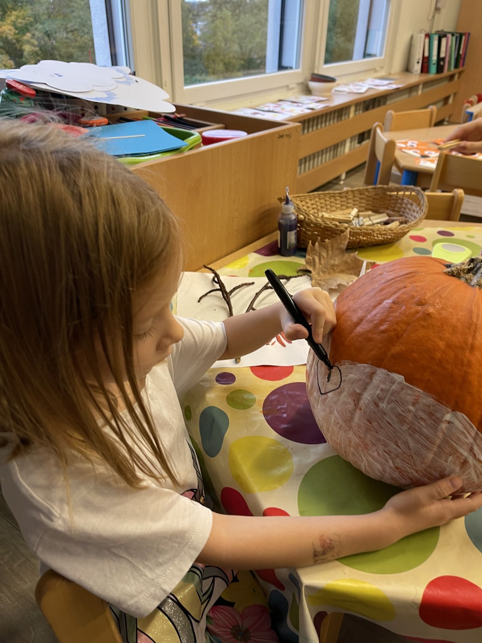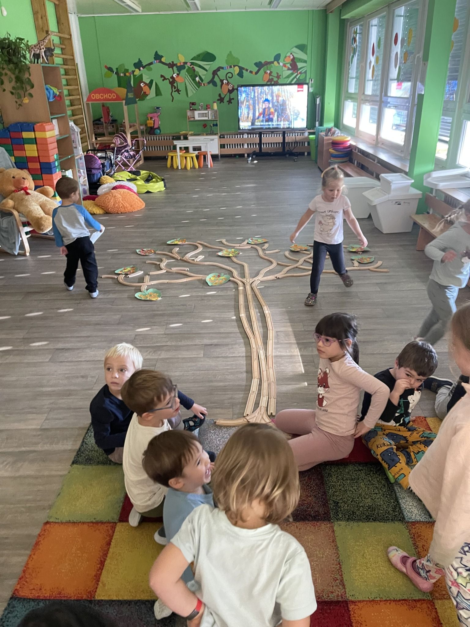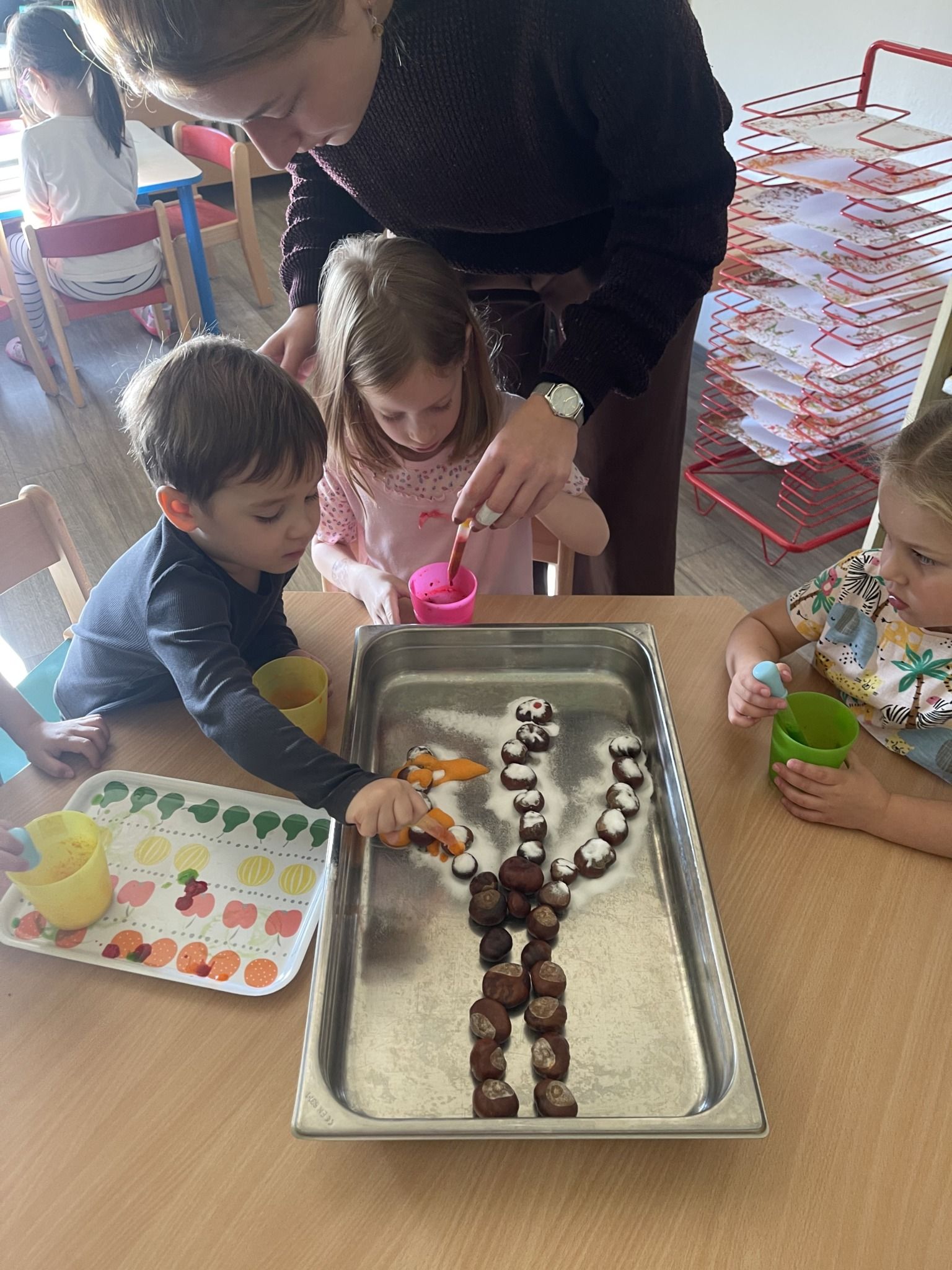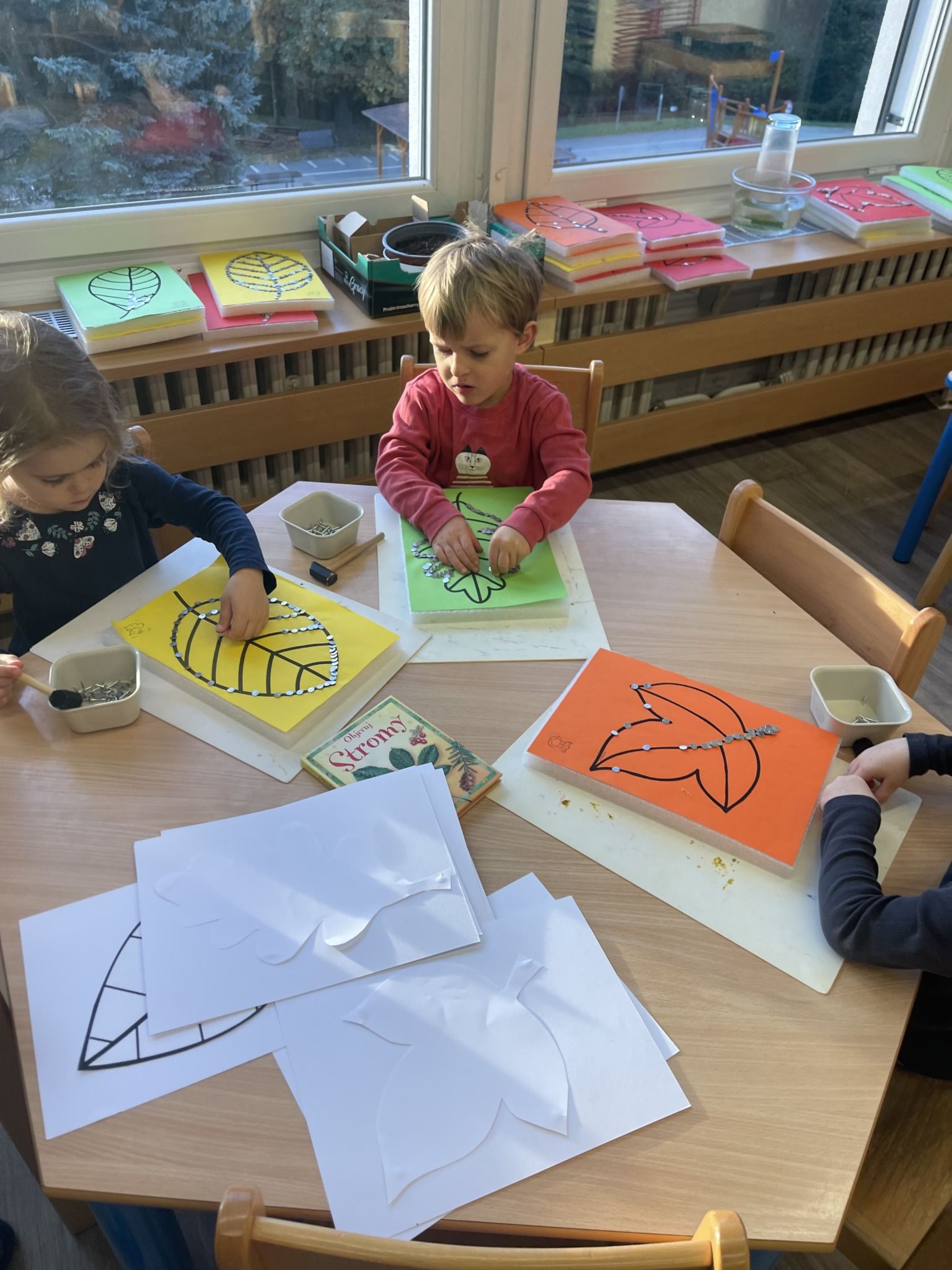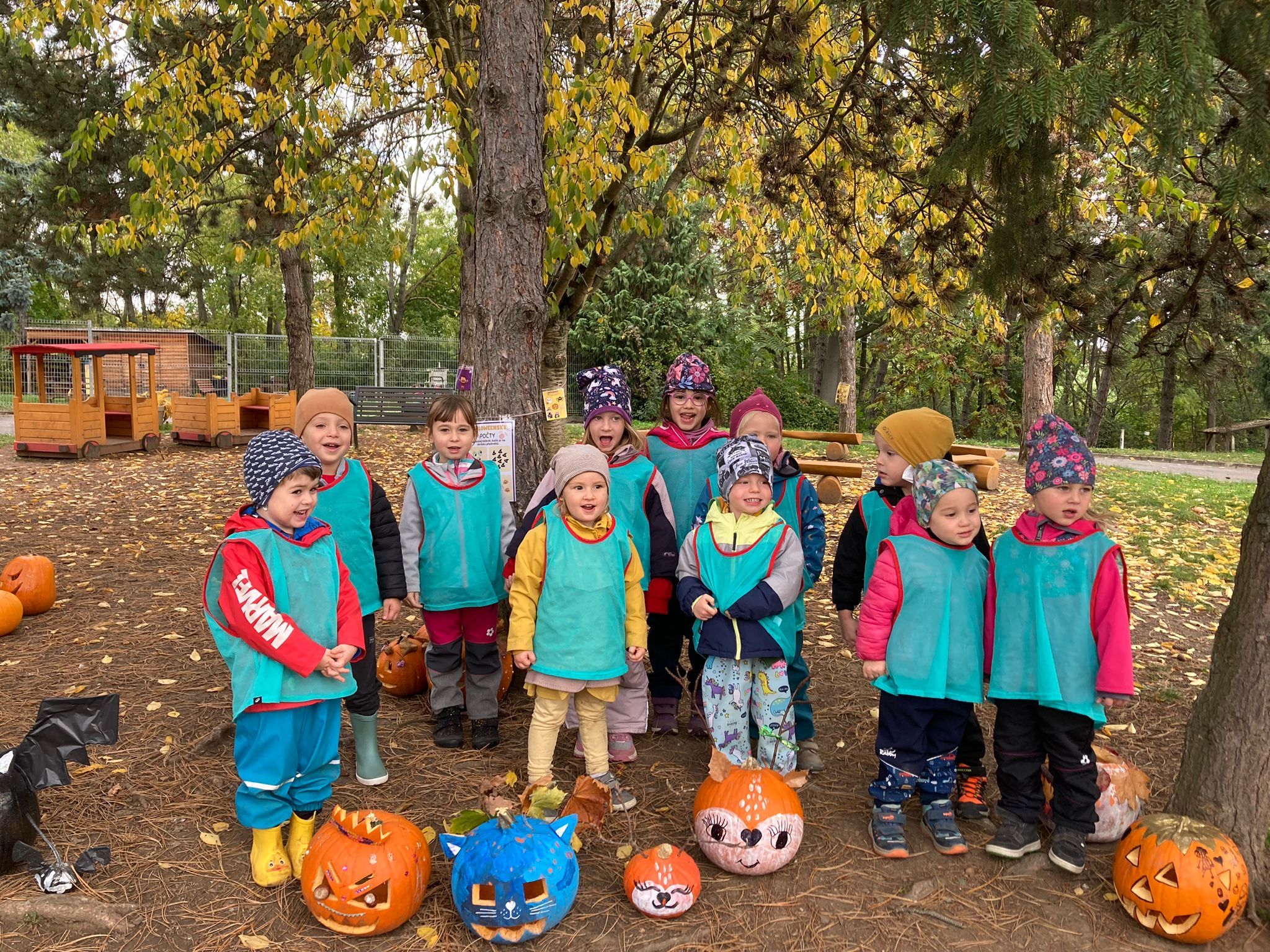 Celý týden jsme se věnovali přírodě, která je právě na podzim rozmanitá a barevná. Listí jsme tvořili různými technikami. Nezapomněli jsme ani na obyvatele, kteří žijí v lese. Oslavili jsme “Den stromů” pozorováním, pokusy a ve třídě nám na pár dní vyrostl krásný strom z dřevěné vláčkodráhy. Společně jsme zasadili několik žaludů, které když na jaře vyrostou zasadíme v lesoparku. Na výstavu dýni předškolní děti namalovaly dýni. V pátek jsme si užili pohádku ve školce.