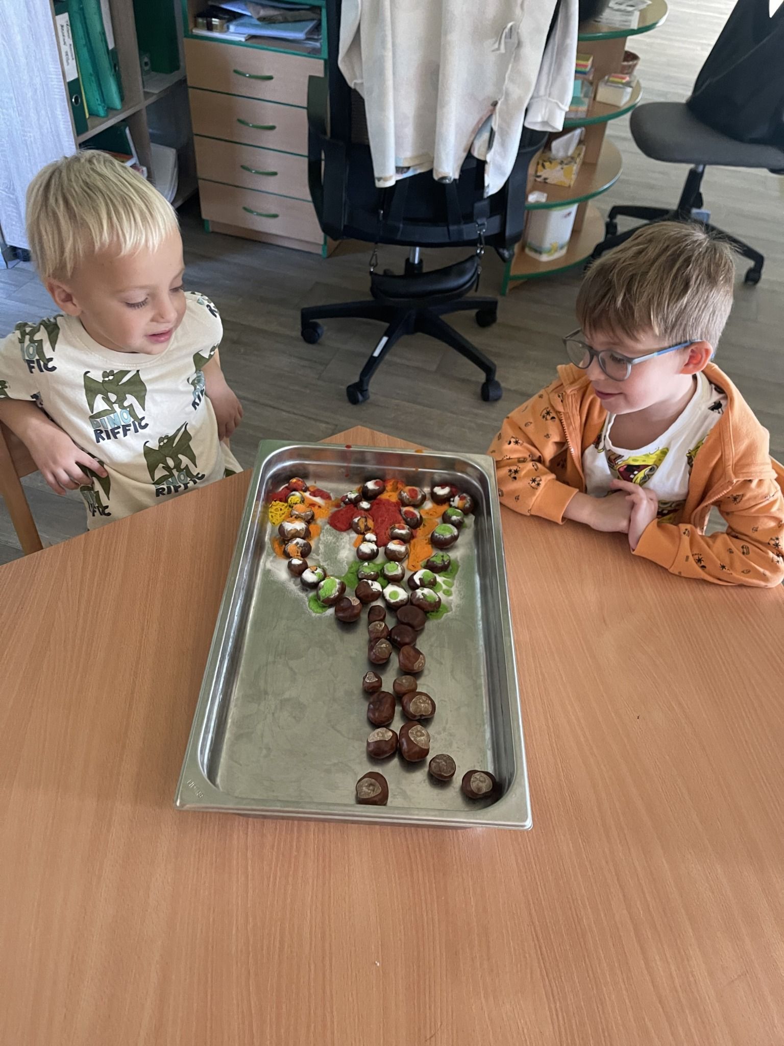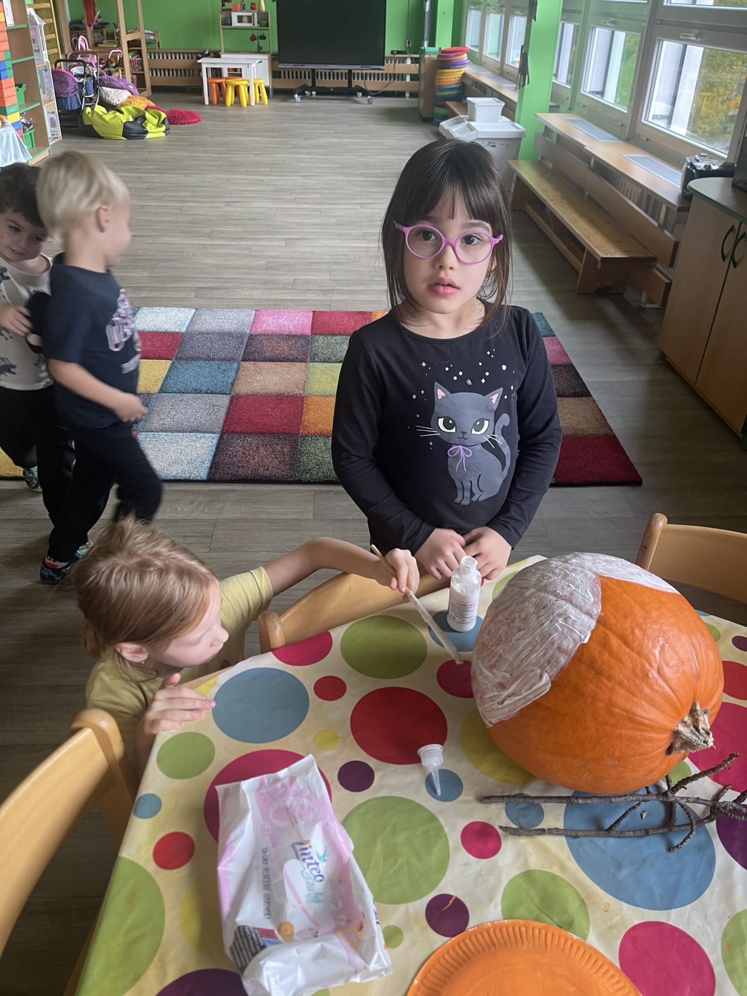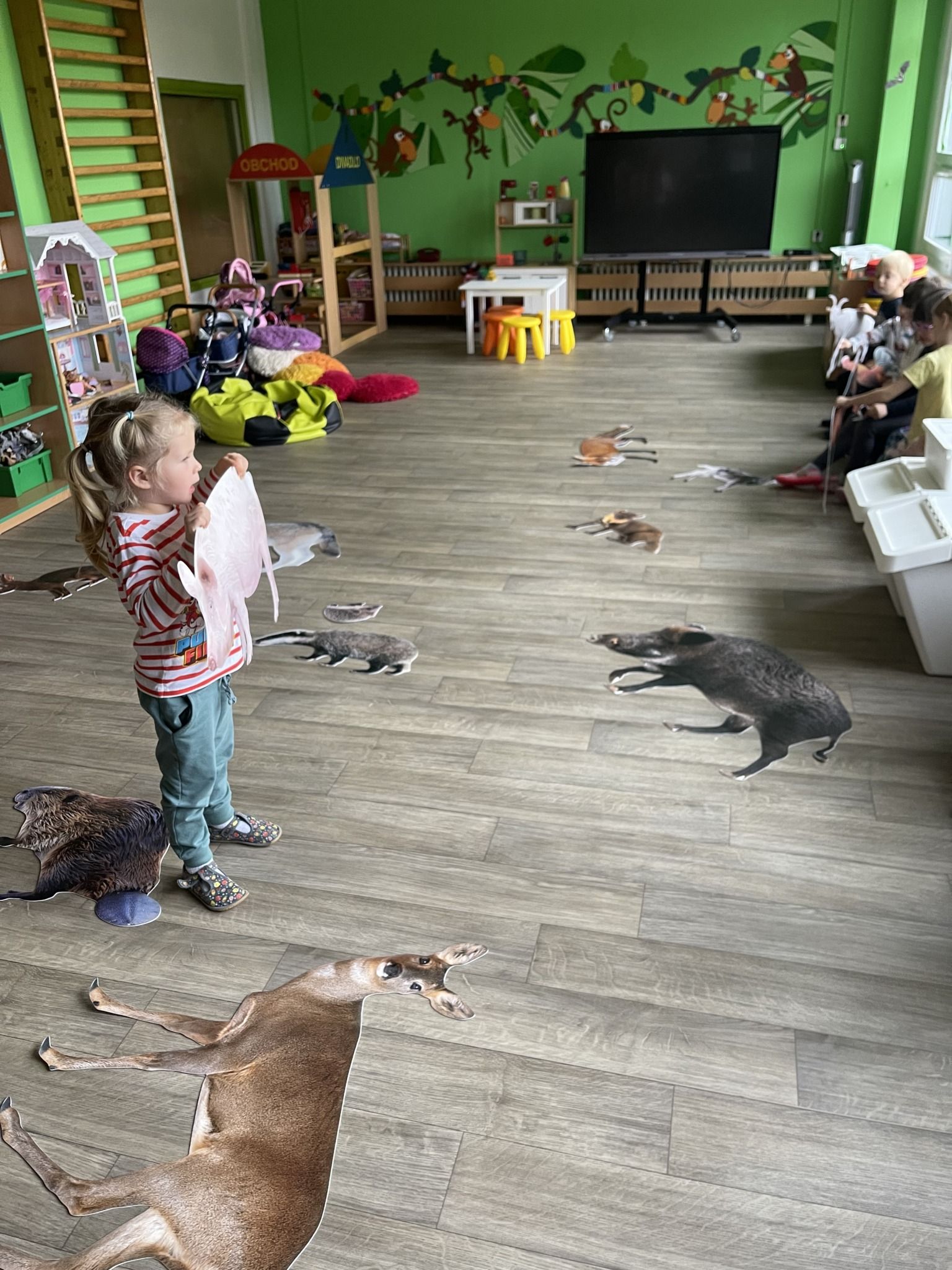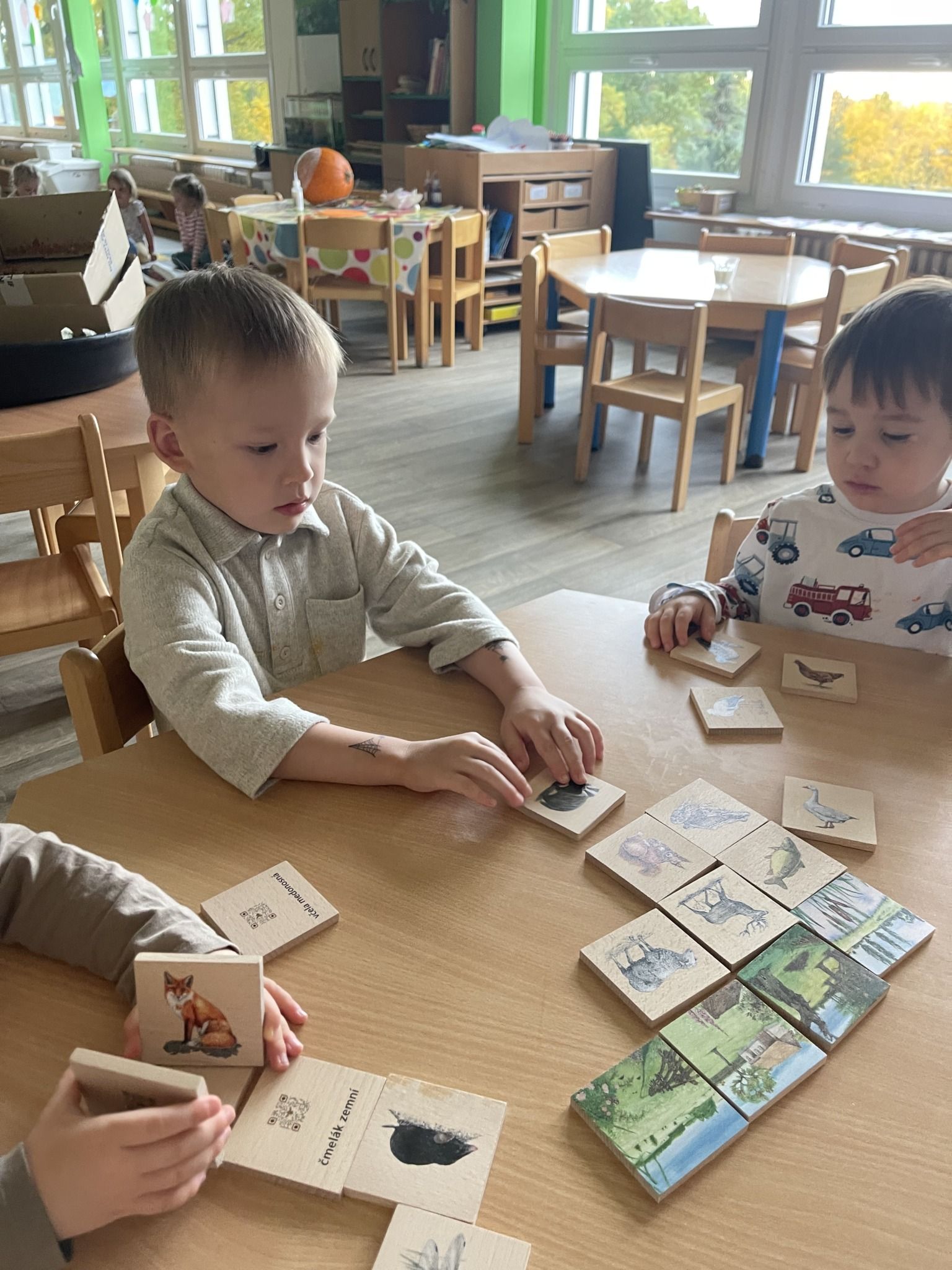 Celý týden jsme se věnovali přírodě, která je právě na podzim rozmanitá a barevná. Listí jsme tvořili různými technikami. Nezapomněli jsme ani na obyvatele, kteří žijí v lese. Oslavili jsme “Den stromů” pozorováním, pokusy a ve třídě nám na pár dní vyrostl krásný strom z dřevěné vláčkodráhy. Společně jsme zasadili několik žaludů, které když na jaře vyrostou zasadíme v lesoparku. Na výstavu dýni předškolní děti namalovaly dýni. V pátek jsme si užili pohádku ve školce.