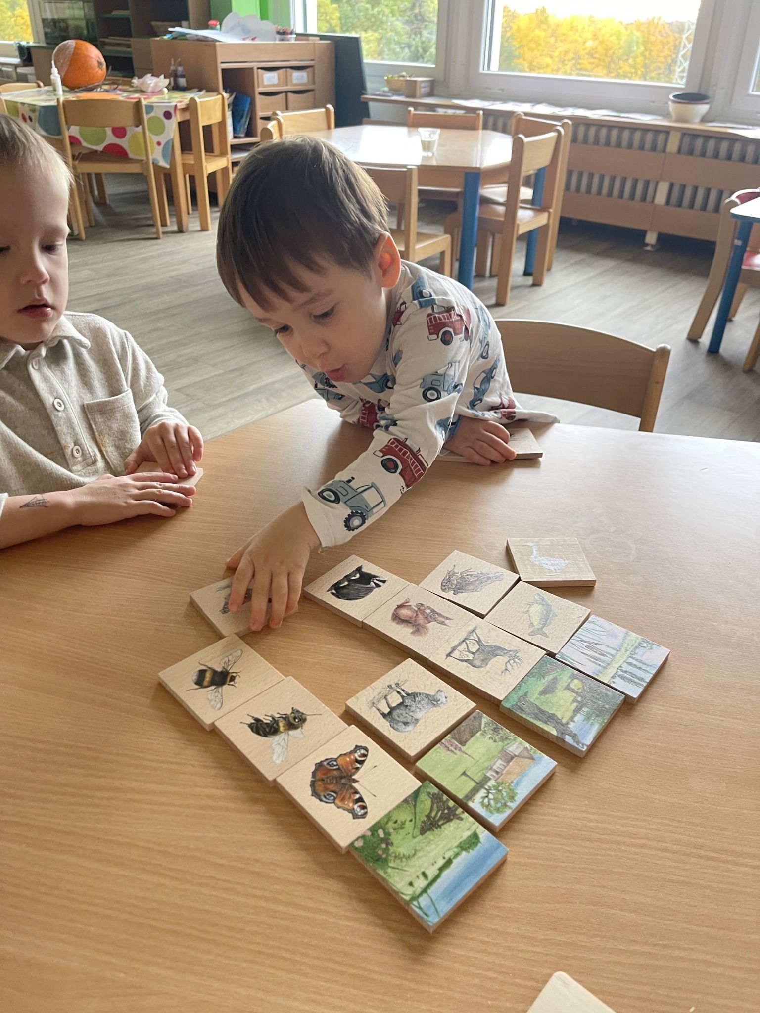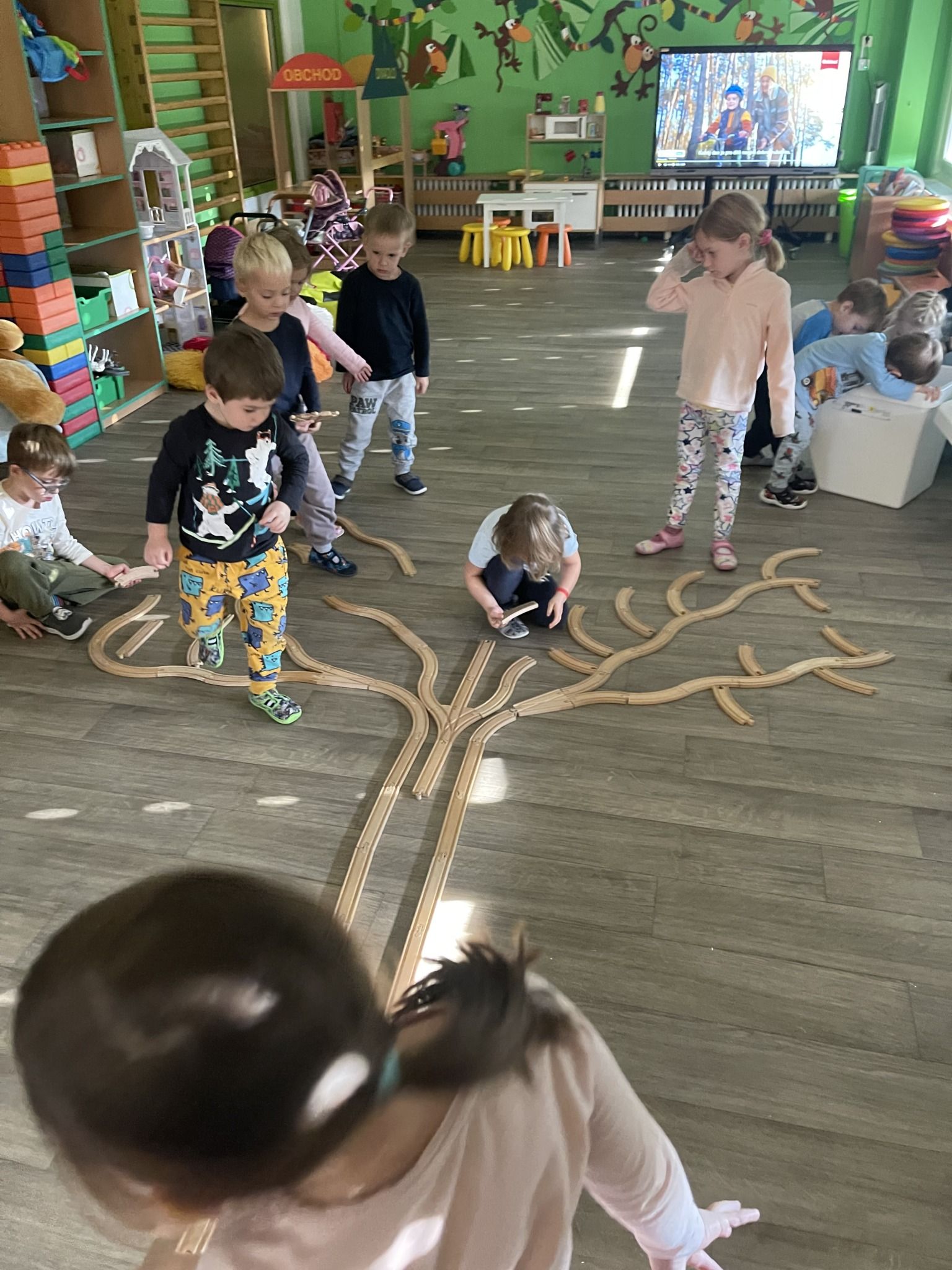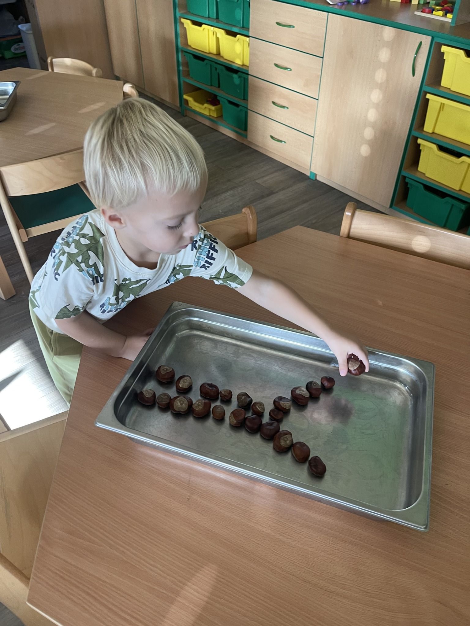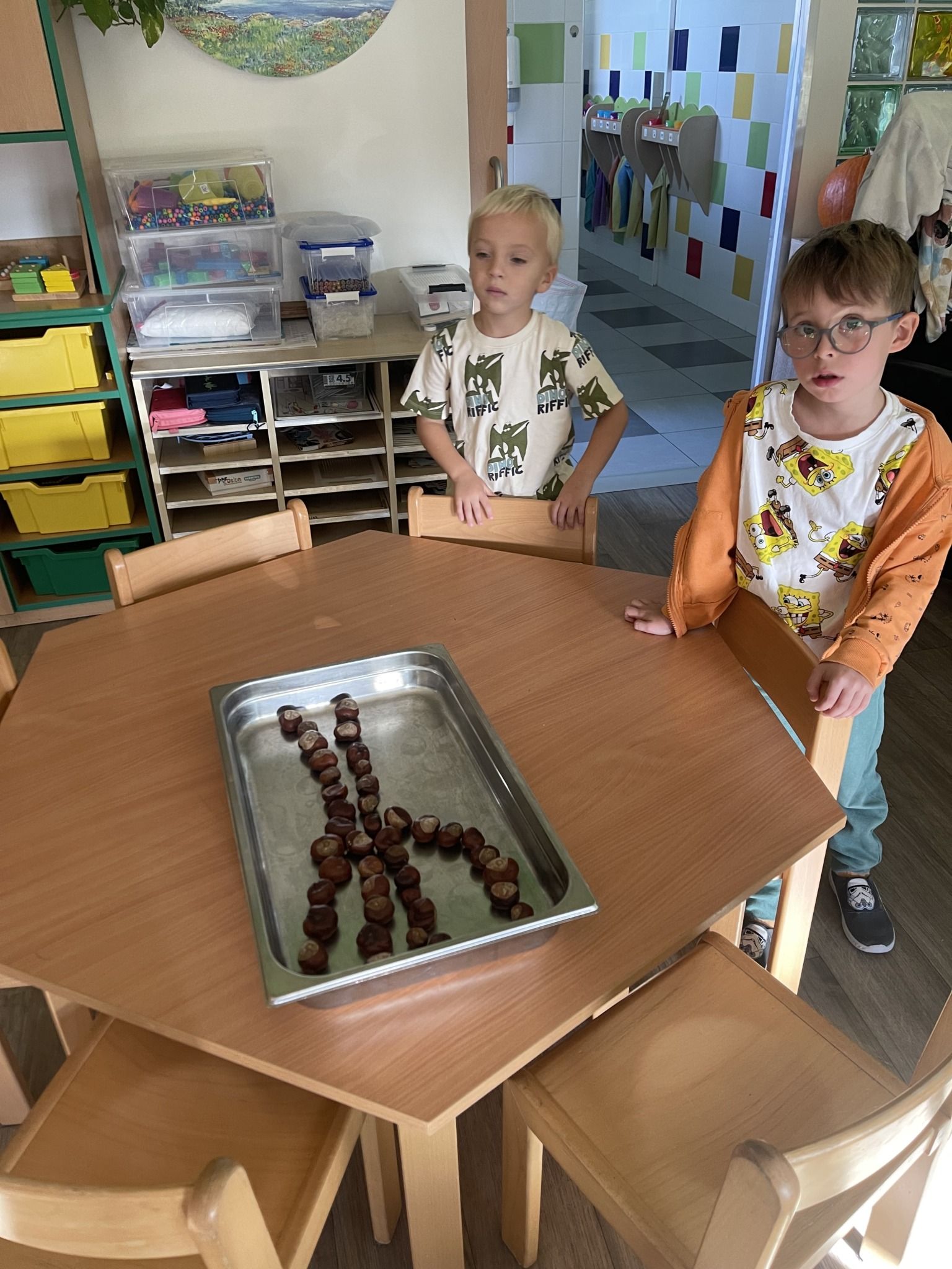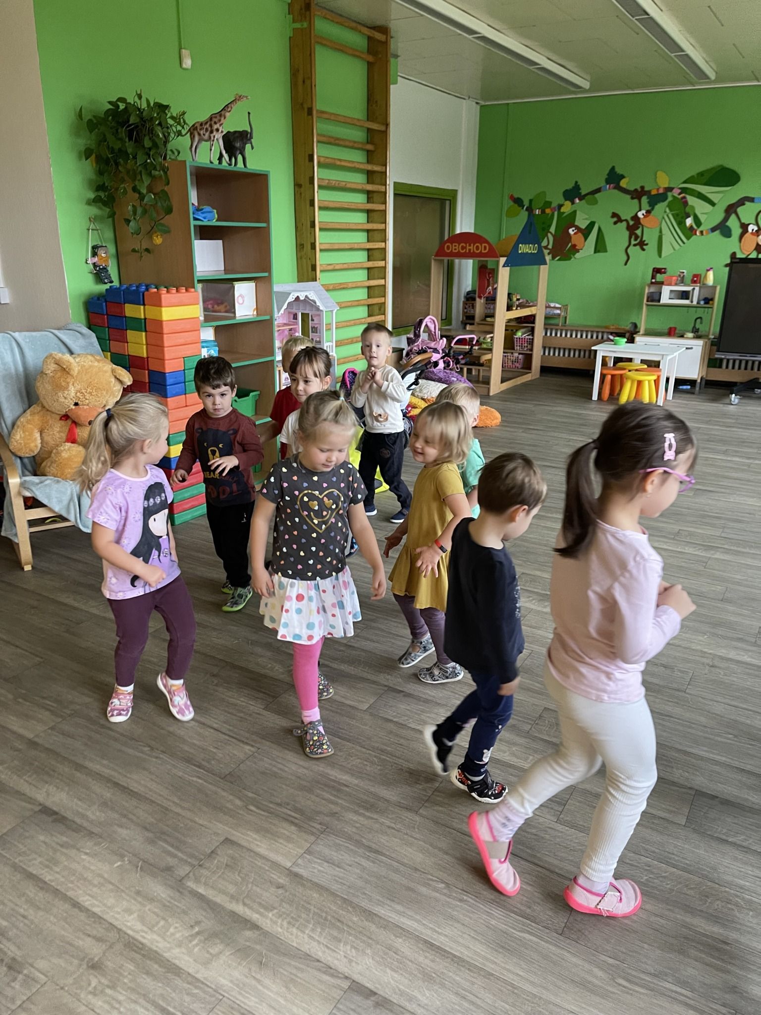 Celý týden jsme se věnovali přírodě, která je právě na podzim rozmanitá a barevná. Listí jsme tvořili různými technikami. Nezapomněli jsme ani na obyvatele, kteří žijí v lese. Oslavili jsme “Den stromů” pozorováním, pokusy a ve třídě nám na pár dní vyrostl krásný strom z dřevěné vláčkodráhy. Společně jsme zasadili několik žaludů, které když na jaře vyrostou zasadíme v lesoparku. Na výstavu dýni předškolní děti namalovaly dýni. V pátek jsme si užili pohádku ve školce.