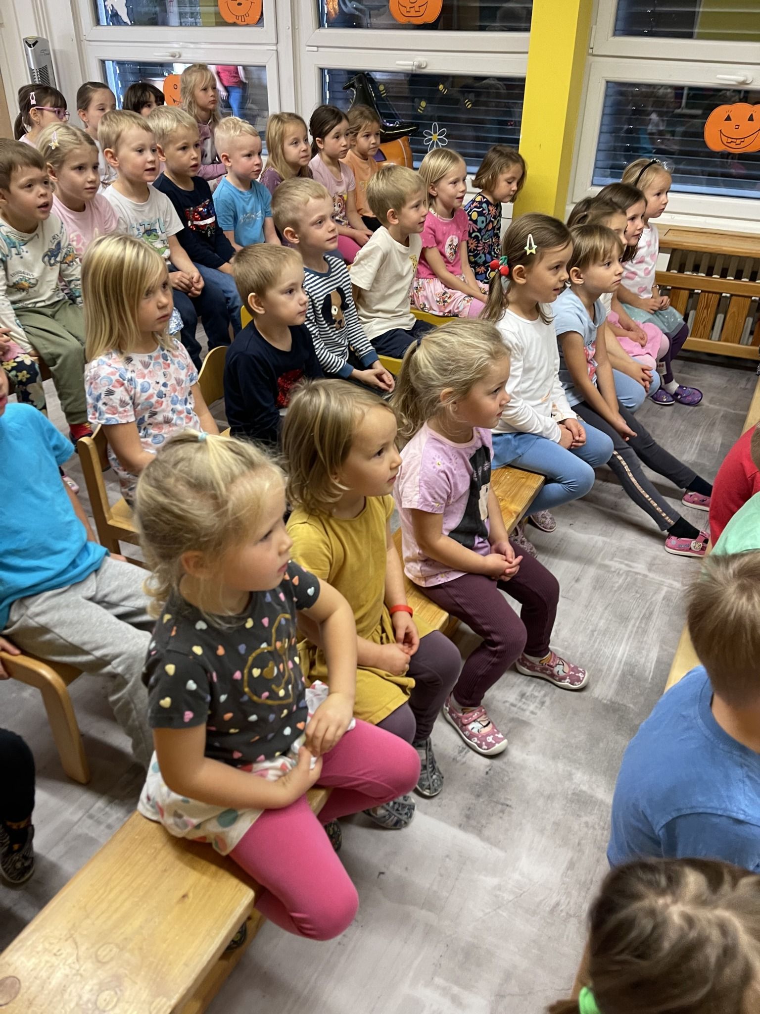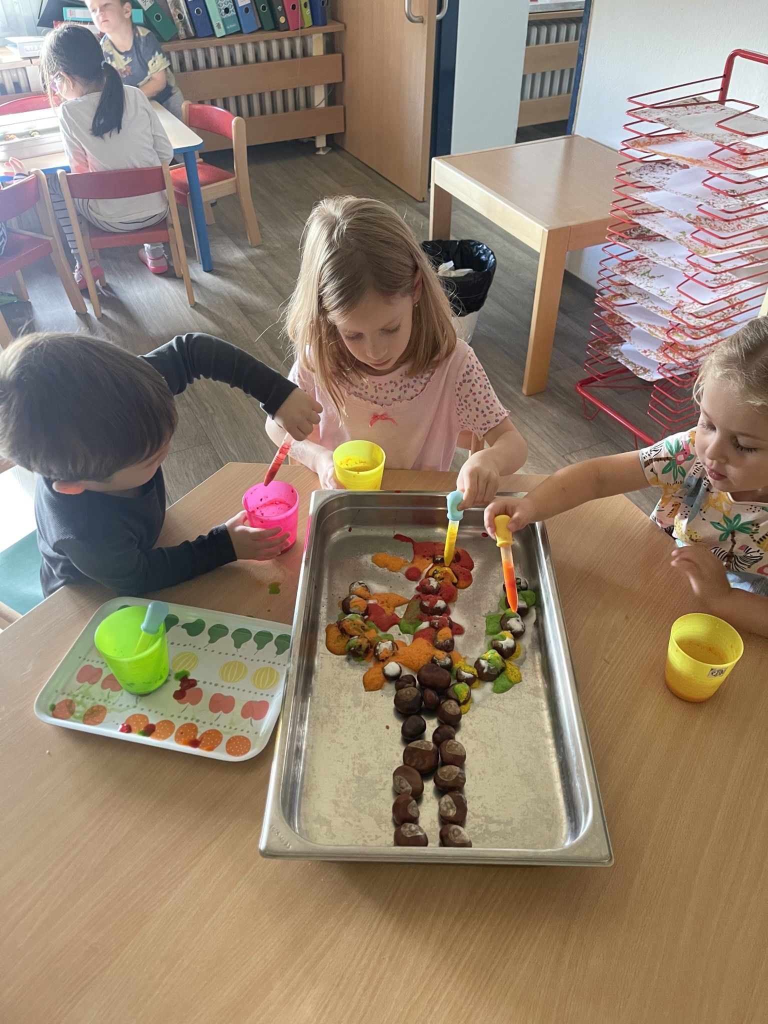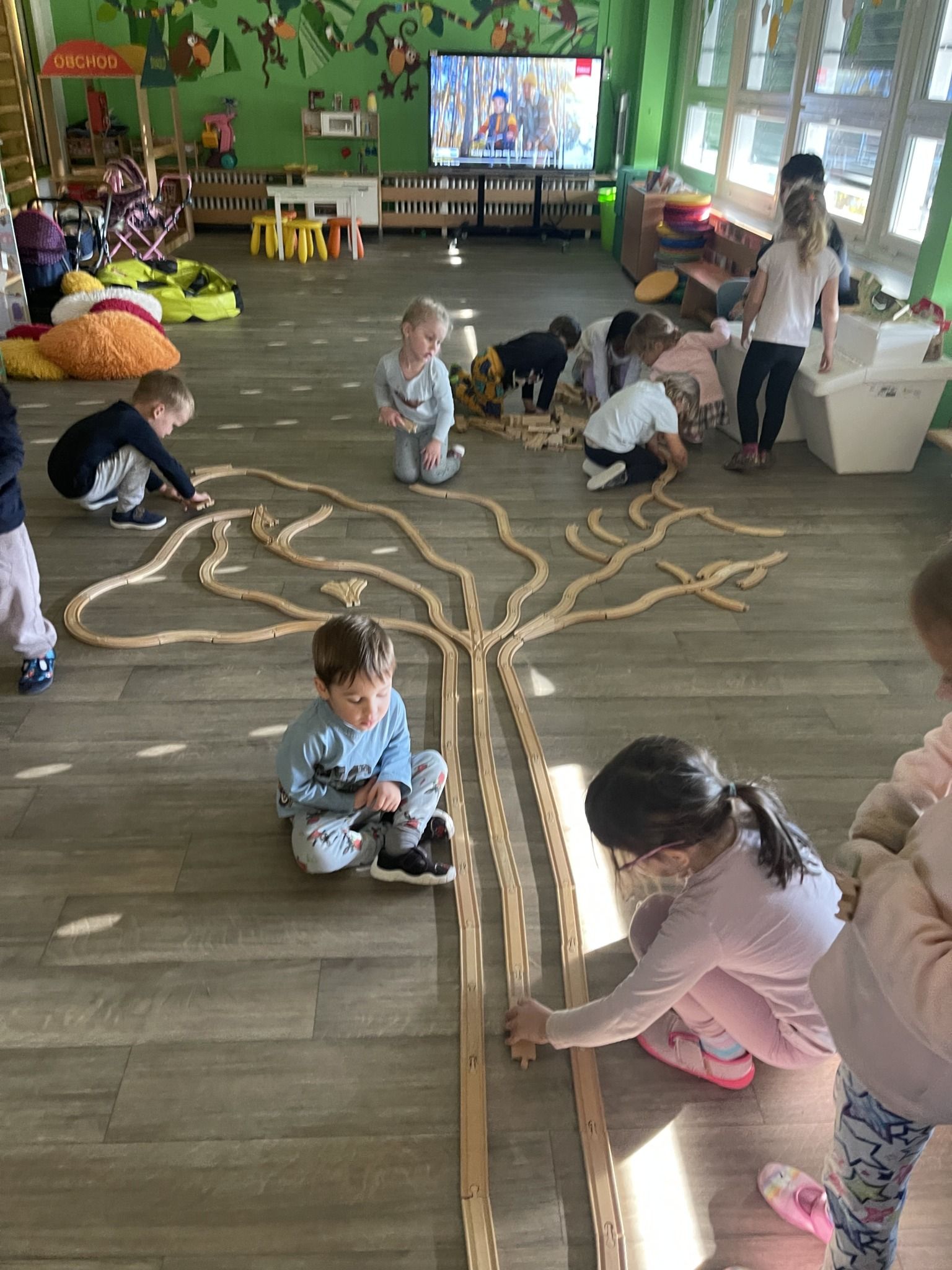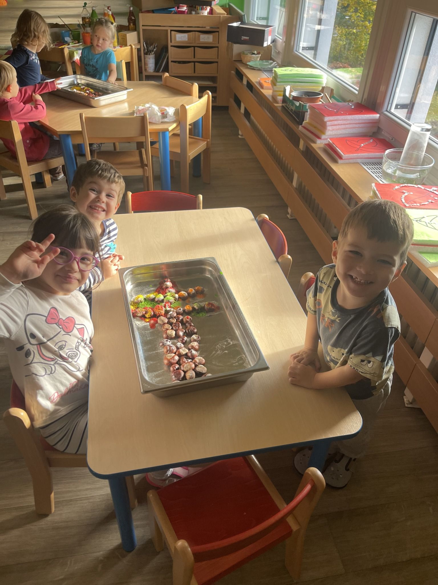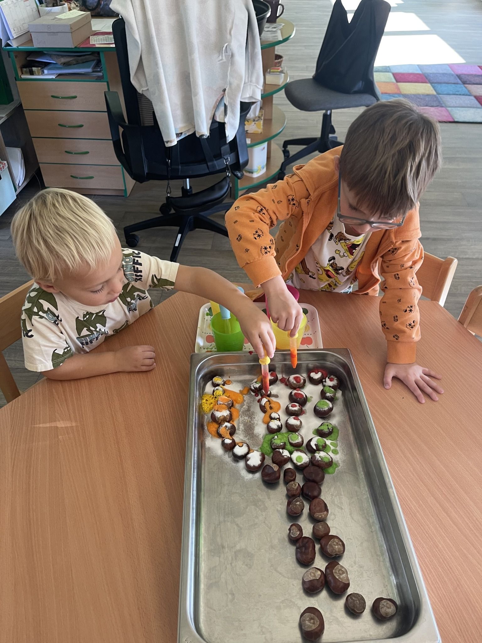 Celý týden jsme se věnovali přírodě, která je právě na podzim rozmanitá a barevná. Listí jsme tvořili různými technikami. Nezapomněli jsme ani na obyvatele, kteří žijí v lese. Oslavili jsme “Den stromů” pozorováním, pokusy a ve třídě nám na pár dní vyrostl krásný strom z dřevěné vláčkodráhy. Společně jsme zasadili několik žaludů, které když na jaře vyrostou zasadíme v lesoparku. Na výstavu dýni předškolní děti namalovaly dýni. V pátek jsme si užili pohádku ve školce.