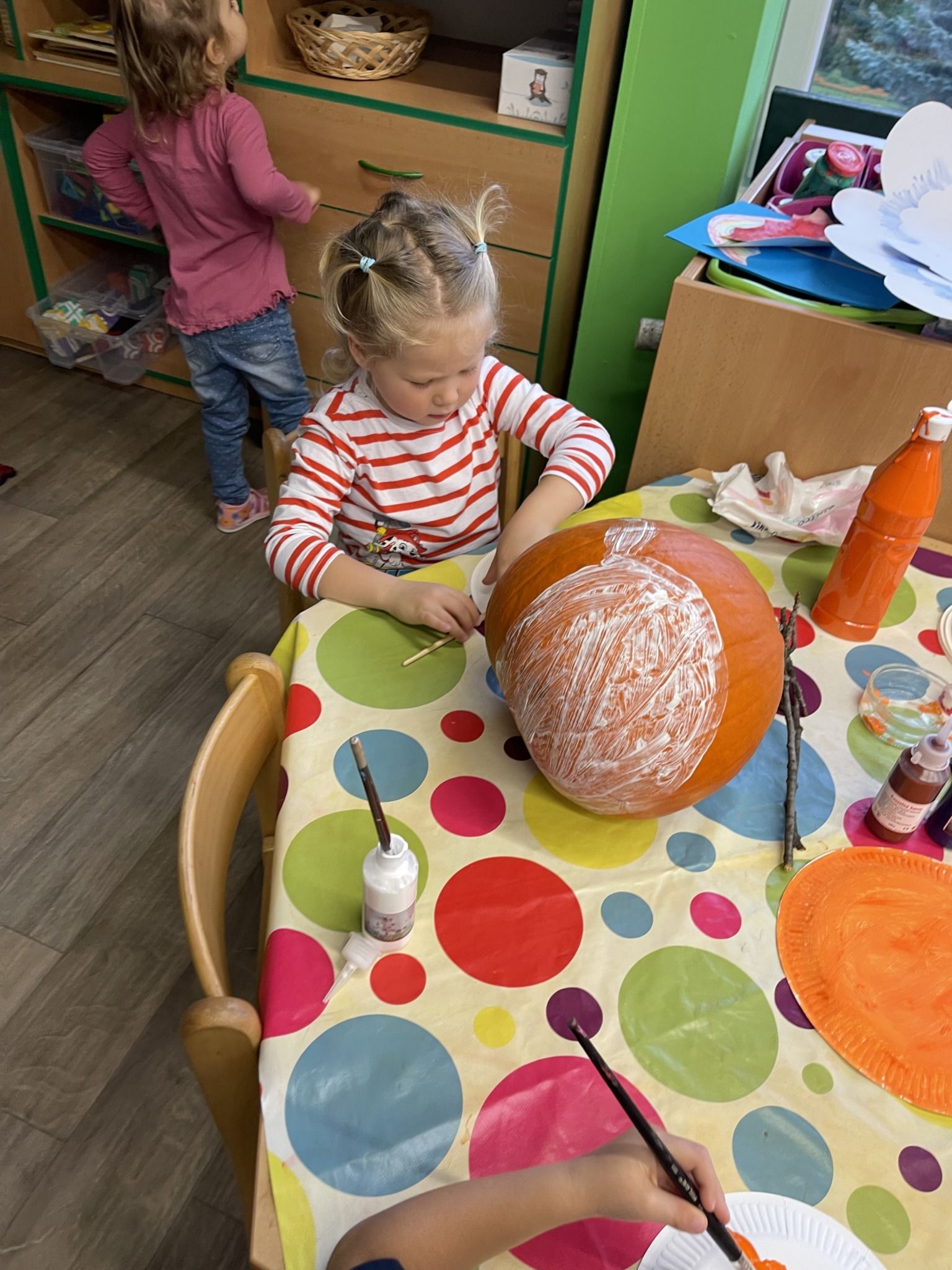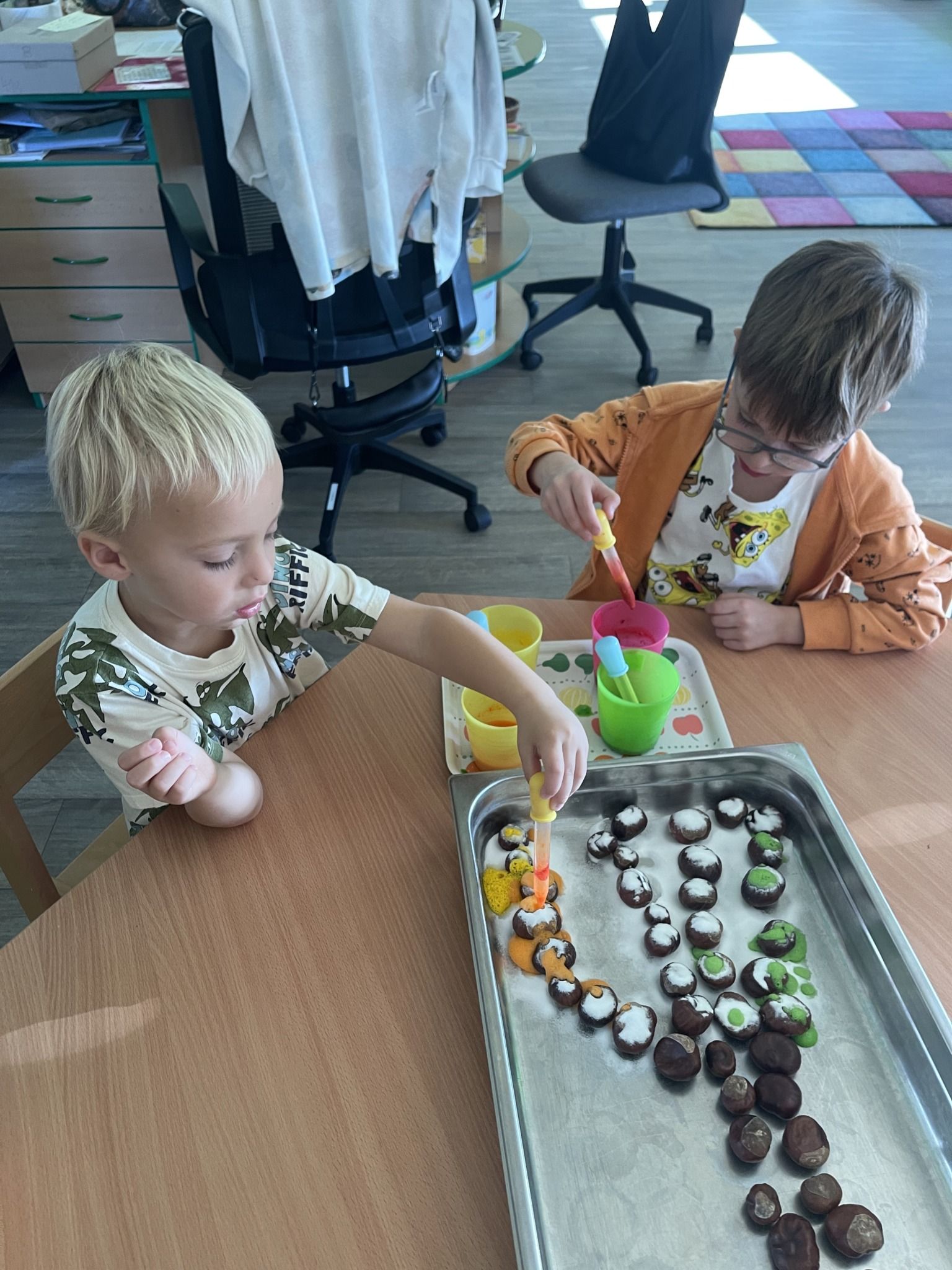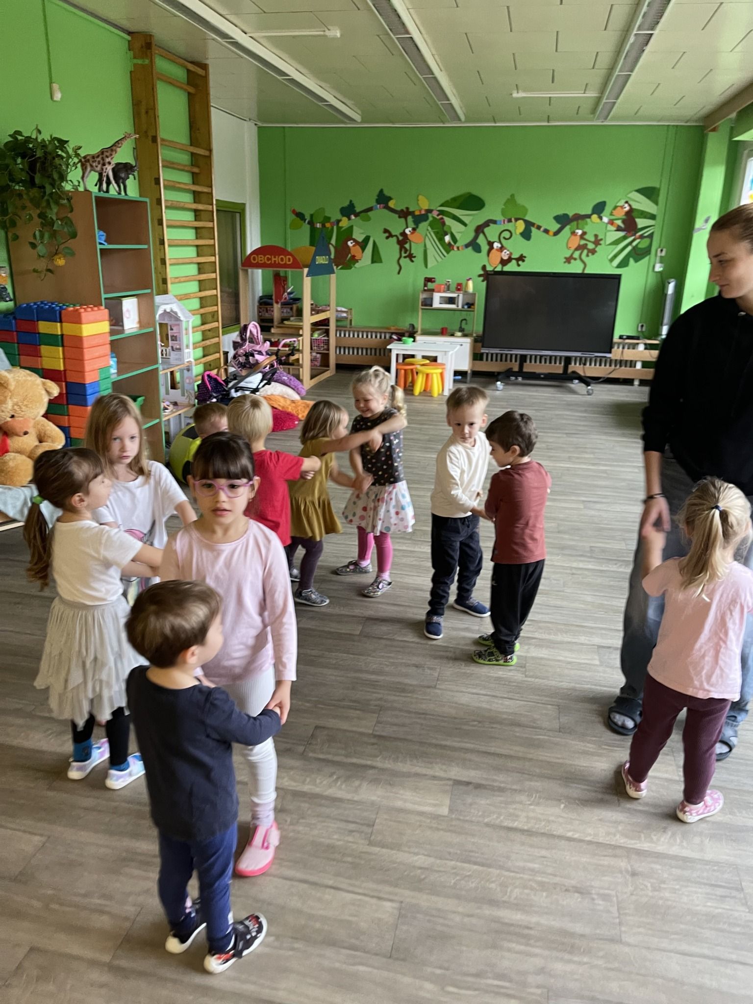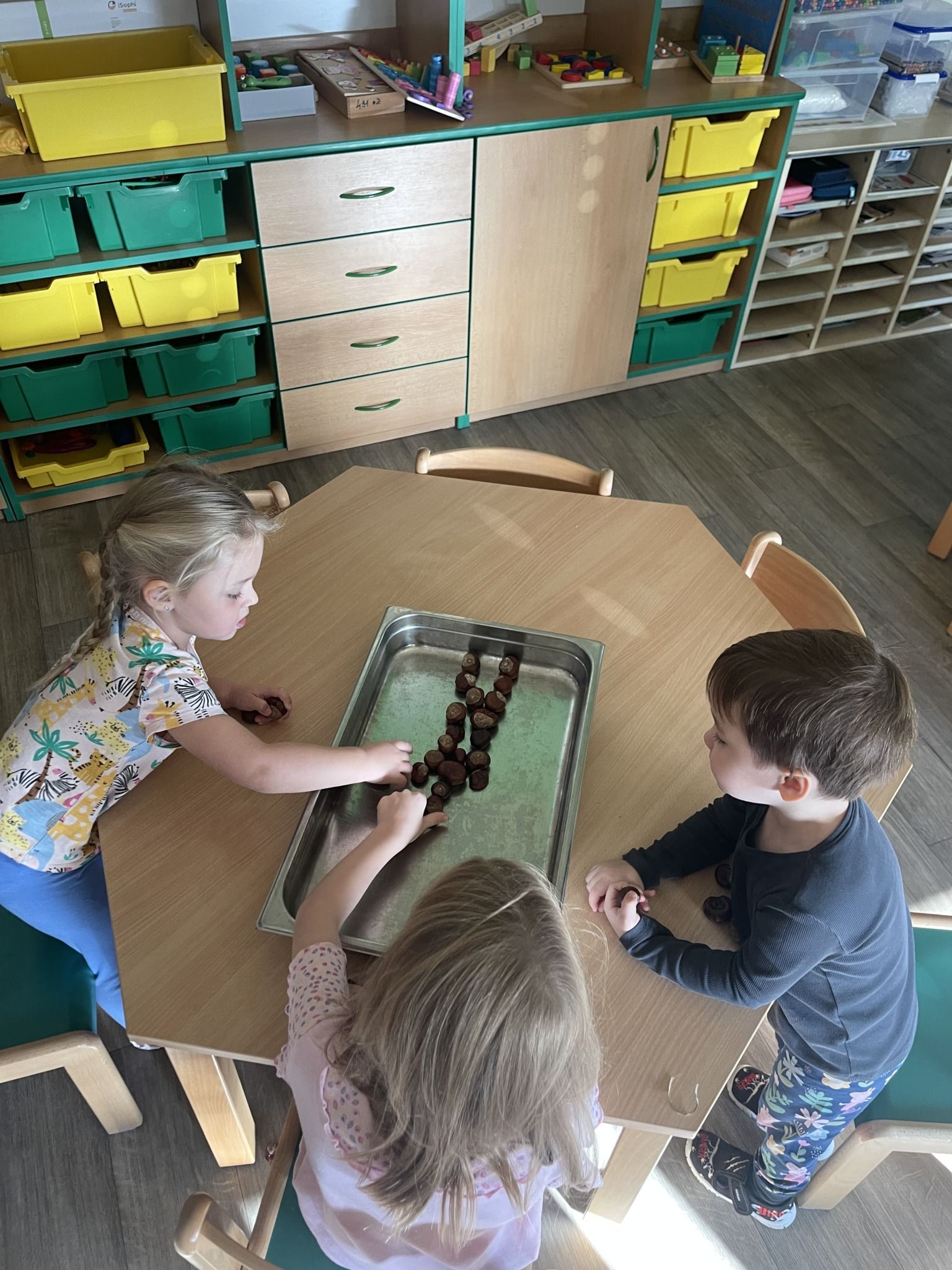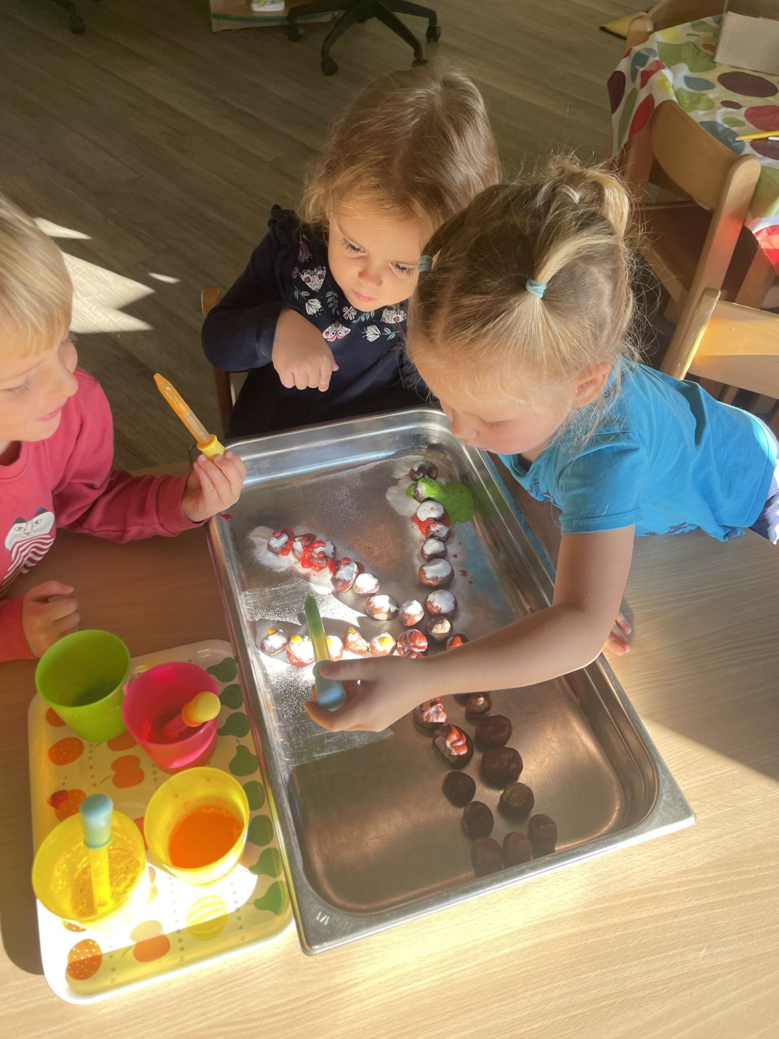 Celý týden jsme se věnovali přírodě, která je právě na podzim rozmanitá a barevná. Listí jsme tvořili různými technikami. Nezapomněli jsme ani na obyvatele, kteří žijí v lese. Oslavili jsme “Den stromů” pozorováním, pokusy a ve třídě nám na pár dní vyrostl krásný strom z dřevěné vláčkodráhy. Společně jsme zasadili několik žaludů, které když na jaře vyrostou zasadíme v lesoparku. Na výstavu dýni předškolní děti namalovaly dýni. V pátek jsme si užili pohádku ve školce.