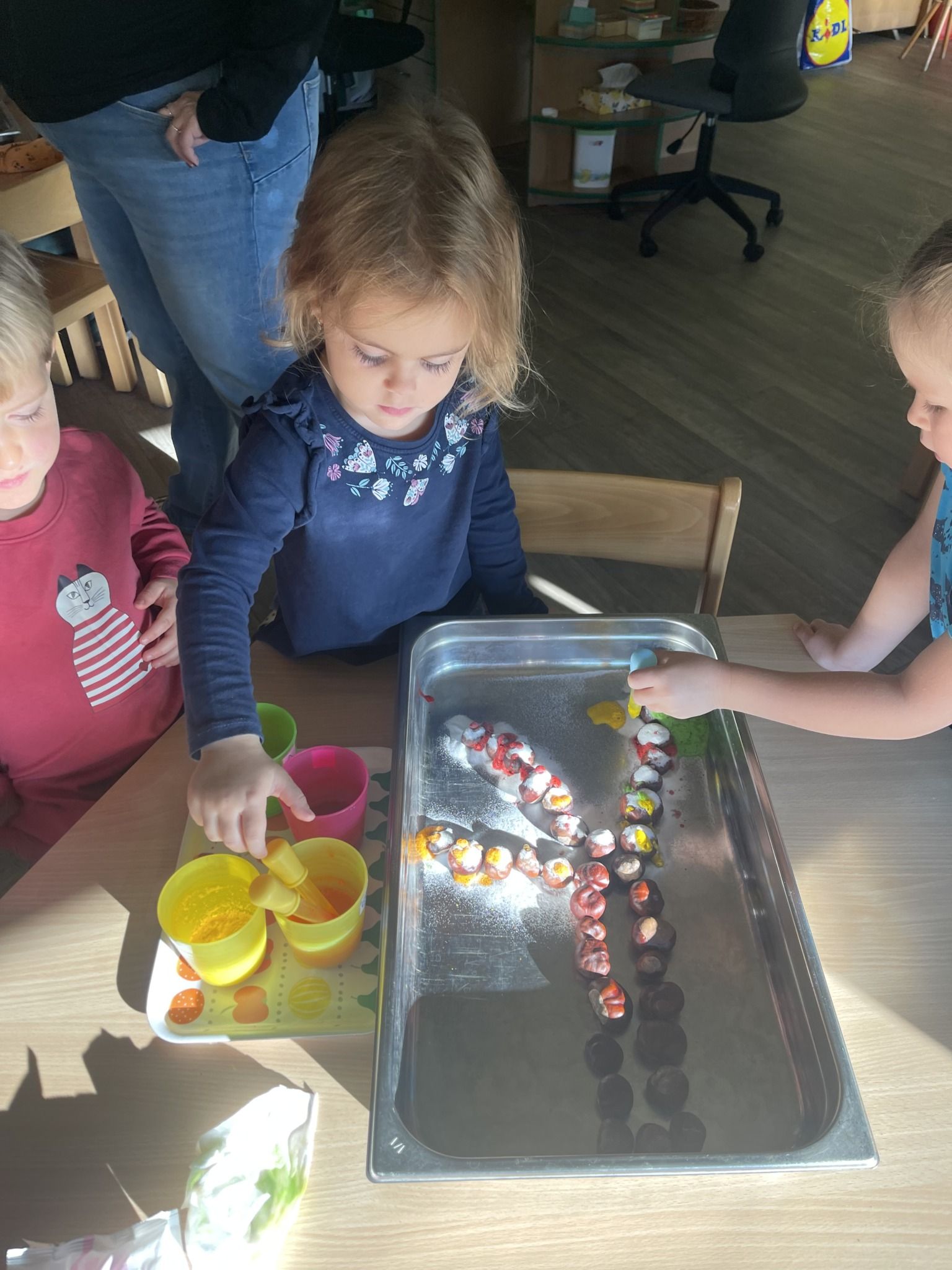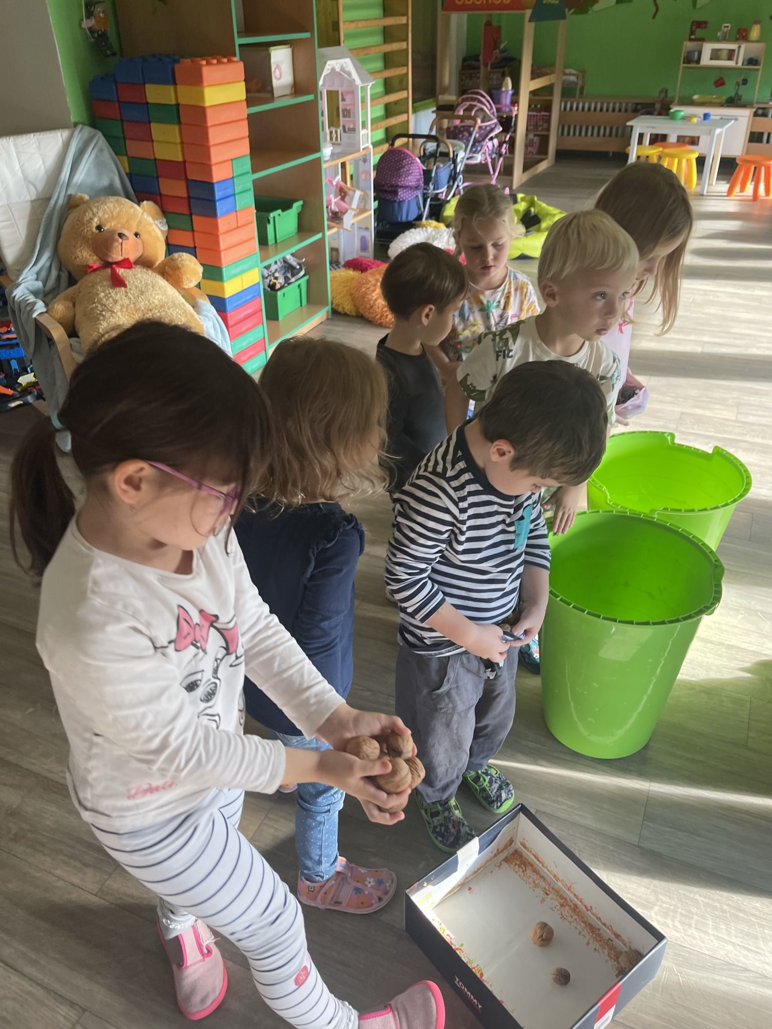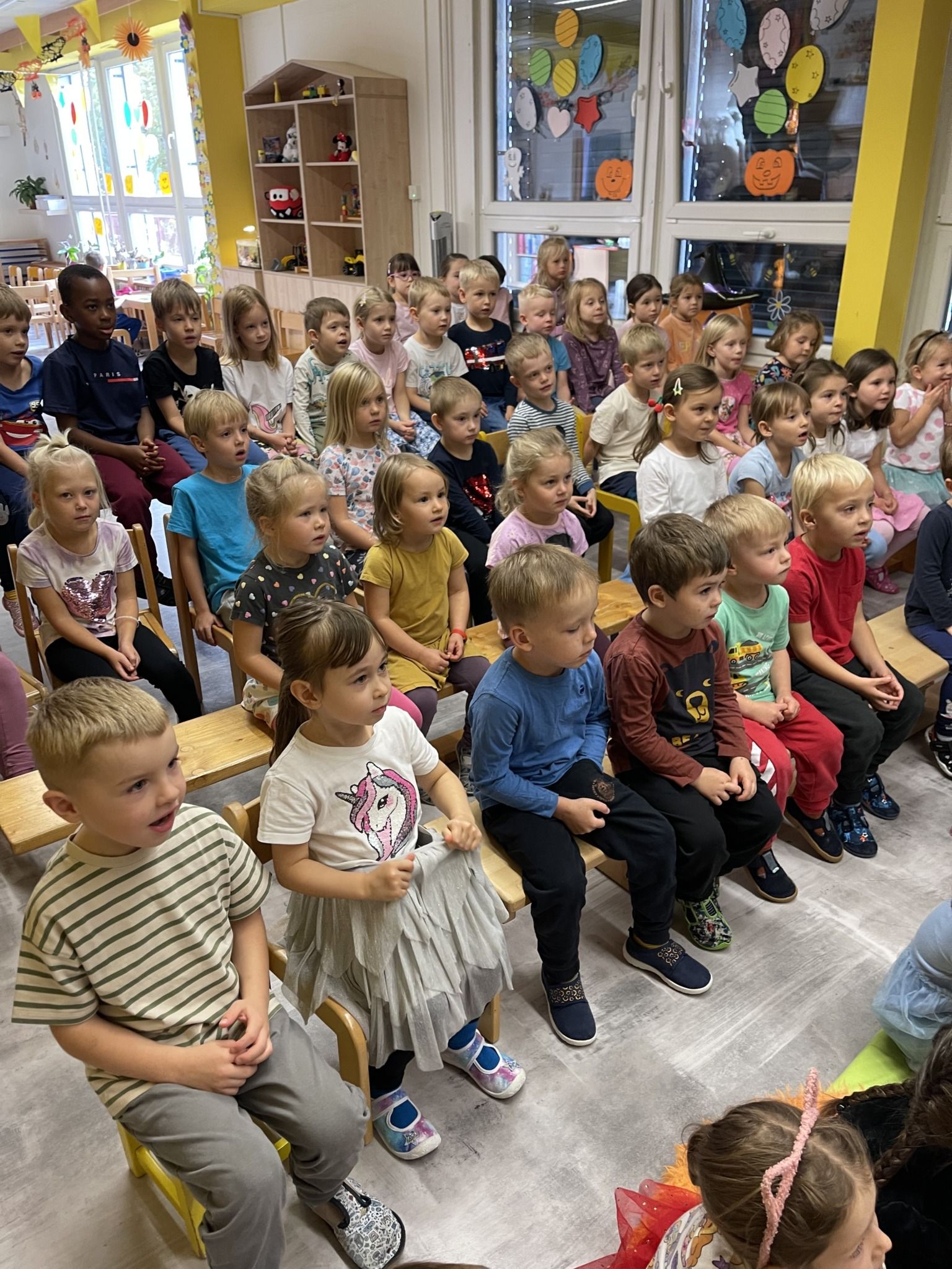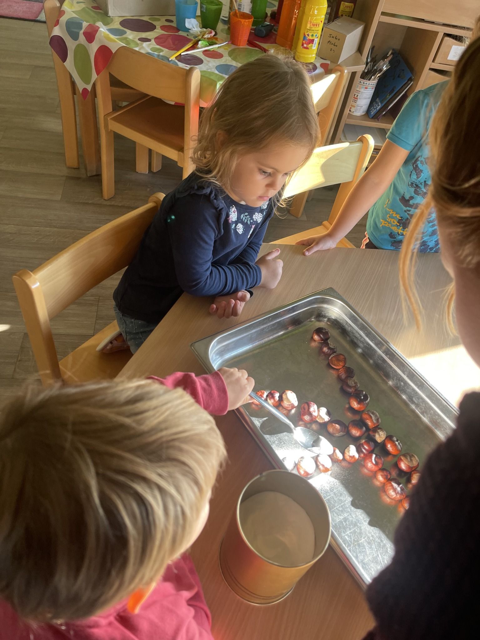 Celý týden jsme se věnovali přírodě, která je právě na podzim rozmanitá a barevná. Listí jsme tvořili různými technikami. Nezapomněli jsme ani na obyvatele, kteří žijí v lese. Oslavili jsme “Den stromů” pozorováním, pokusy a ve třídě nám na pár dní vyrostl krásný strom z dřevěné vláčkodráhy. Společně jsme zasadili několik žaludů, které když na jaře vyrostou zasadíme v lesoparku. Na výstavu dýni předškolní děti namalovaly dýni. V pátek jsme si užili pohádku ve školce.
