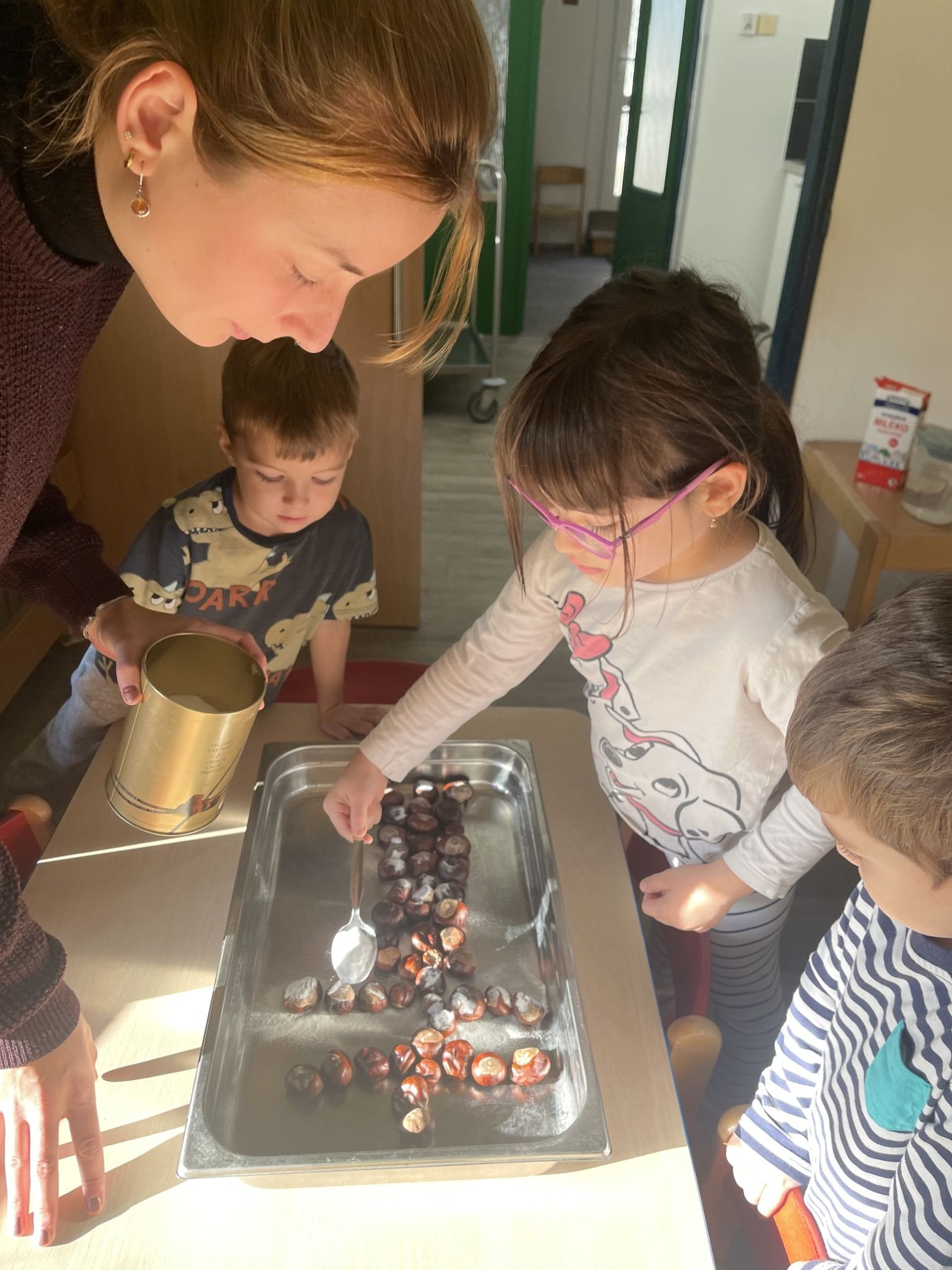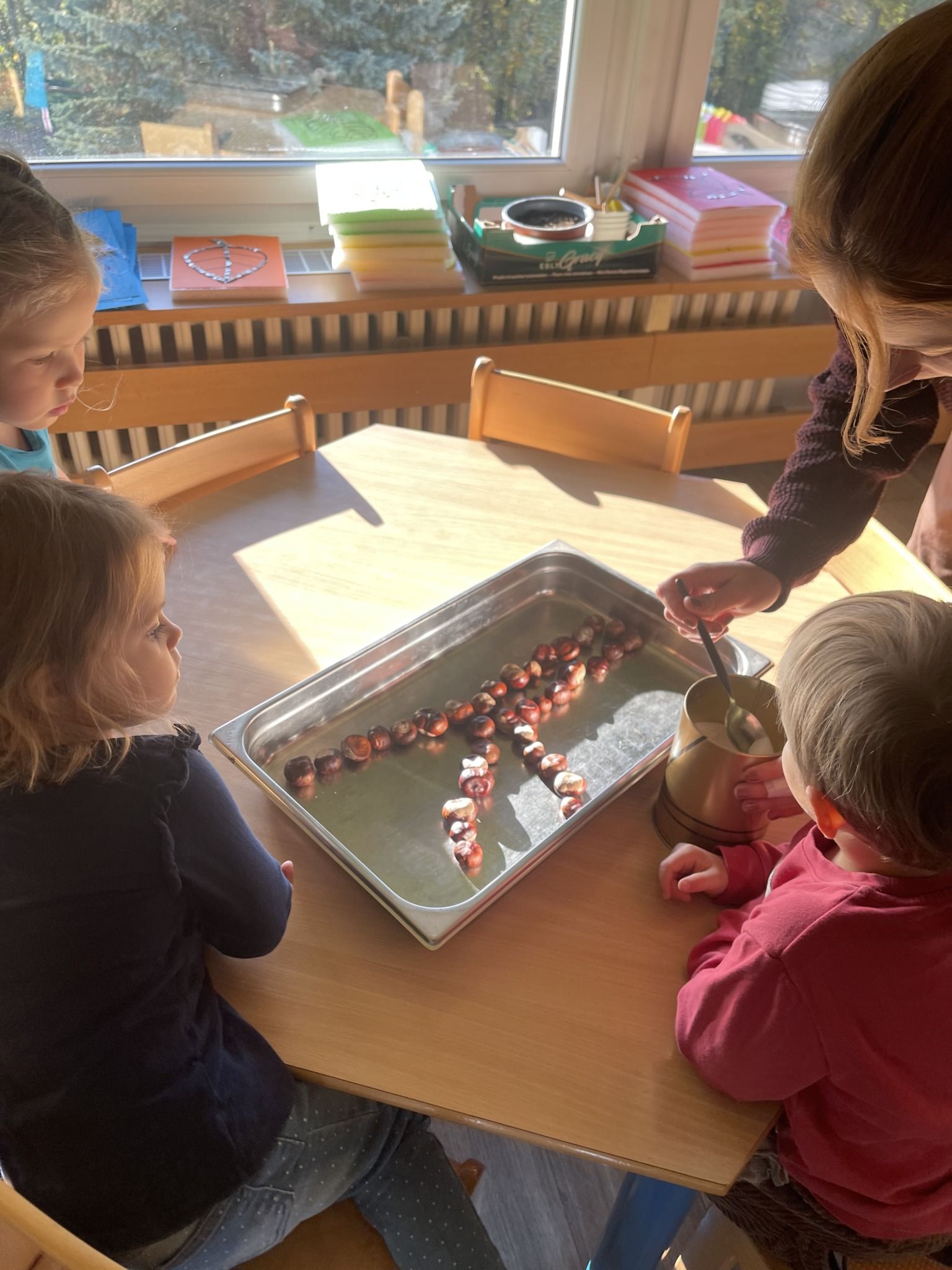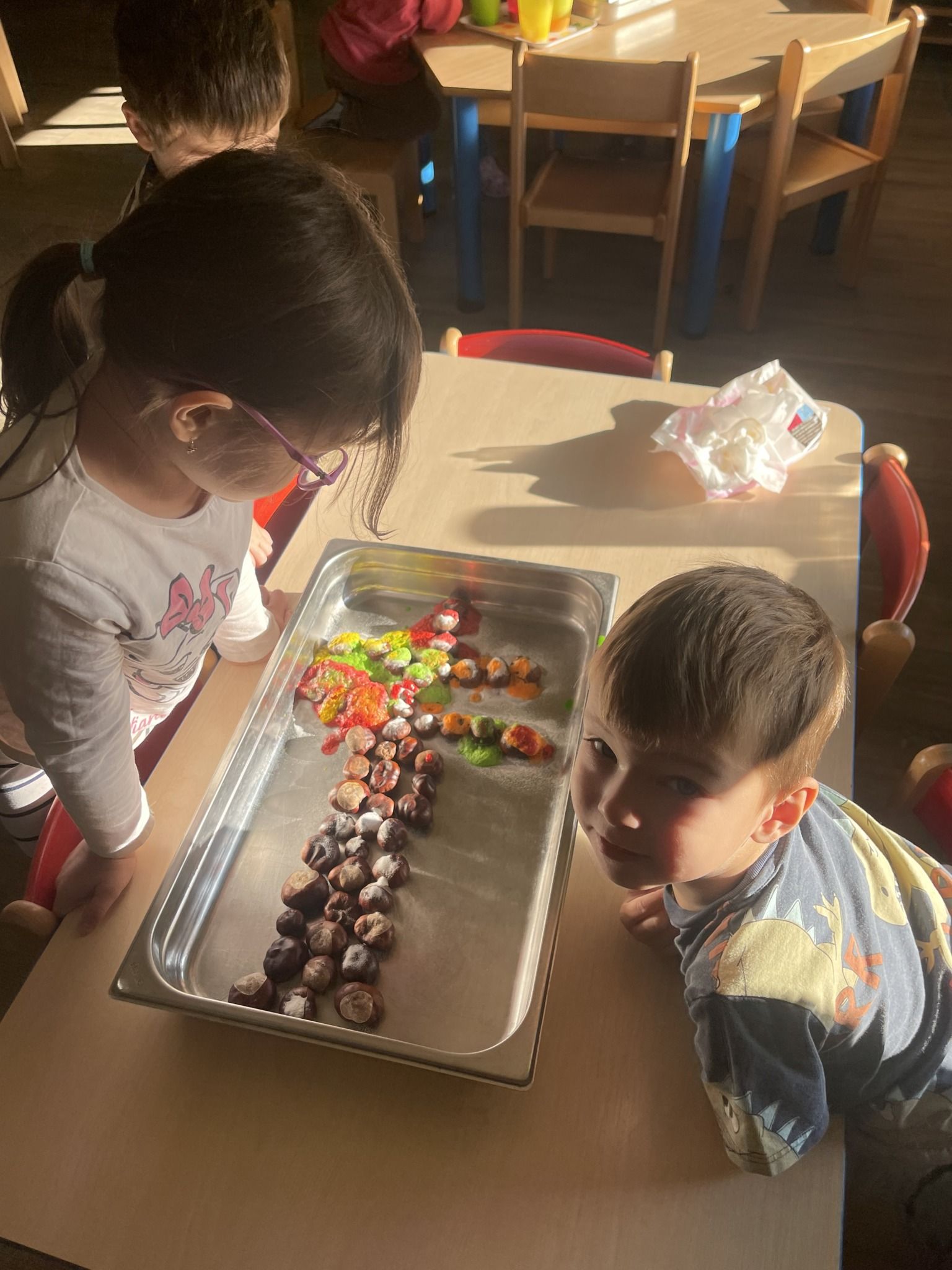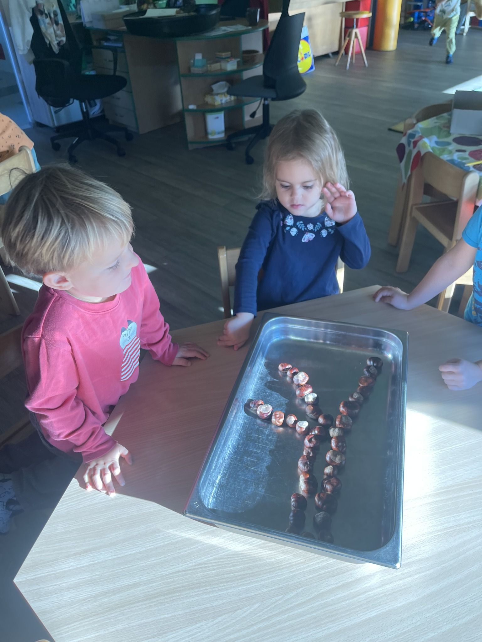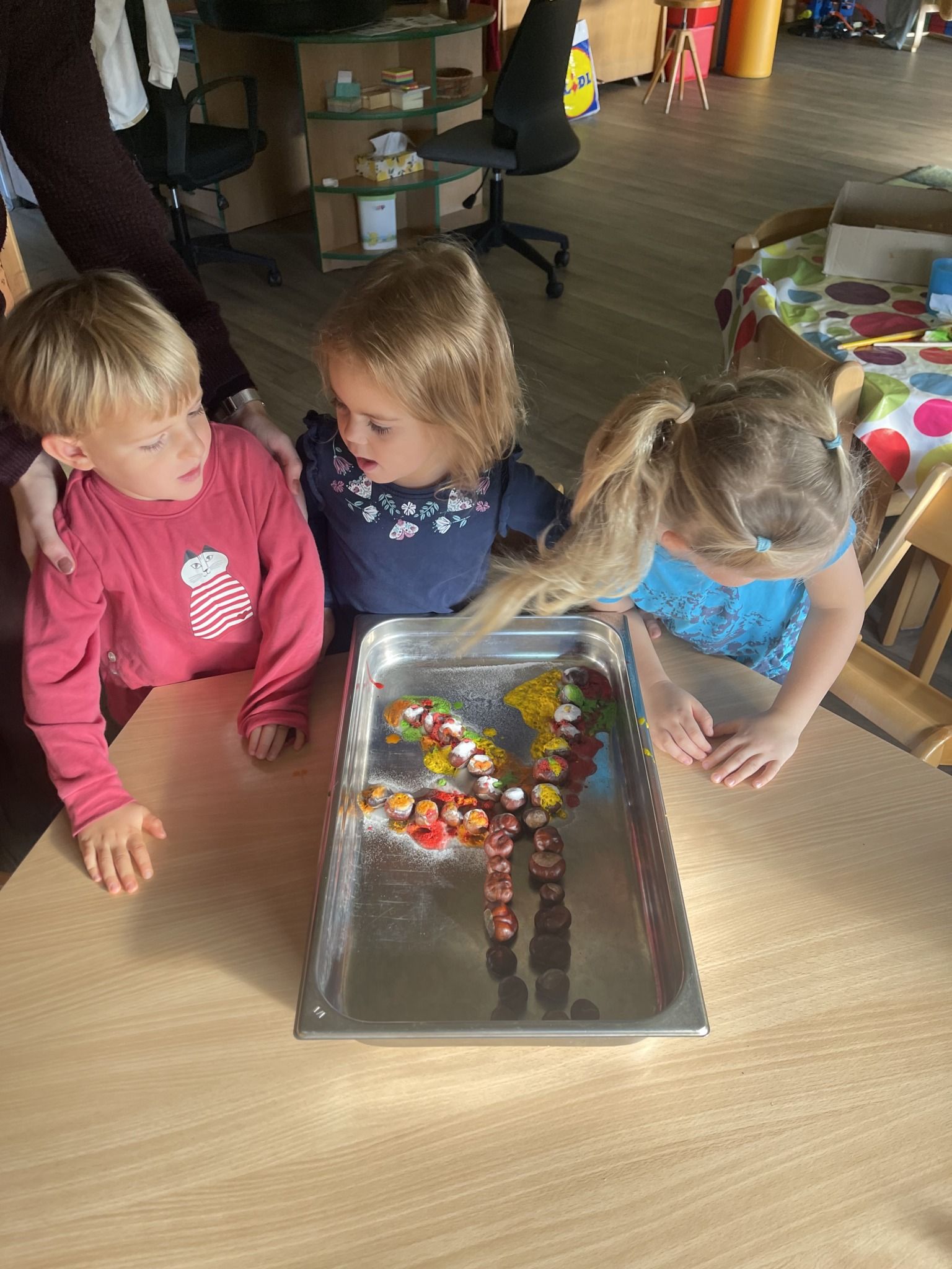 Celý týden jsme se věnovali přírodě, která je právě na podzim rozmanitá a barevná. Listí jsme tvořili různými technikami. Nezapomněli jsme ani na obyvatele, kteří žijí v lese. Oslavili jsme “Den stromů” pozorováním, pokusy a ve třídě nám na pár dní vyrostl krásný strom z dřevěné vláčkodráhy. Společně jsme zasadili několik žaludů, které když na jaře vyrostou zasadíme v lesoparku. Na výstavu dýni předškolní děti namalovaly dýni. V pátek jsme si užili pohádku ve školce.