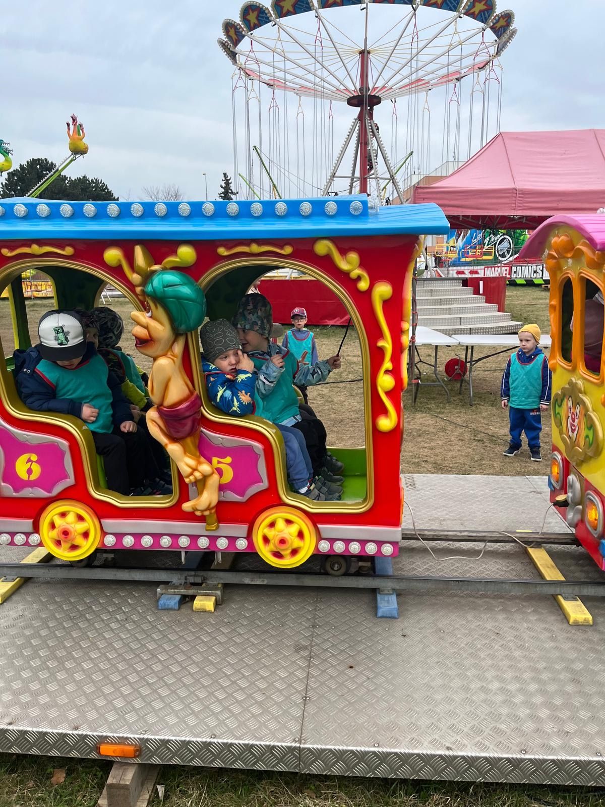 POUŤZ velikonočních příprav jsme si odskočili na pouť. Děti si užily nejen skákacího hradu, ale i řetízkového kolotoče a vláčku.