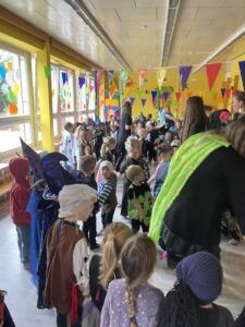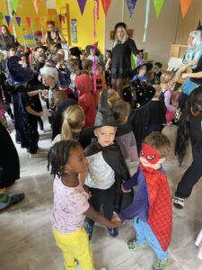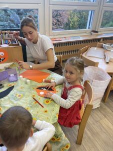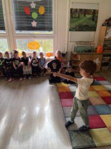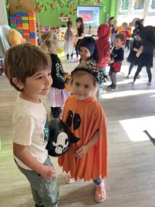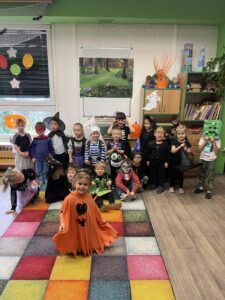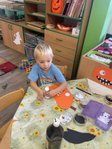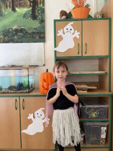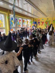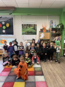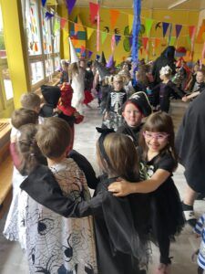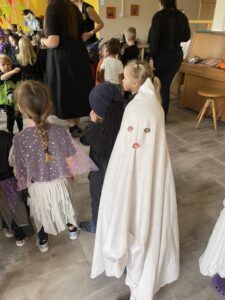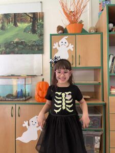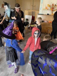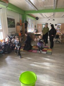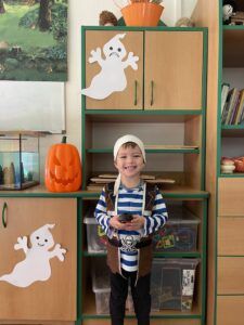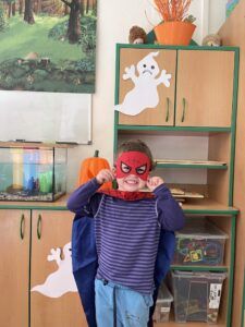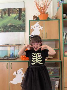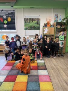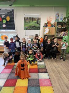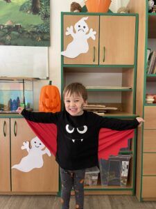 Týden, který byl plný zábavy, tvoření a strašení. Děti si v pondělí připravily sušenky na oslavu a výzdobu na strašidelný rej. V úterý se od rána v zelené tříd scházela strašidla, bubáci a jiné masky, společně jsme si zazpívali, zatančili a plnili disciplíny. Společně s ostatními třídami jsme se sešli ve žluté třídě a společně si zatančili. Odpoledne se šlo na lampiónový průvod a do konce týdne jsme společně tvořili.