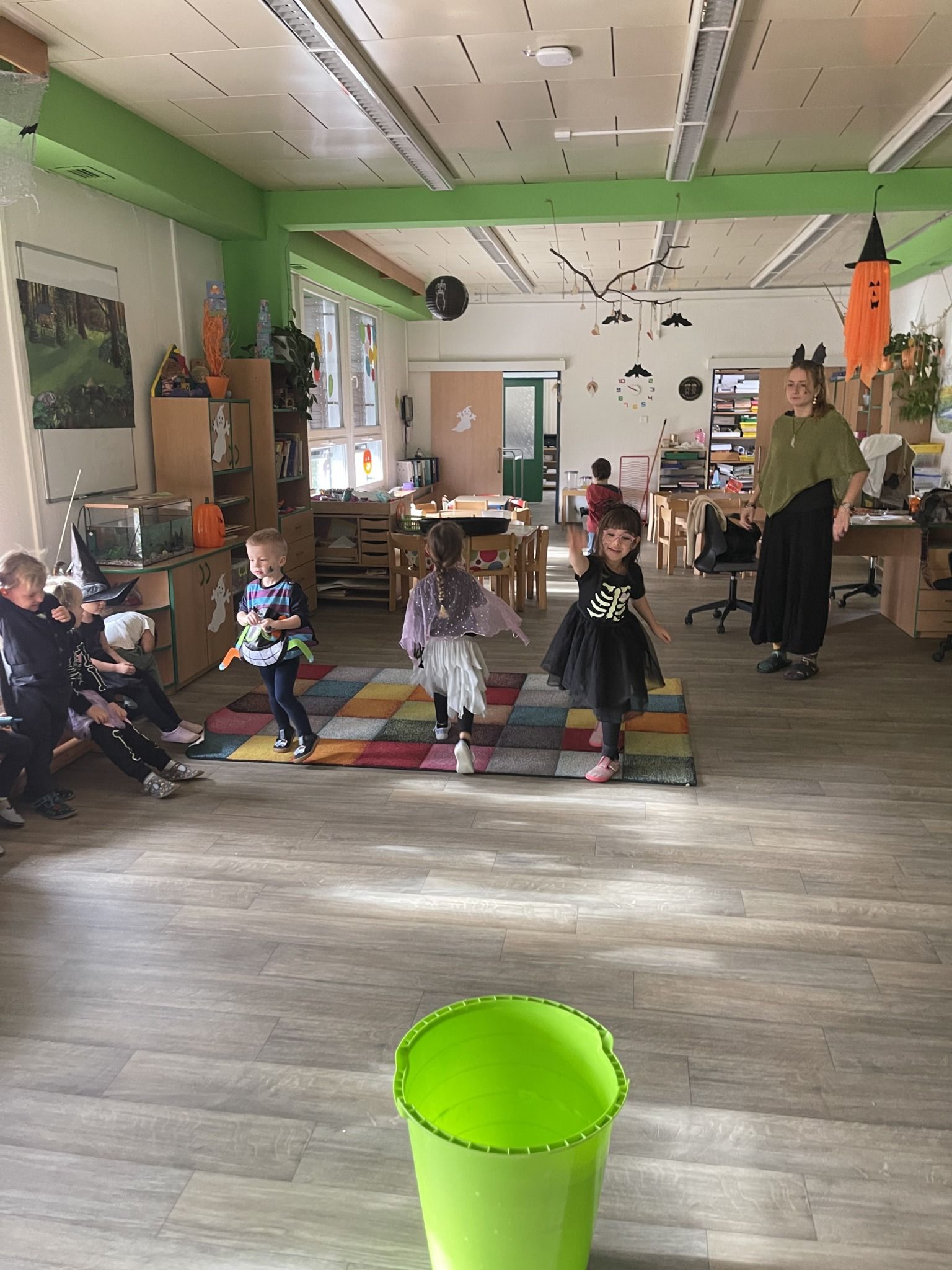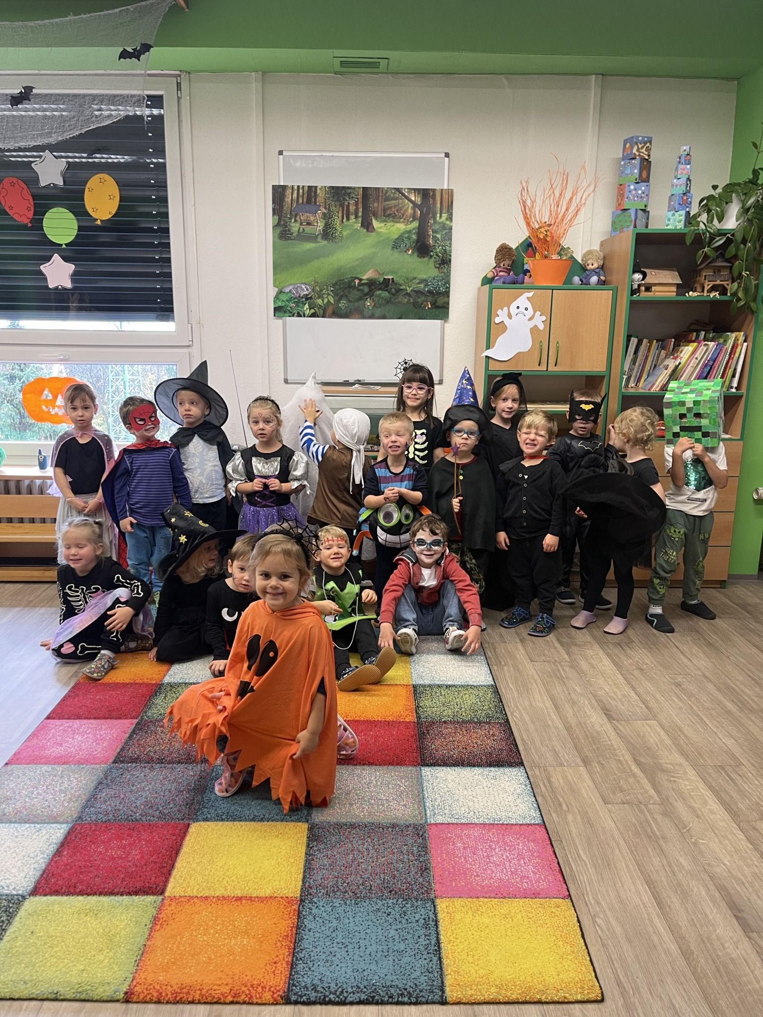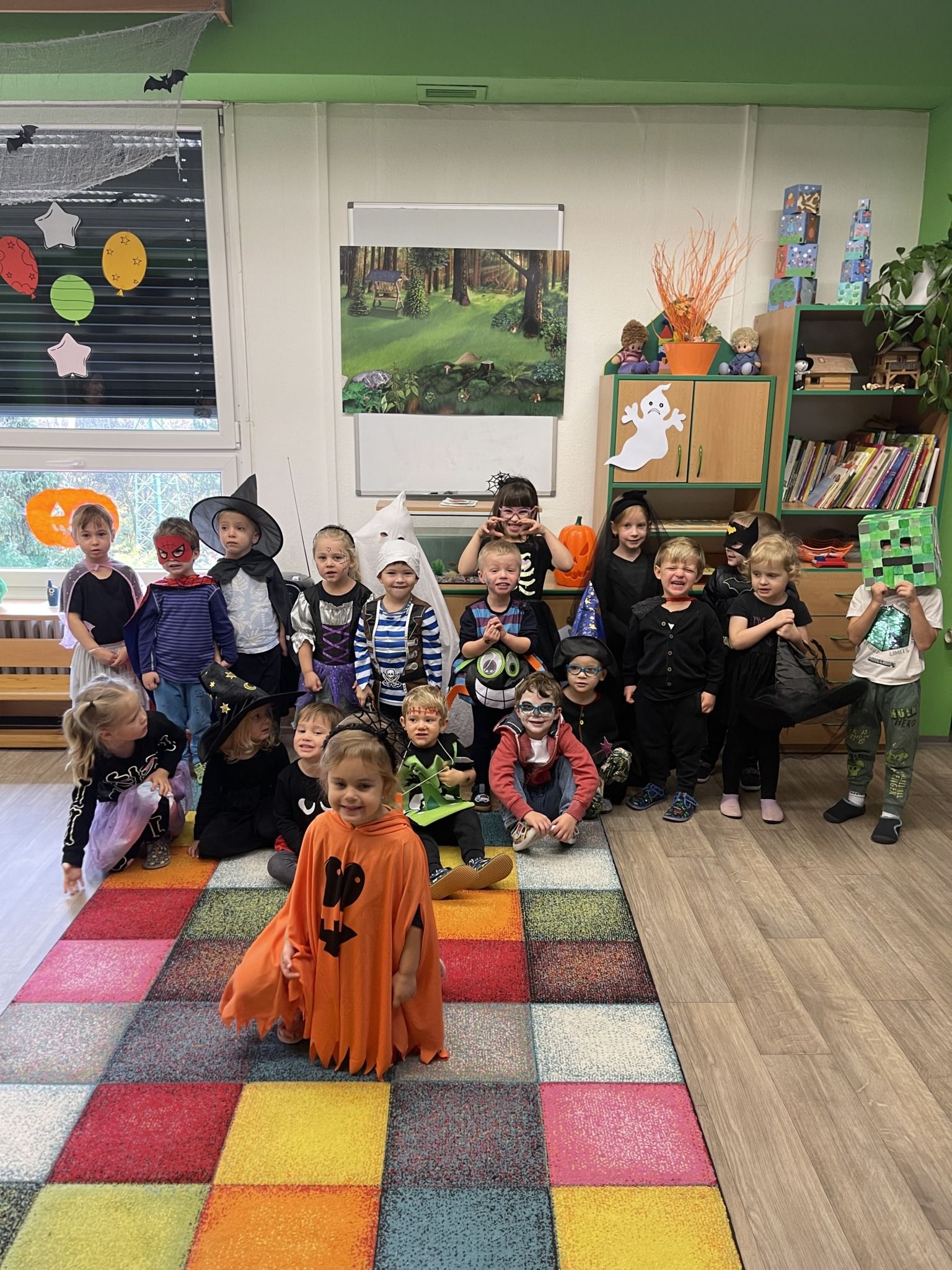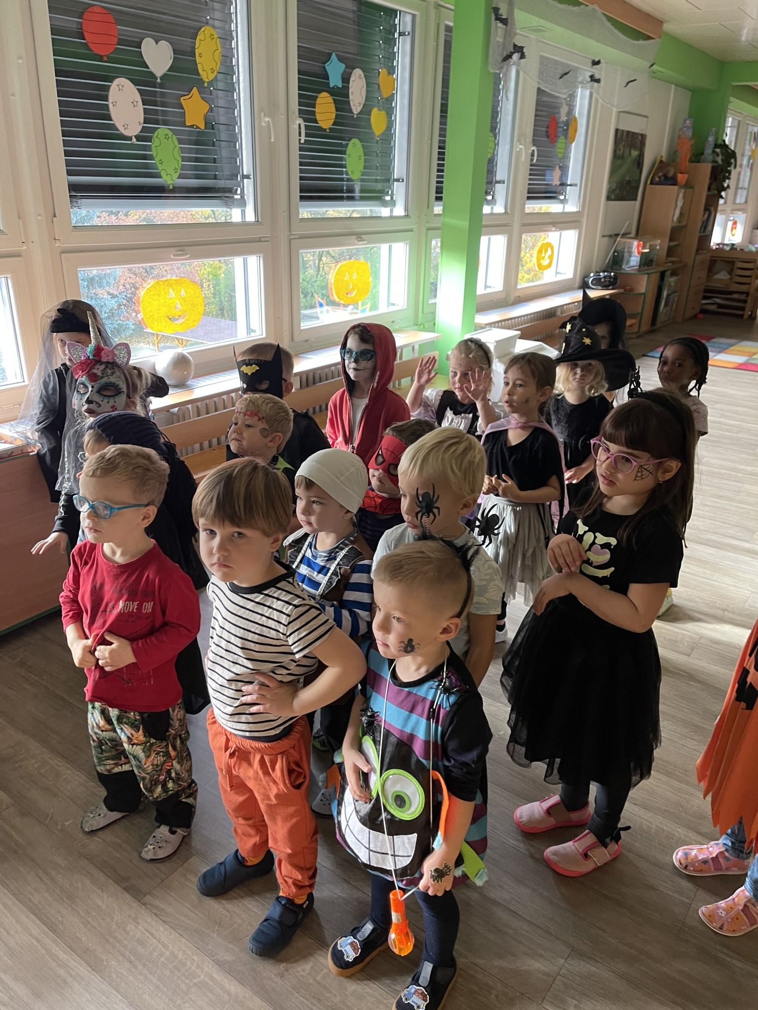 Týden, který byl plný zábavy, tvoření a strašení. Děti si v pondělí připravily sušenky na oslavu a výzdobu na strašidelný rej. V úterý se od rána v zelené tříd scházela strašidla, bubáci a jiné masky, společně jsme si zazpívali, zatančili a plnili disciplíny. Společně s ostatními třídami jsme se sešli ve žluté třídě a společně si zatančili. Odpoledne se šlo na lampiónový průvod a do konce týdne jsme společně tvořili.