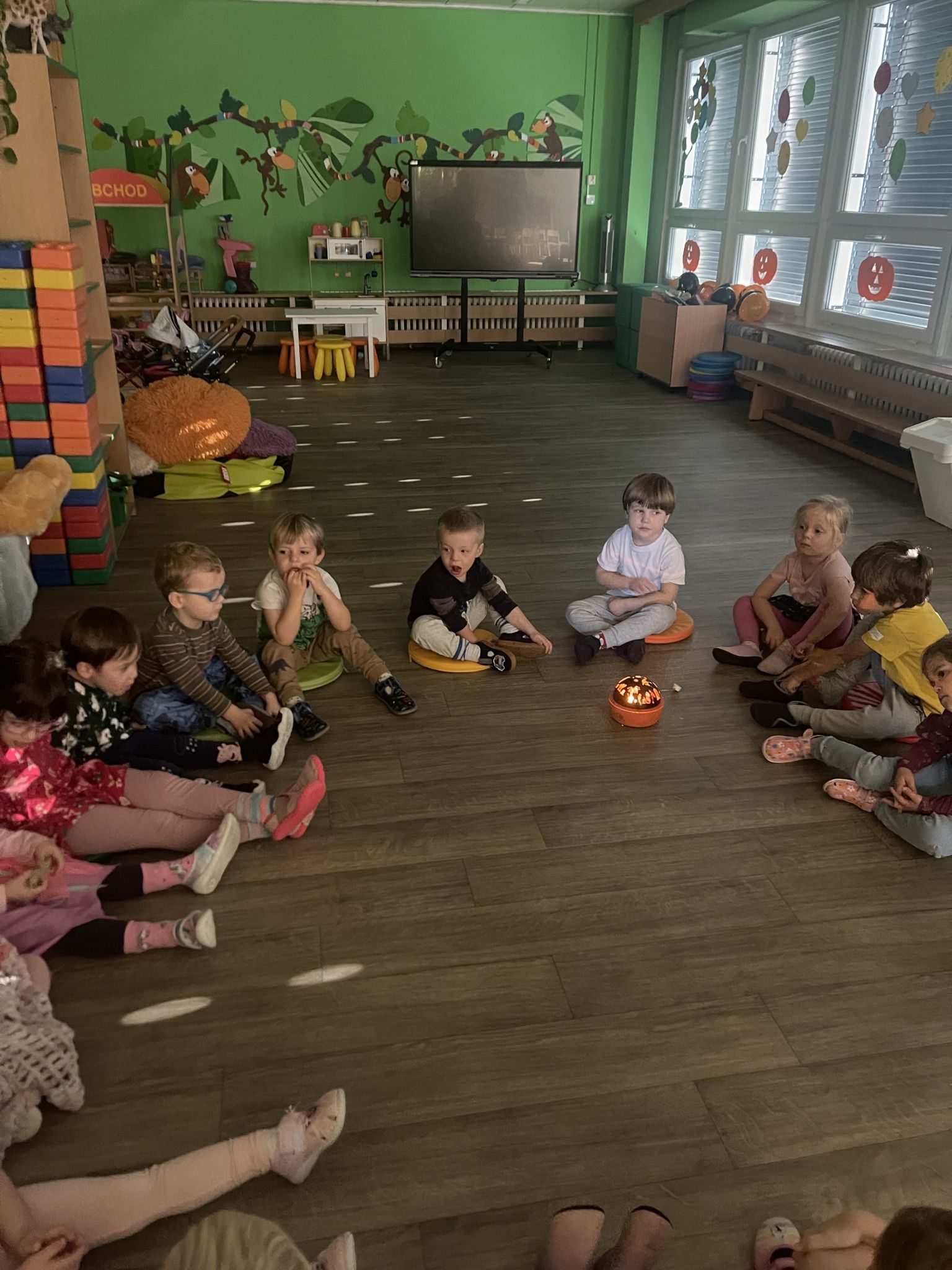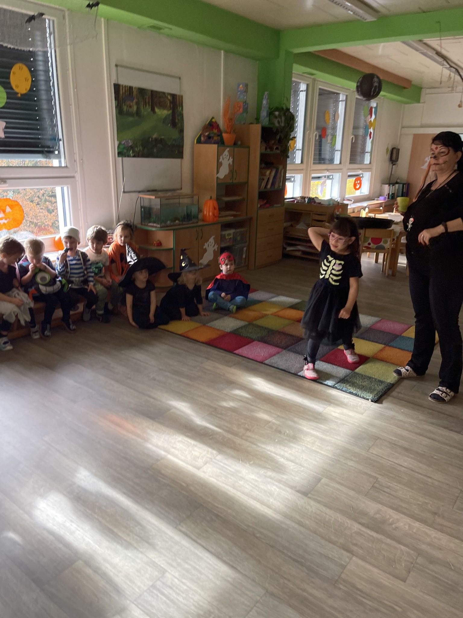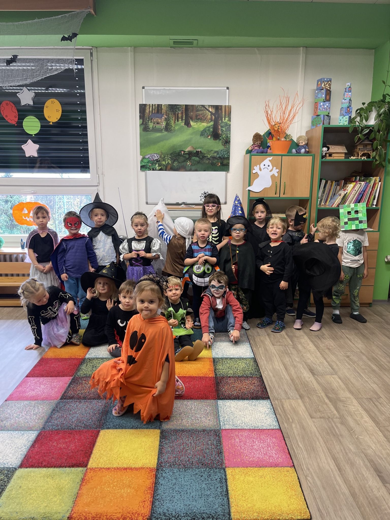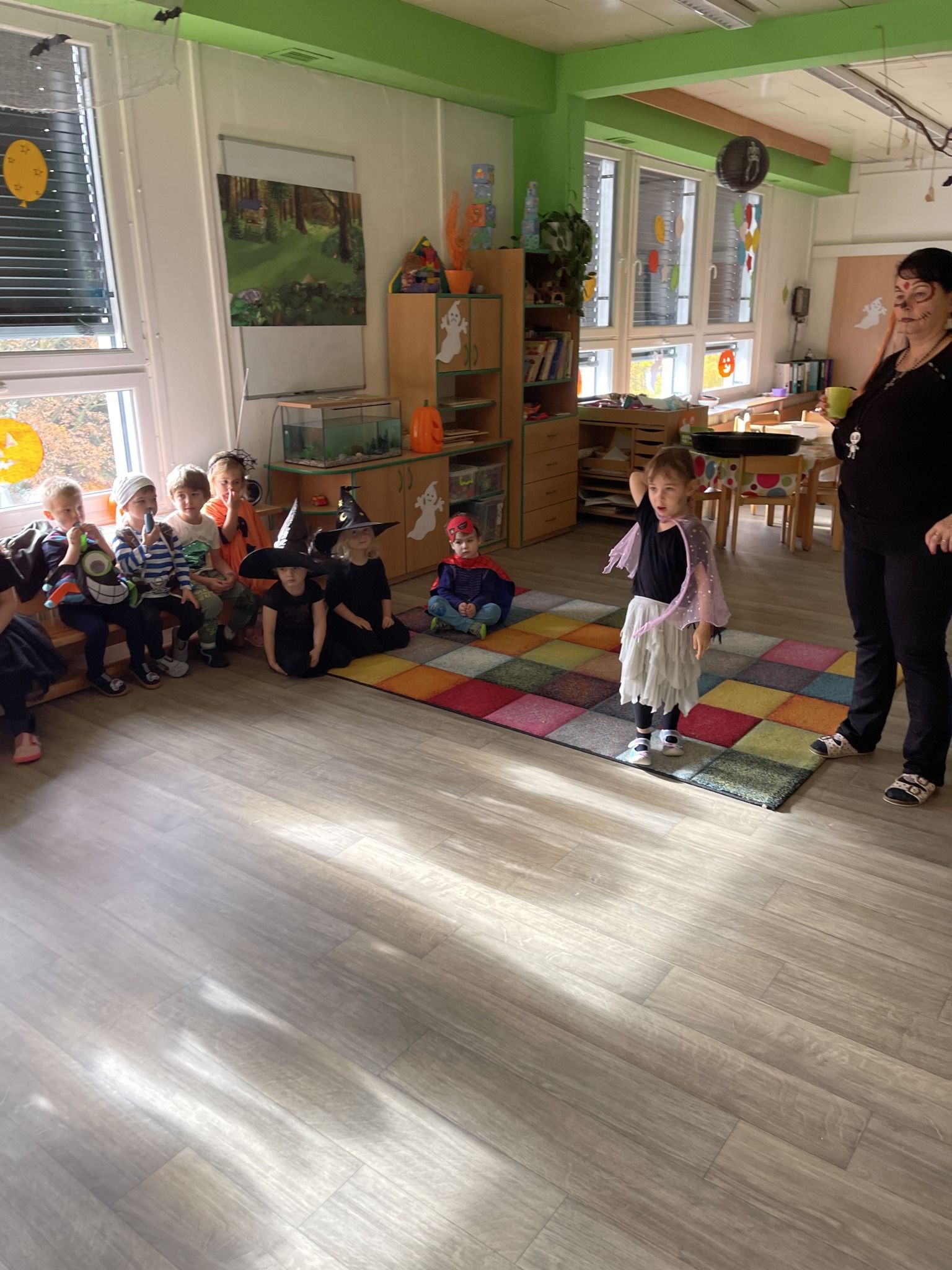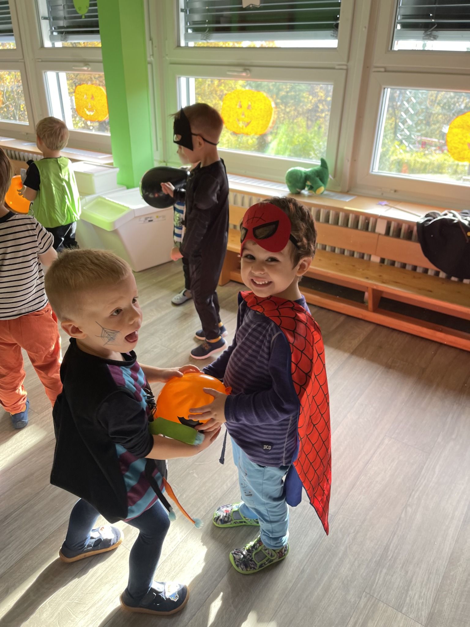 Týden, který byl plný zábavy, tvoření a strašení. Děti si v pondělí připravily sušenky na oslavu a výzdobu na strašidelný rej. V úterý se od rána v zelené tříd scházela strašidla, bubáci a jiné masky, společně jsme si zazpívali, zatančili a plnili disciplíny. Společně s ostatními třídami jsme se sešli ve žluté třídě a společně si zatančili. Odpoledne se šlo na lampiónový průvod a do konce týdne jsme společně tvořili.