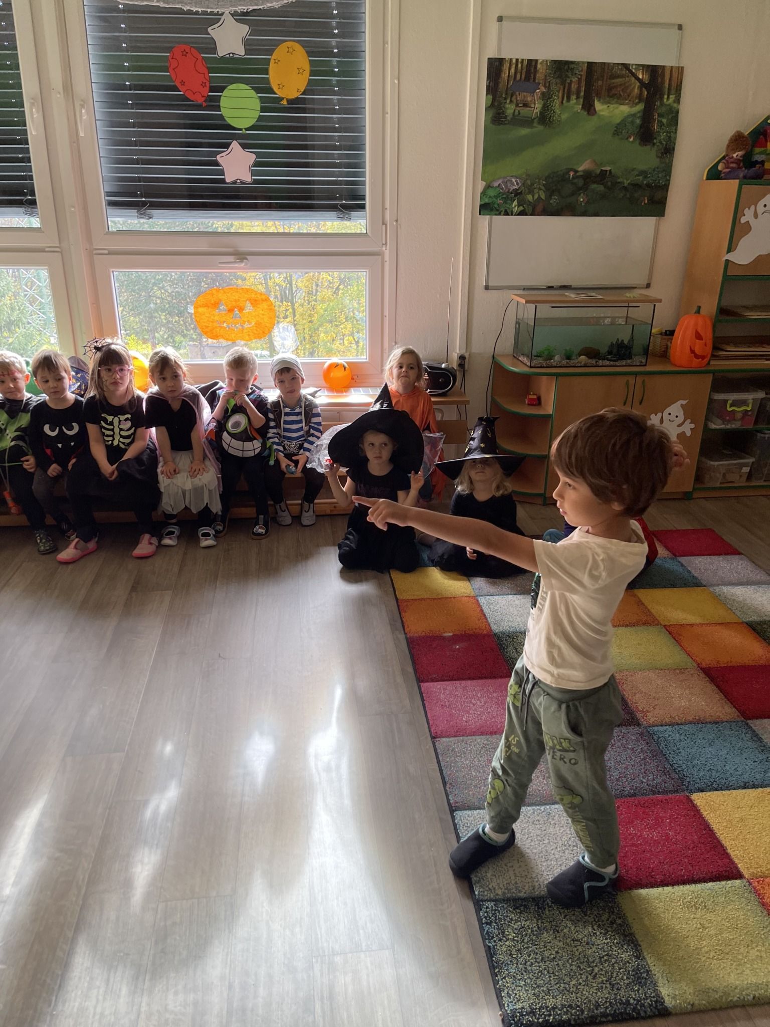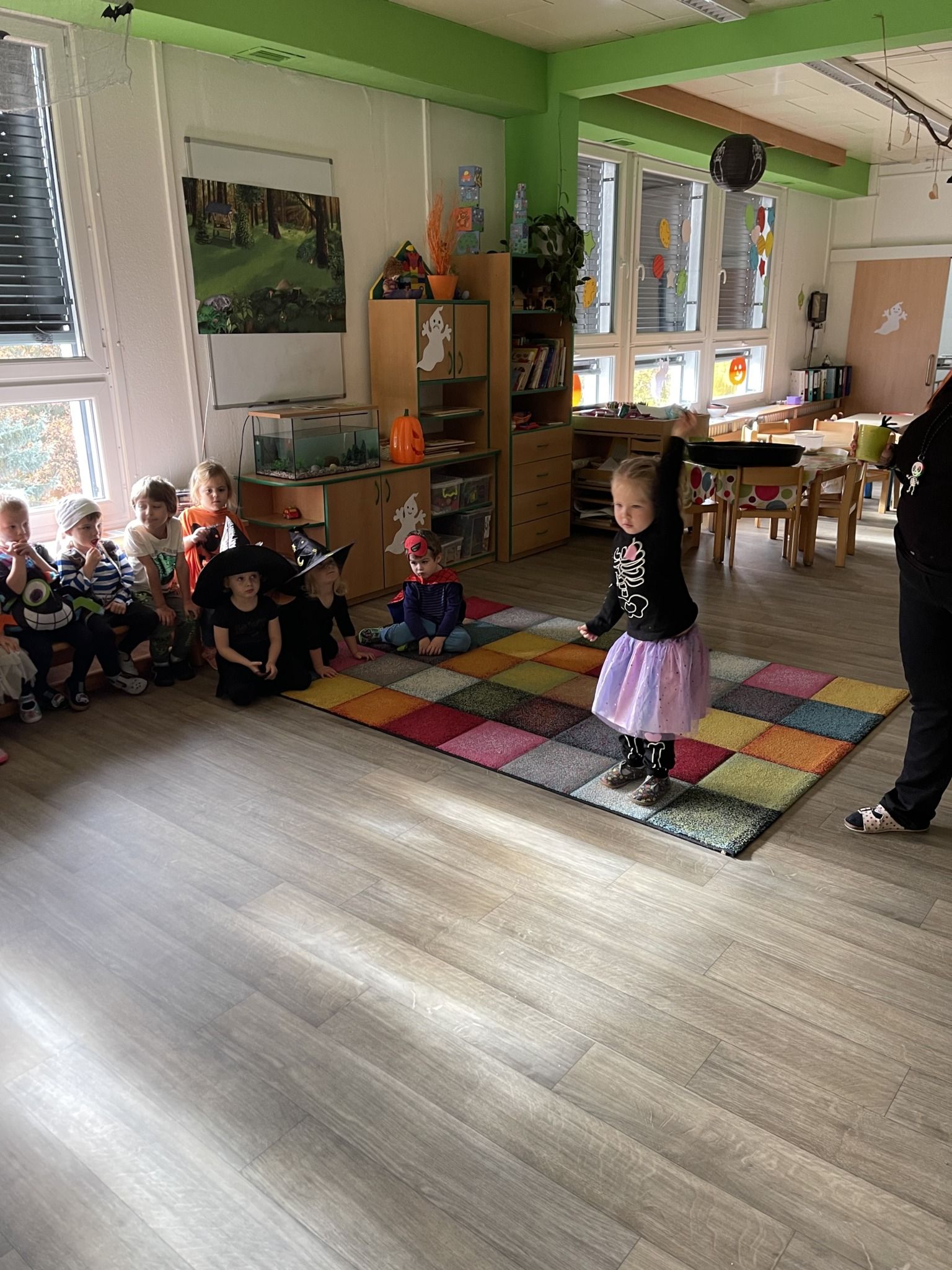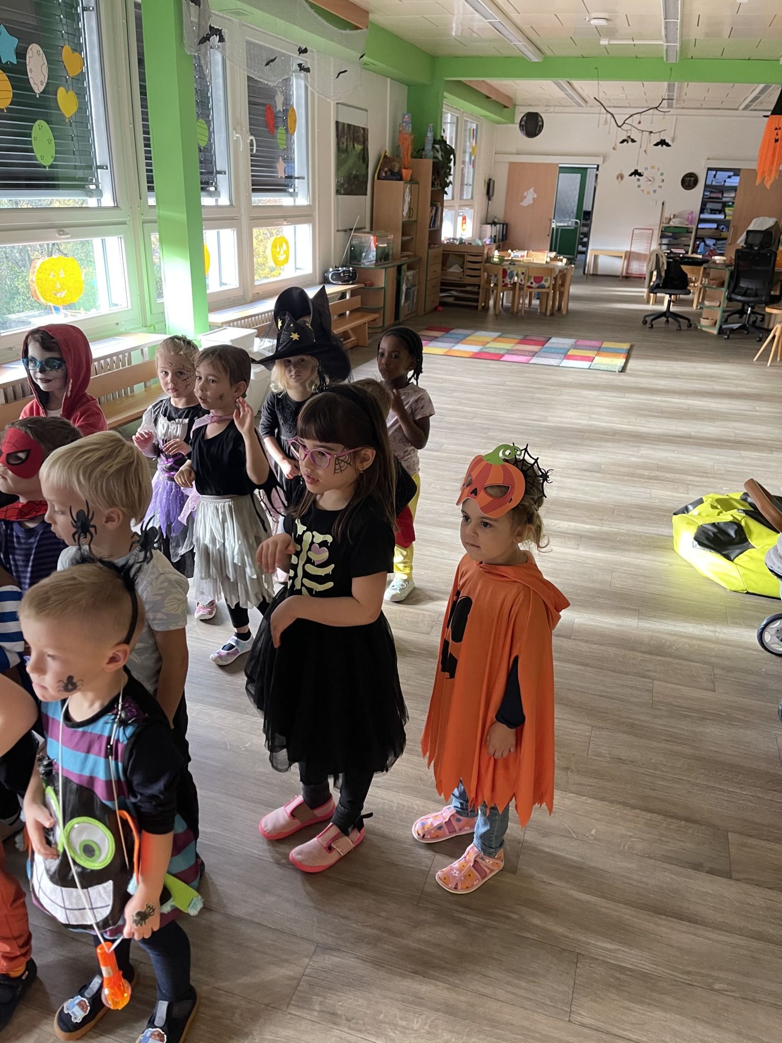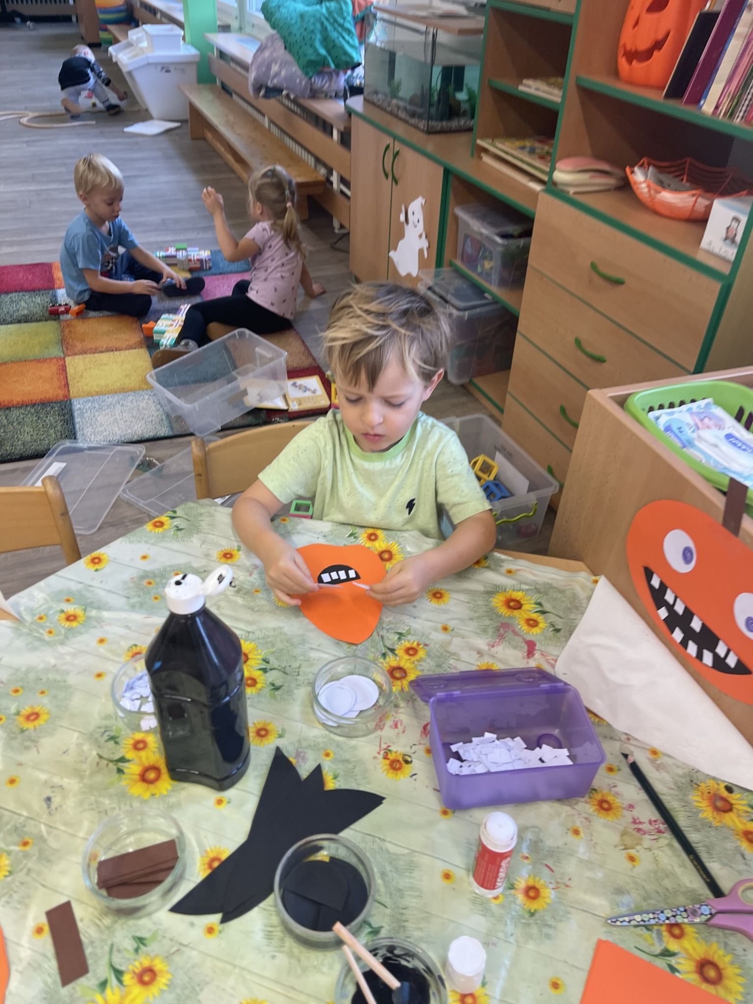 Týden, který byl plný zábavy, tvoření a strašení. Děti si v pondělí připravily sušenky na oslavu a výzdobu na strašidelný rej. V úterý se od rána v zelené tříd scházela strašidla, bubáci a jiné masky, společně jsme si zazpívali, zatančili a plnili disciplíny. Společně s ostatními třídami jsme se sešli ve žluté třídě a společně si zatančili. Odpoledne se šlo na lampiónový průvod a do konce týdne jsme společně tvořili.