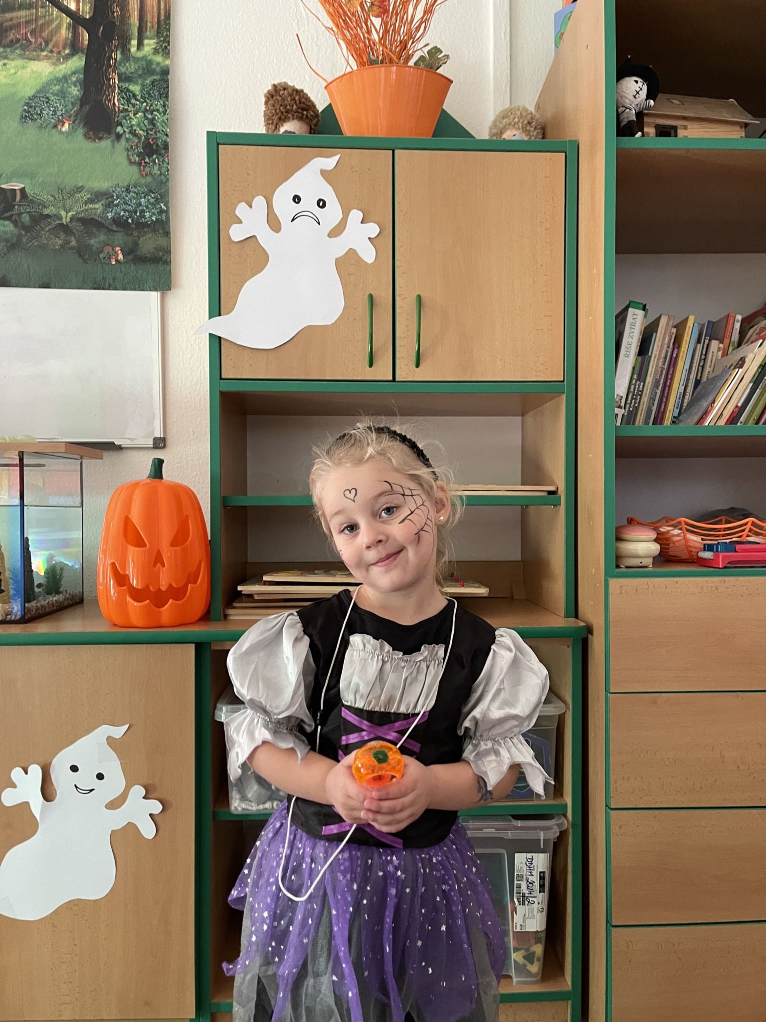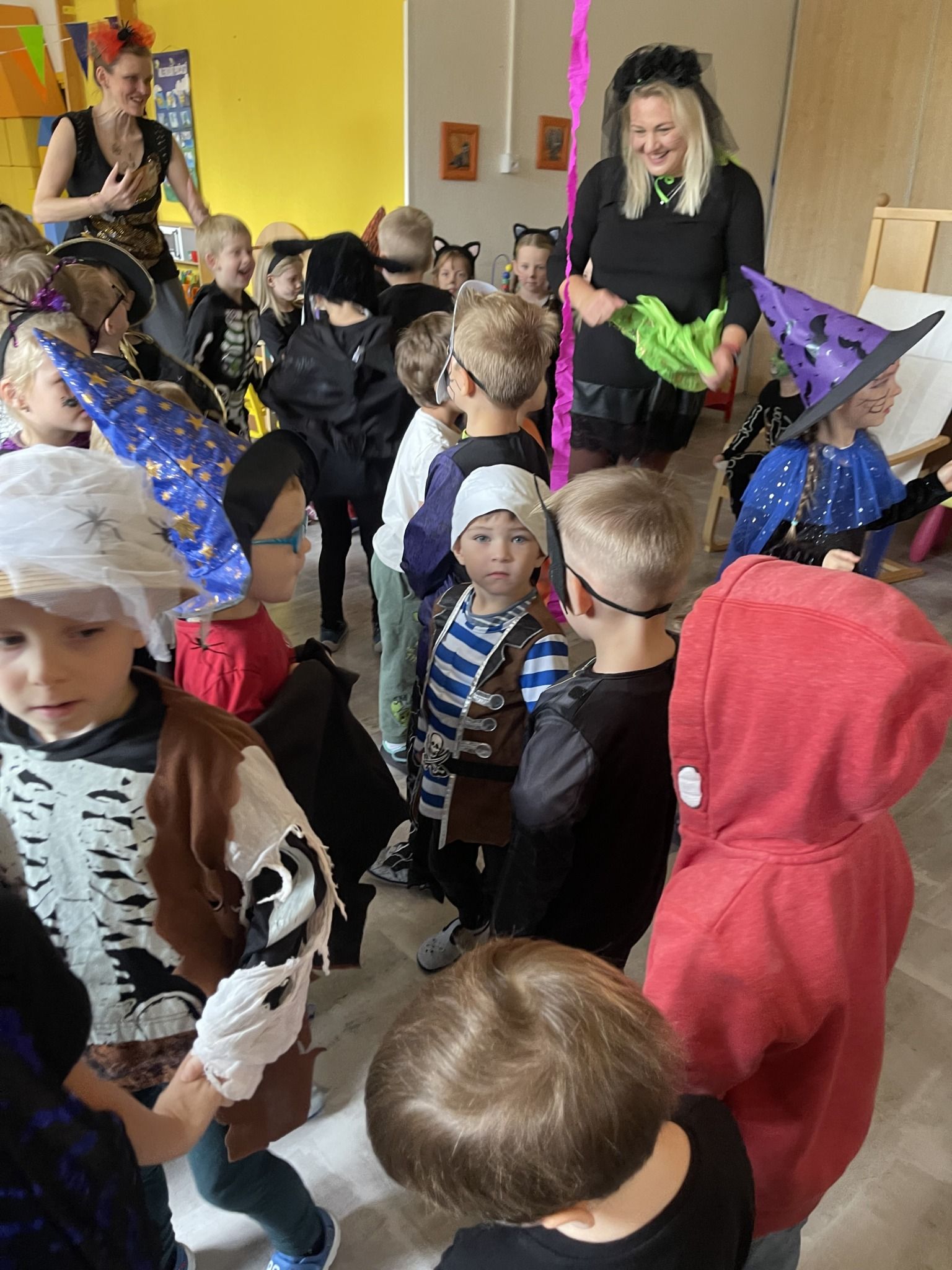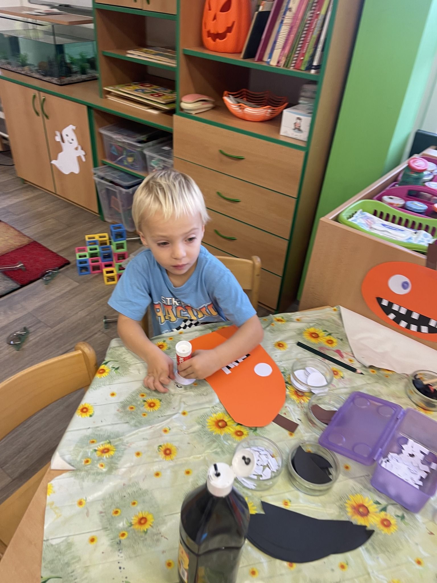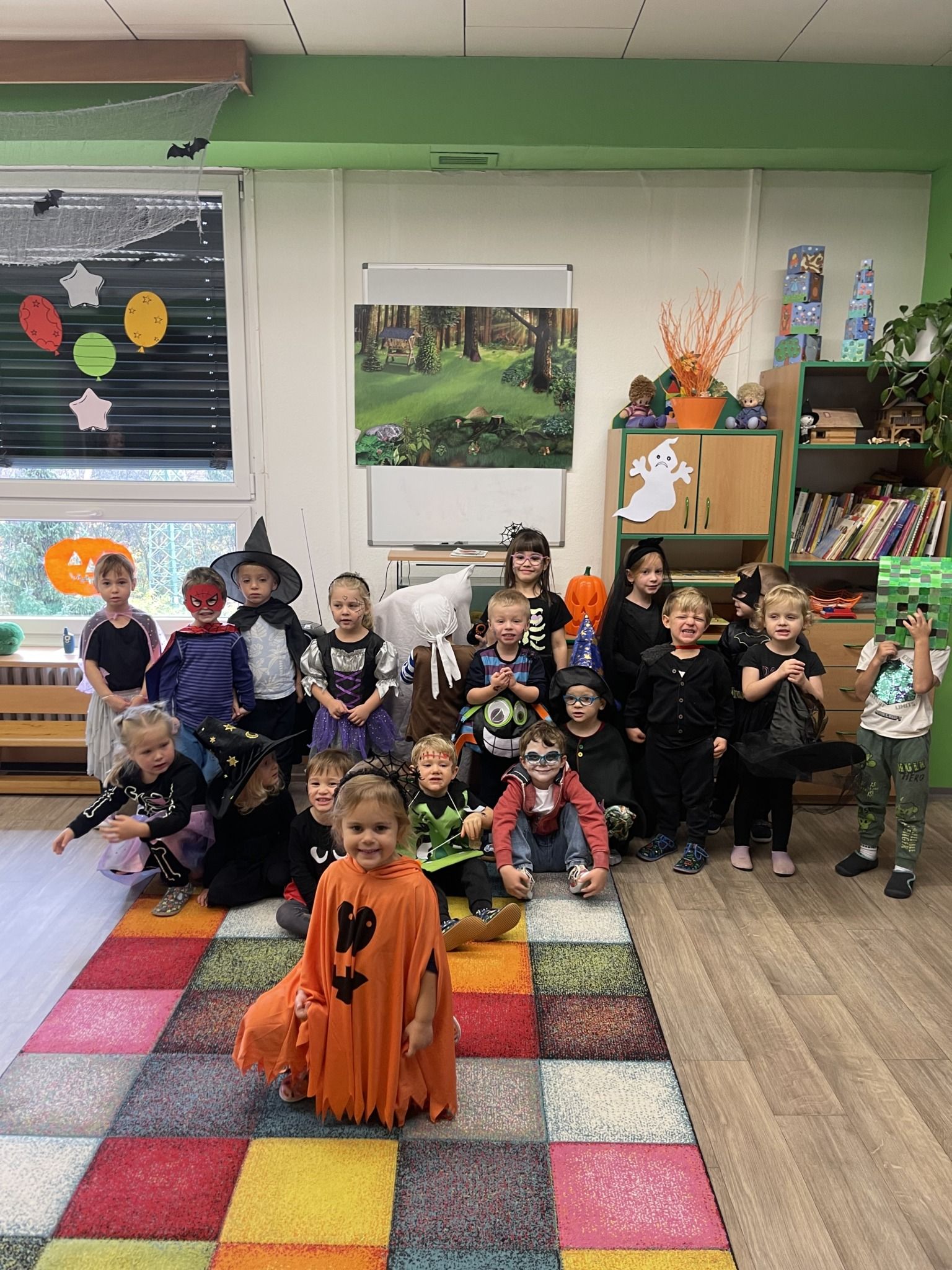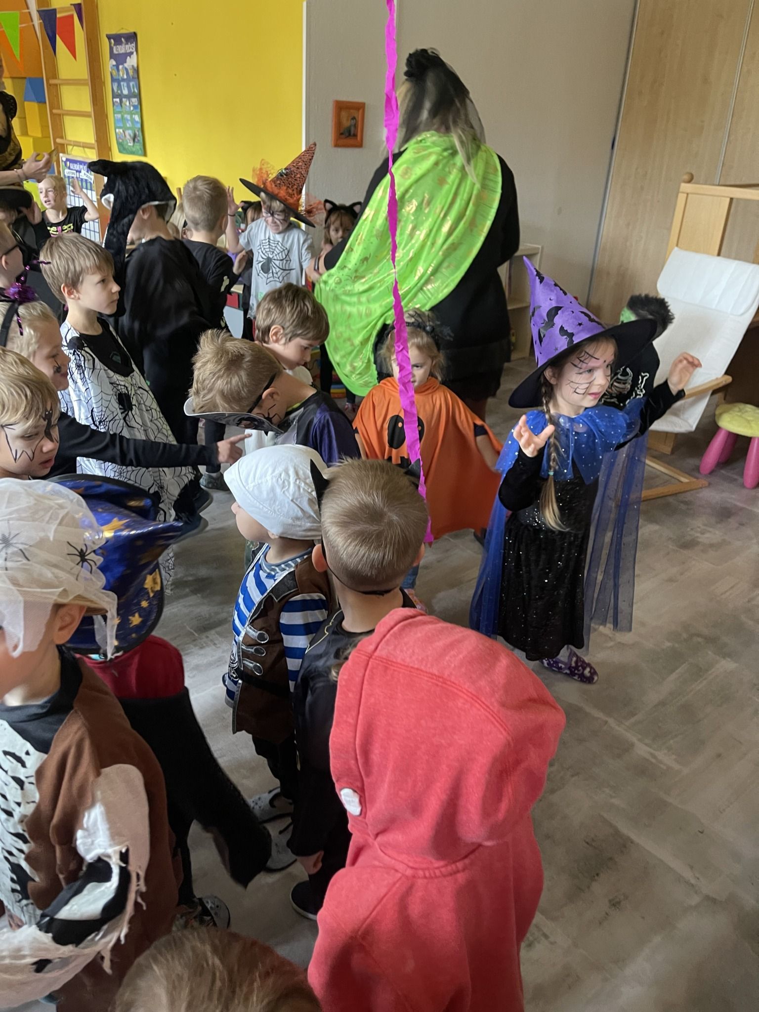 Týden, který byl plný zábavy, tvoření a strašení. Děti si v pondělí připravily sušenky na oslavu a výzdobu na strašidelný rej. V úterý se od rána v zelené tříd scházela strašidla, bubáci a jiné masky, společně jsme si zazpívali, zatančili a plnili disciplíny. Společně s ostatními třídami jsme se sešli ve žluté třídě a společně si zatančili. Odpoledne se šlo na lampiónový průvod a do konce týdne jsme společně tvořili.