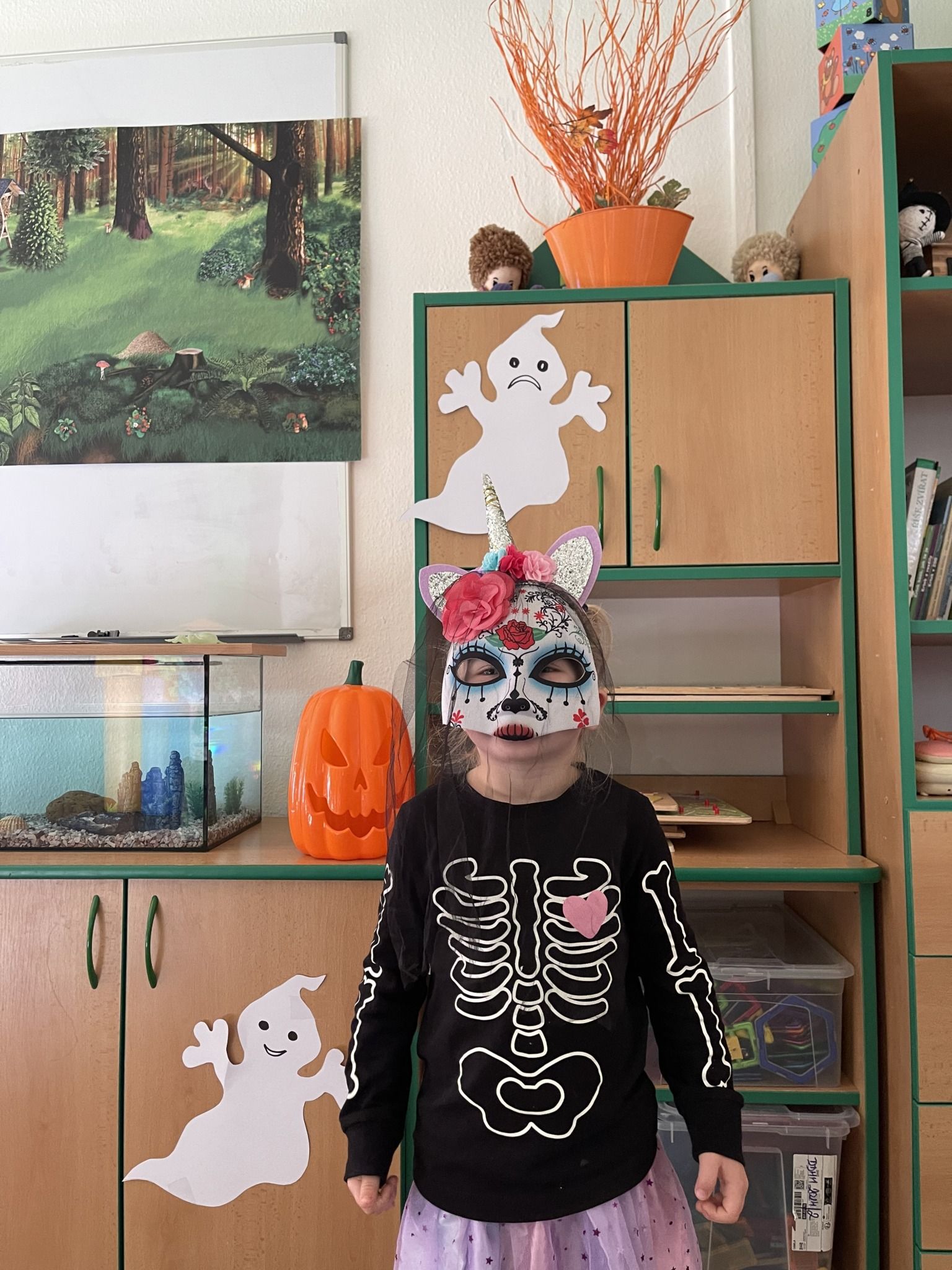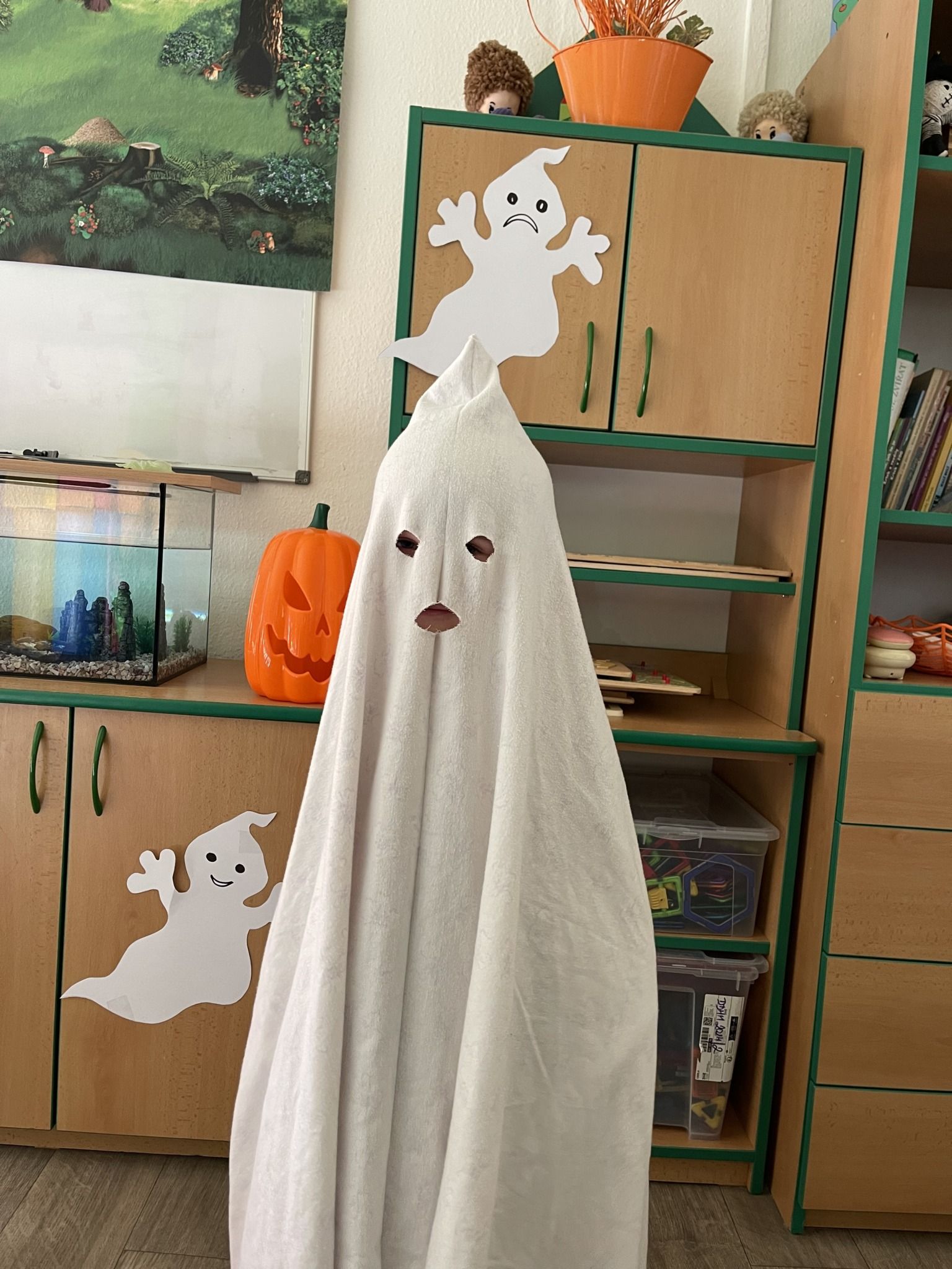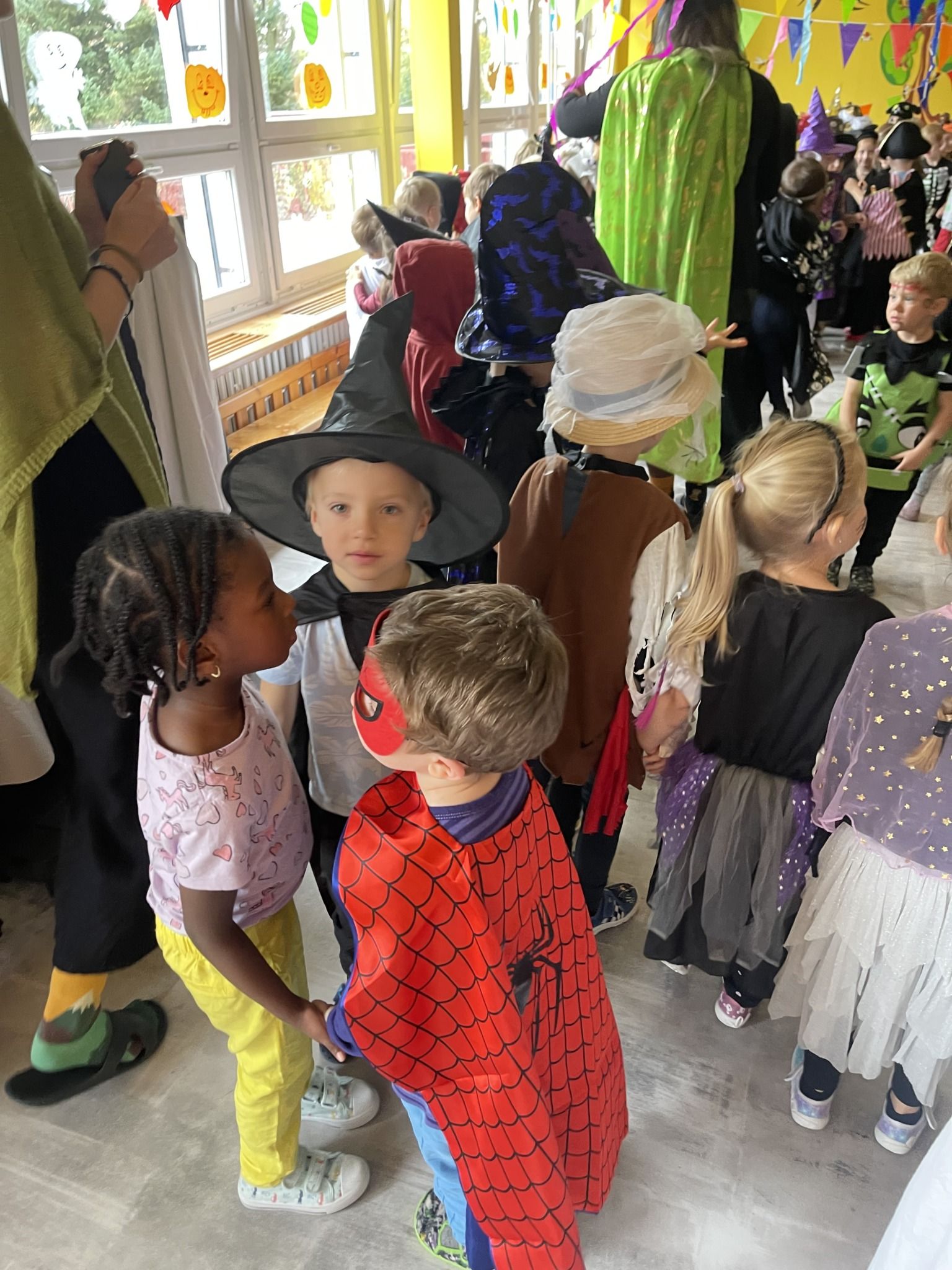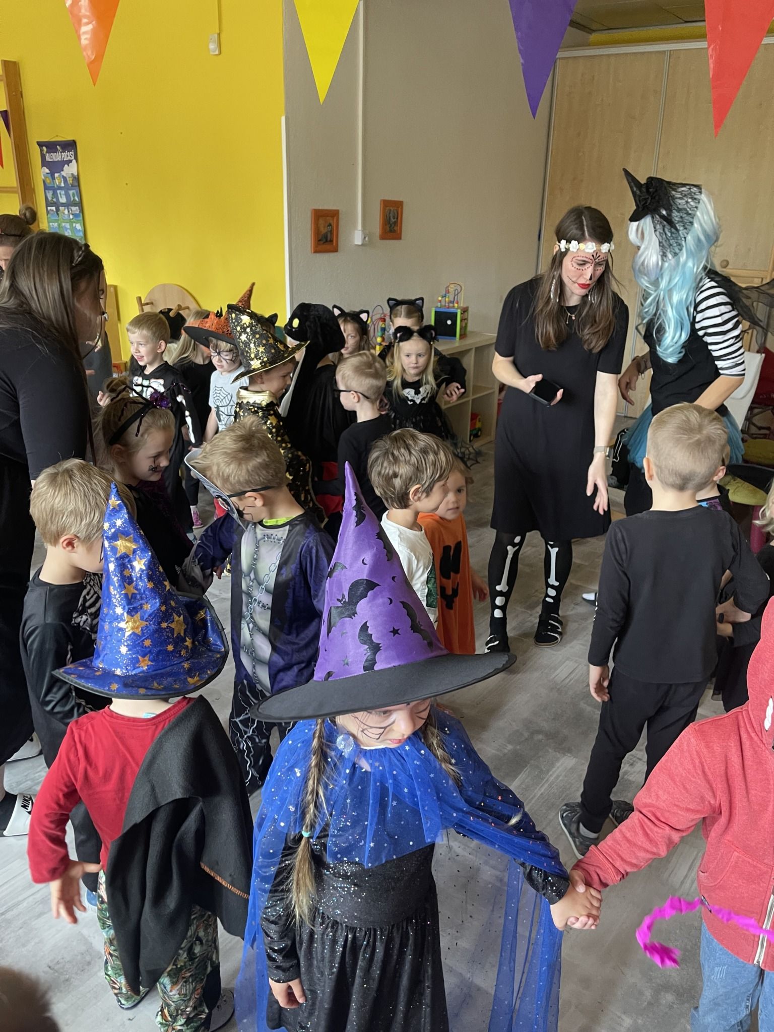 Týden, který byl plný zábavy, tvoření a strašení. Děti si v pondělí připravily sušenky na oslavu a výzdobu na strašidelný rej. V úterý se od rána v zelené tříd scházela strašidla, bubáci a jiné masky, společně jsme si zazpívali, zatančili a plnili disciplíny. Společně s ostatními třídami jsme se sešli ve žluté třídě a společně si zatančili. Odpoledne se šlo na lampiónový průvod a do konce týdne jsme společně tvořili.