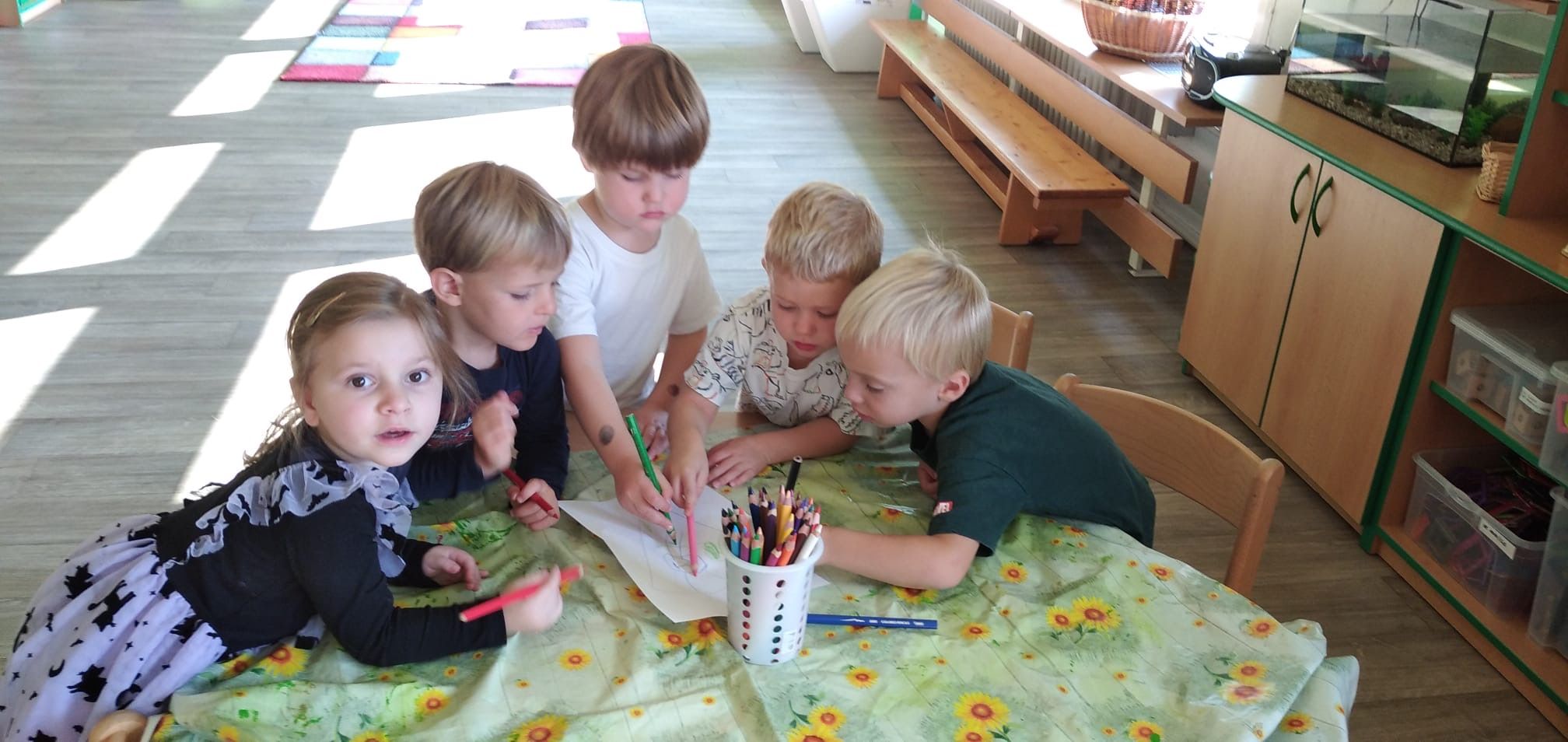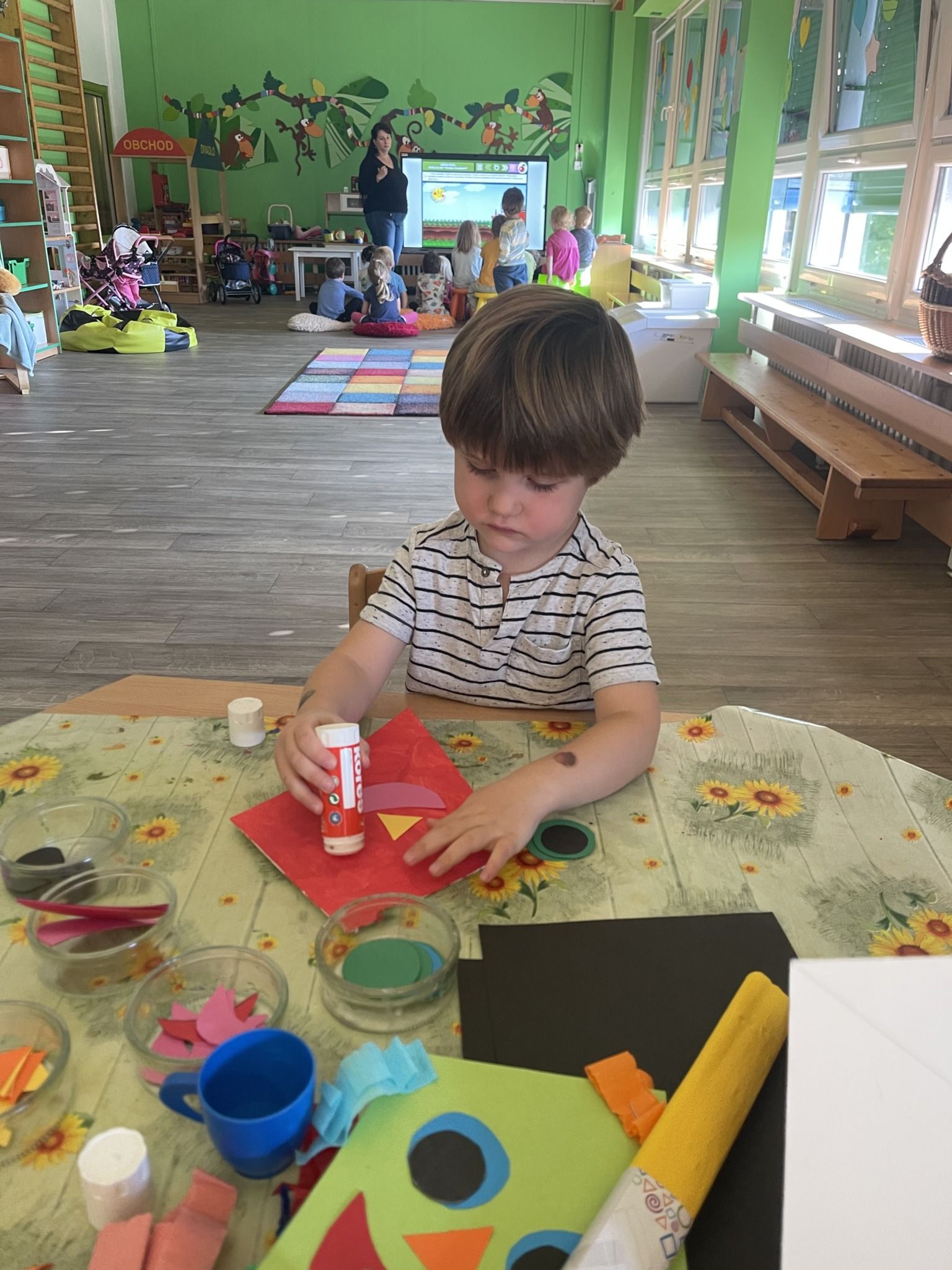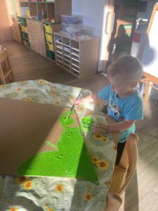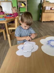 TÝDEN S DRAKYTýden věnovaný drakům, každý si vyrobil svého dráčka a společně jsme zvládli draka naší třídy, který byl součástí vyzdobené zahrady na Drakiádě. Tento týden jsme zvládli první vycházku do okolí MŠ.