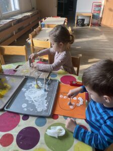 Týden, který jsme věnovali oblíbenému tématu dětí. Děti se musely dostat přes hory, lesy, jezera a skálou pro poklad. Také jsme si vyzkoušely kouzlo “Hrnečku vař”. Také nám chodí číst rodiče a děti si to náramně užívají.