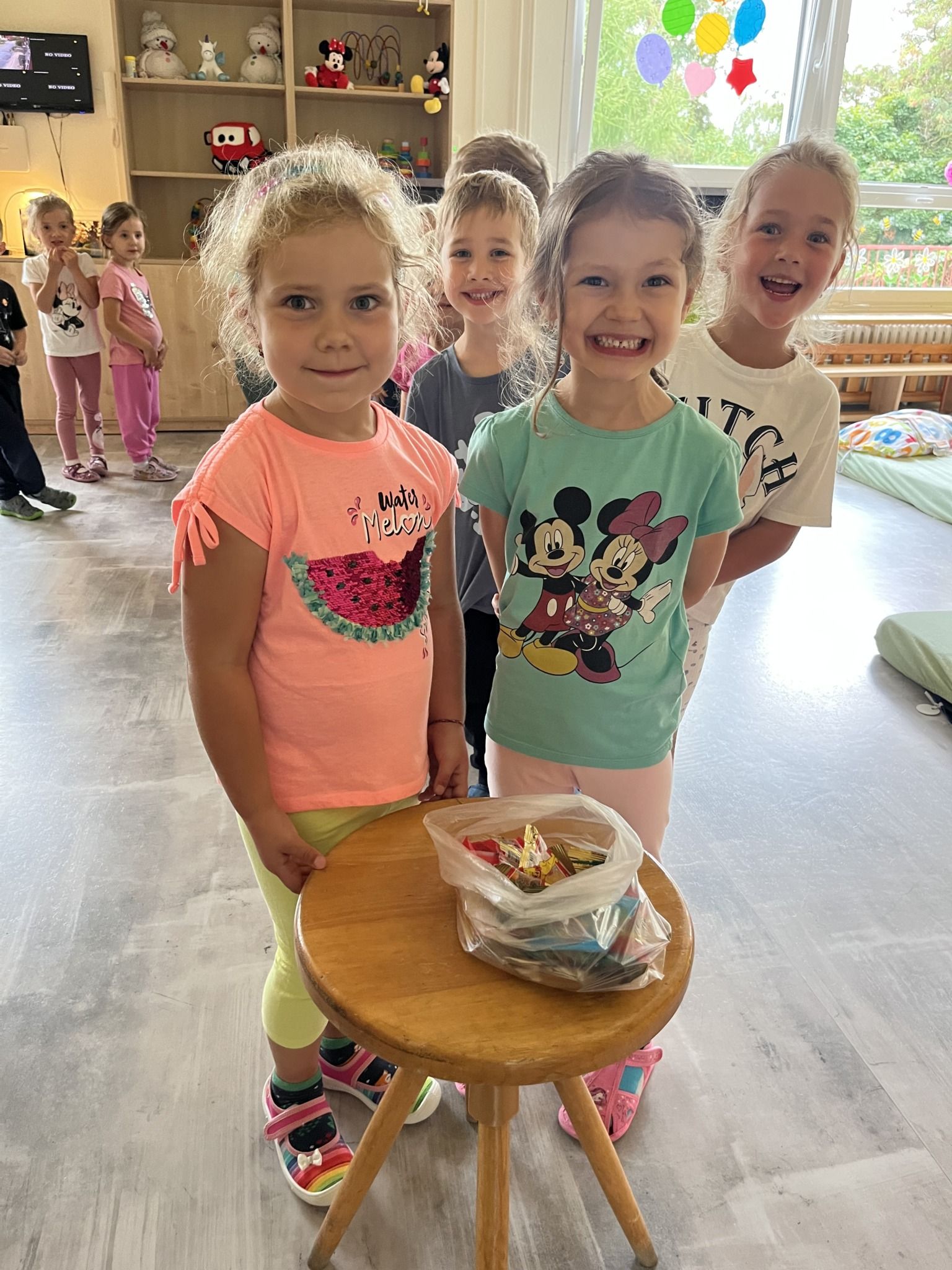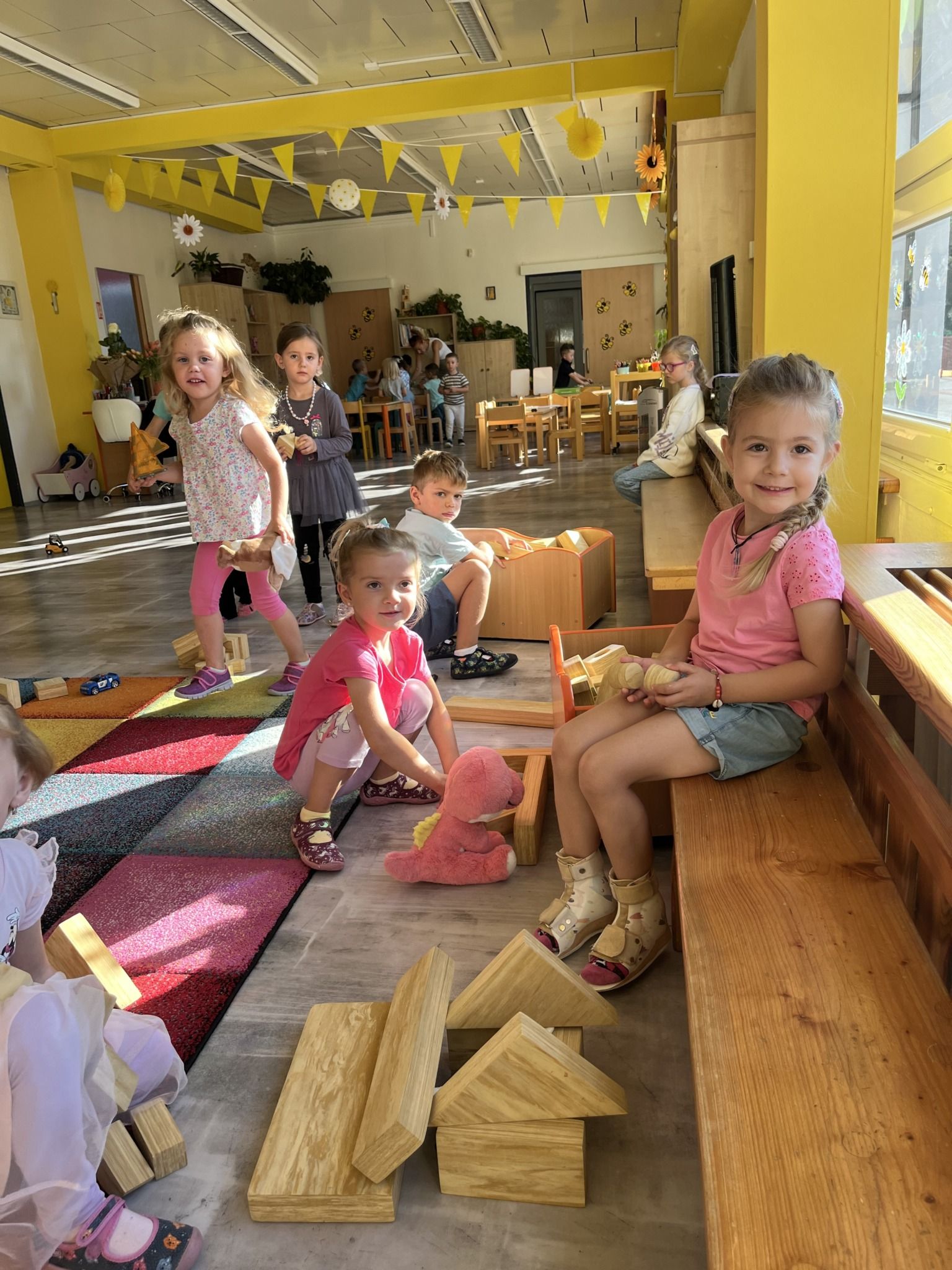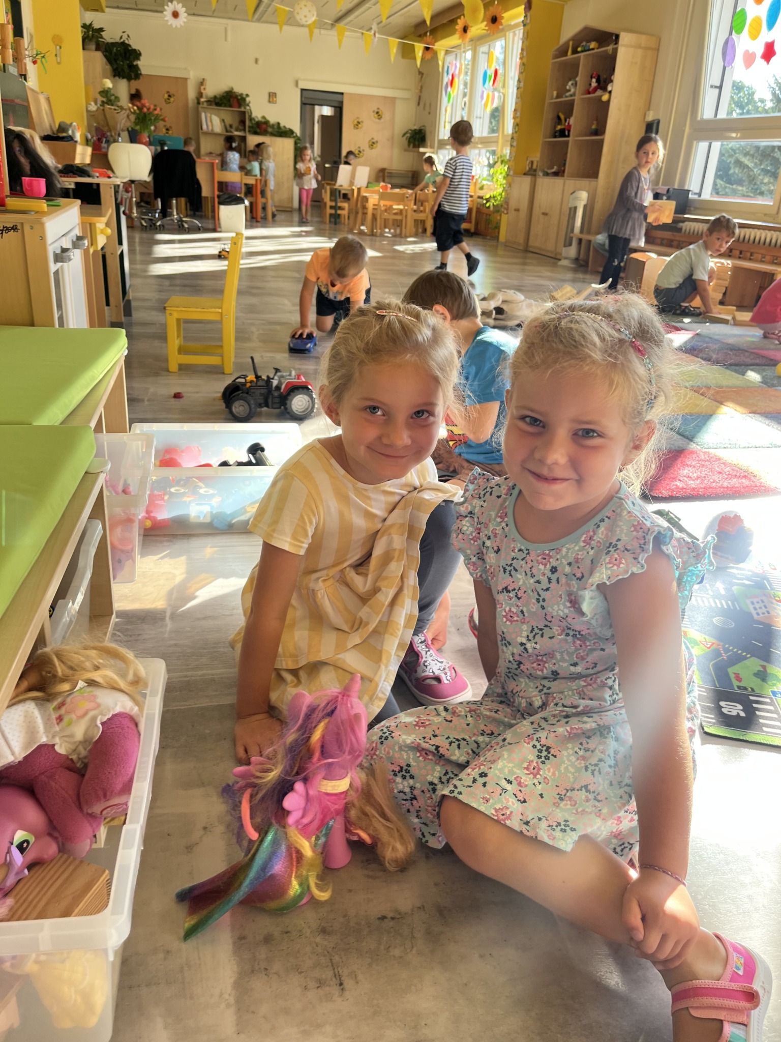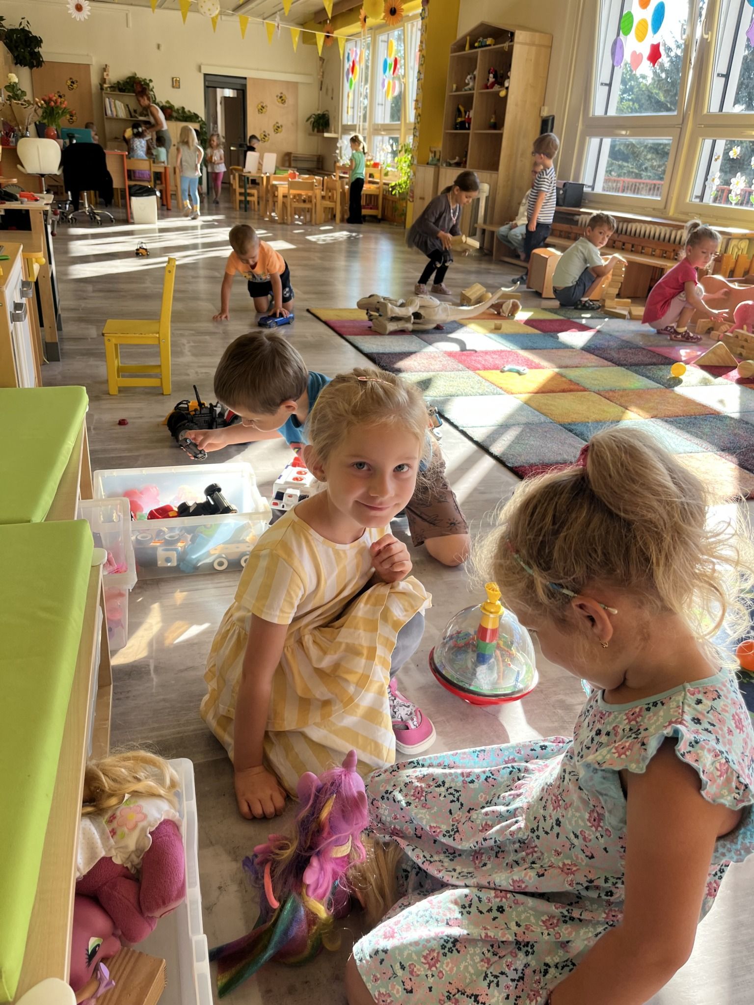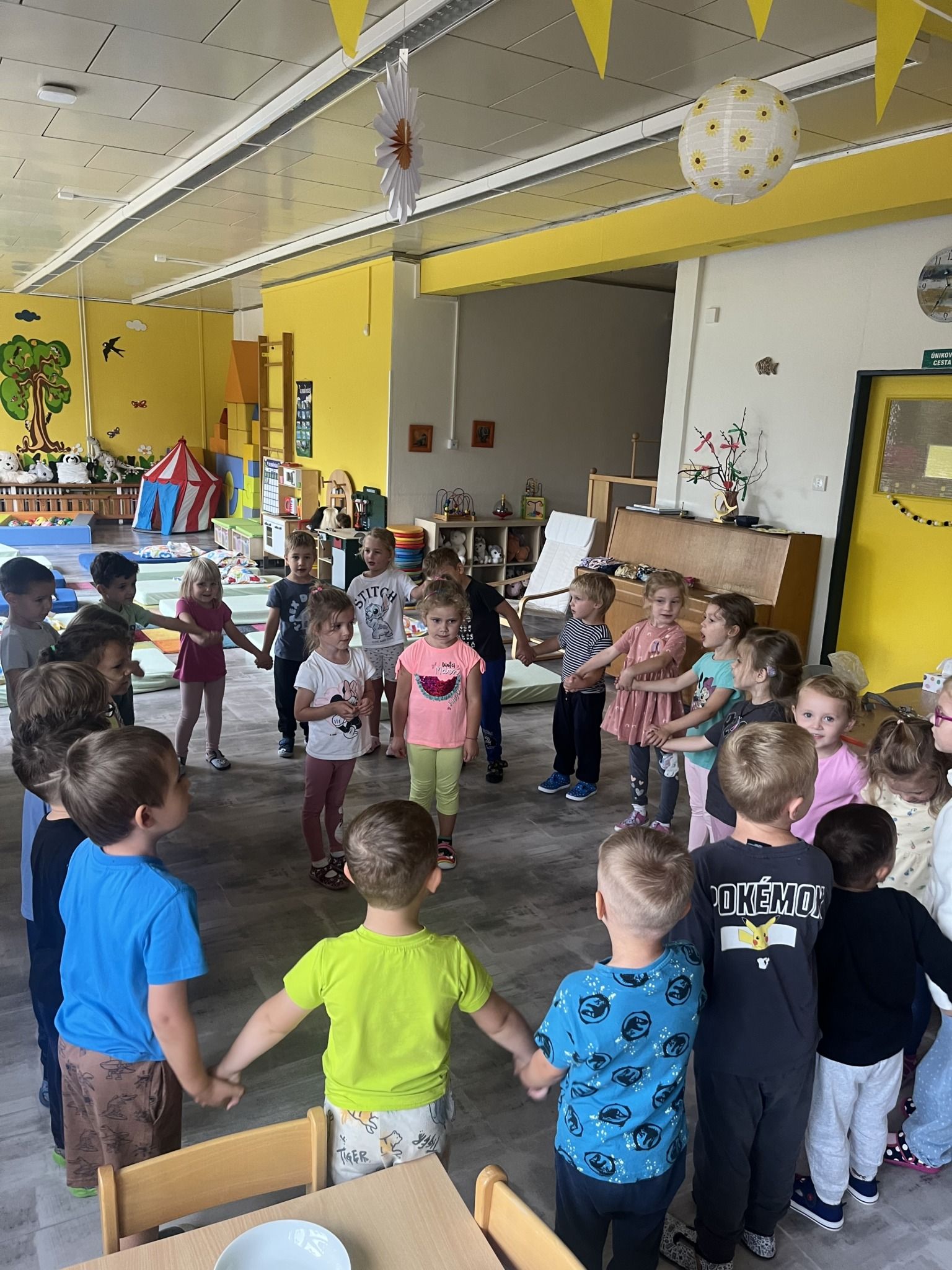 Zpátky ve žluté tříděSetkání ve ŽLUTÉ třídě, první dny, bez slziček, plné úsměvu a radosti. Hry ve třídě… na zahradě…. Co vám uvaříme? Už je po dešti… Adélka slaví svátek Adélka slaví svátek Ranní kruh první oběd