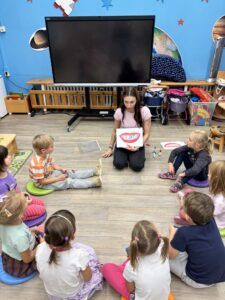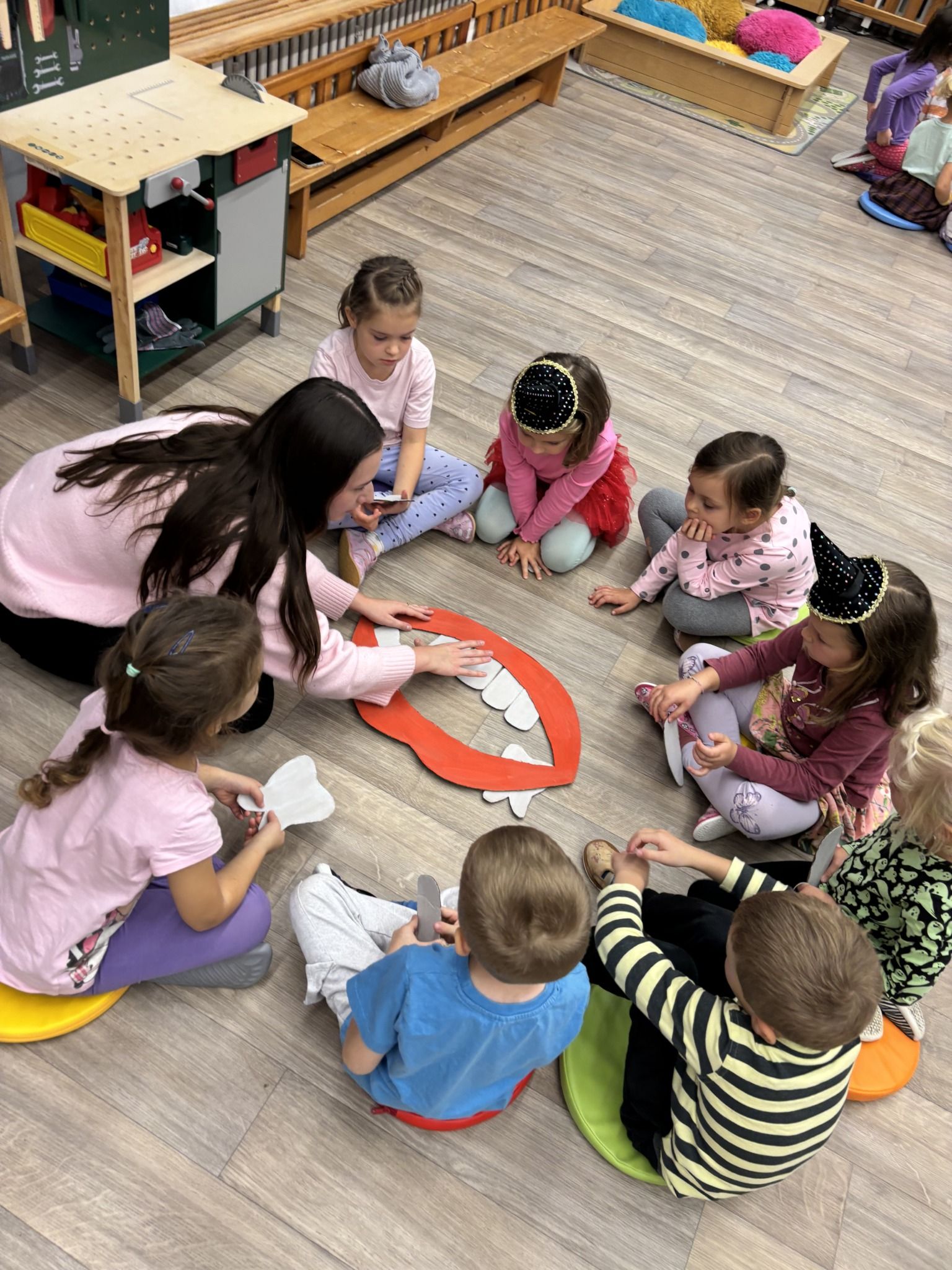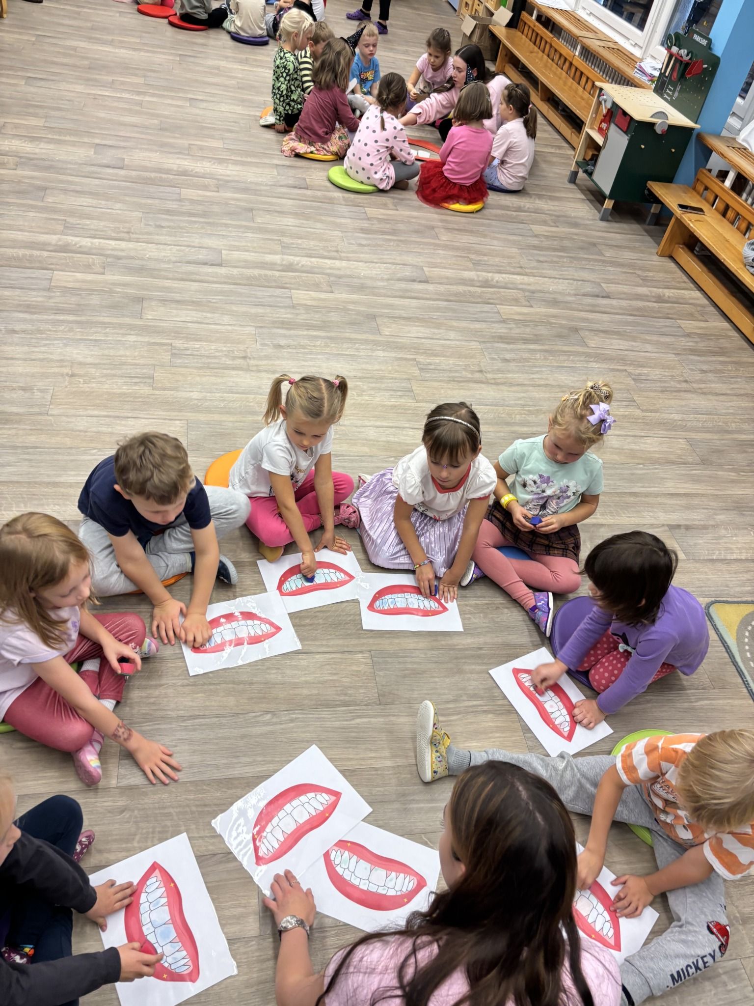 „Naši mateřskou školu navštívily studentky 2. ročníku Soukromé vyšší odborné školy zdravotnické pro dentální hygienistky, Nicol Šikýřová, Eliška Bartesová a Dorota Vavroušková,“ informovala ředitelka školy Markéta Pechová. „S dětmi hravou formou prostřednictvím písniček a zajímavých her učily procesu čištění zubů,“ doplnila a připojila námět studentek právě do rodinného prostředí: Motivace dětí k pravidelnému čištění zubů může být někdy jako souboj s drakem – plná překážek a výzev. Nicméně, existuje několik osvědčených způsobů, jak to udělat zábavně a zajímavě.