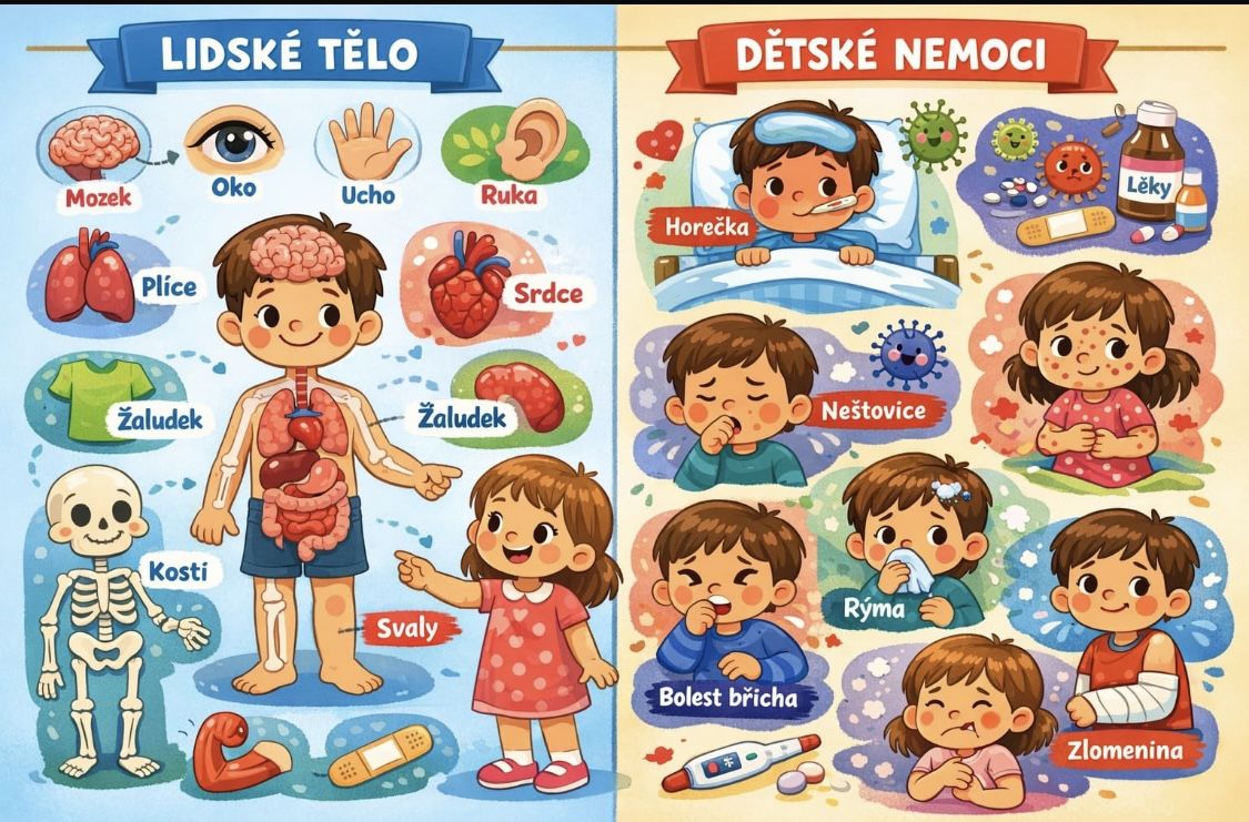 Datum: 26. 01. 2026 – 06. 02. 2026 Téma: LIDSKÉ TĚLO A NEMOCI LIDSKÉ TĚLO A NEMOCI Termín: 26.1. – 6.2.2026 umět pojmenovat časti těla a kde se nachází…